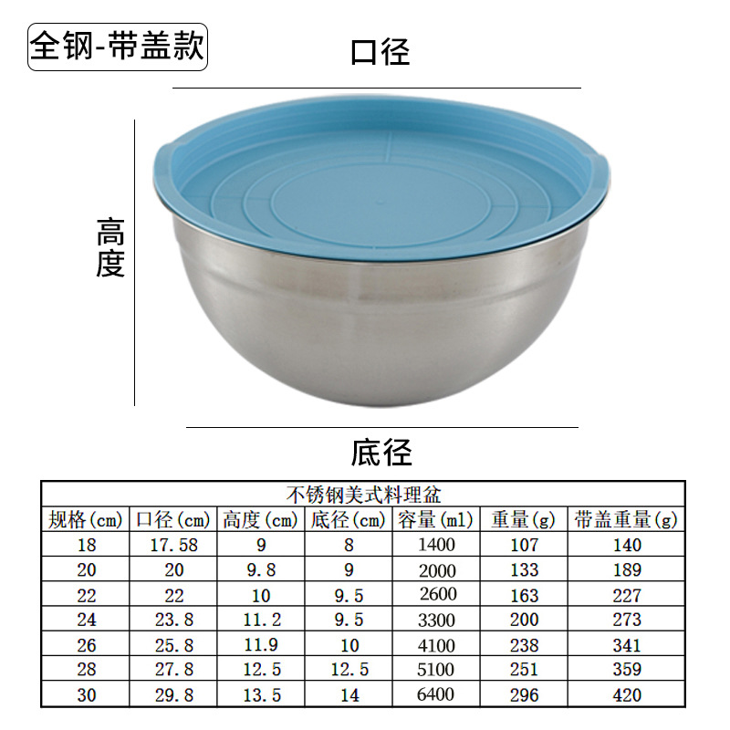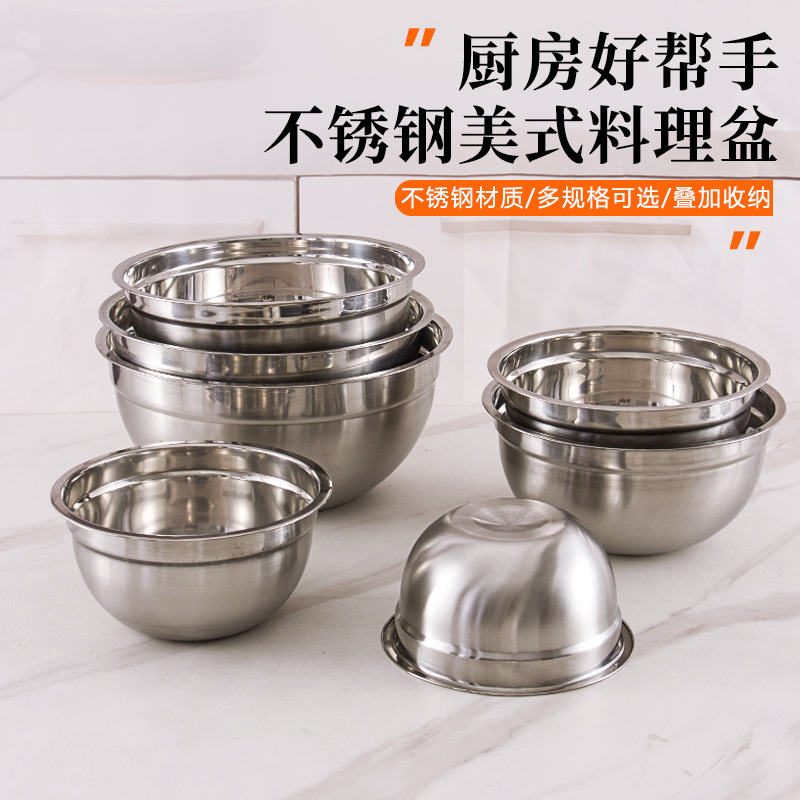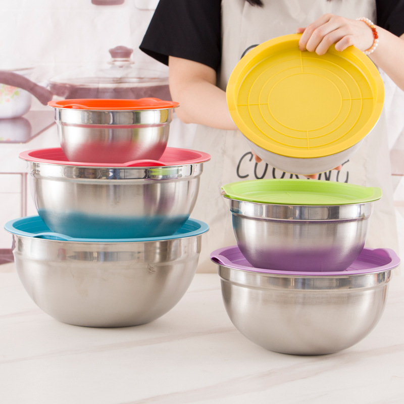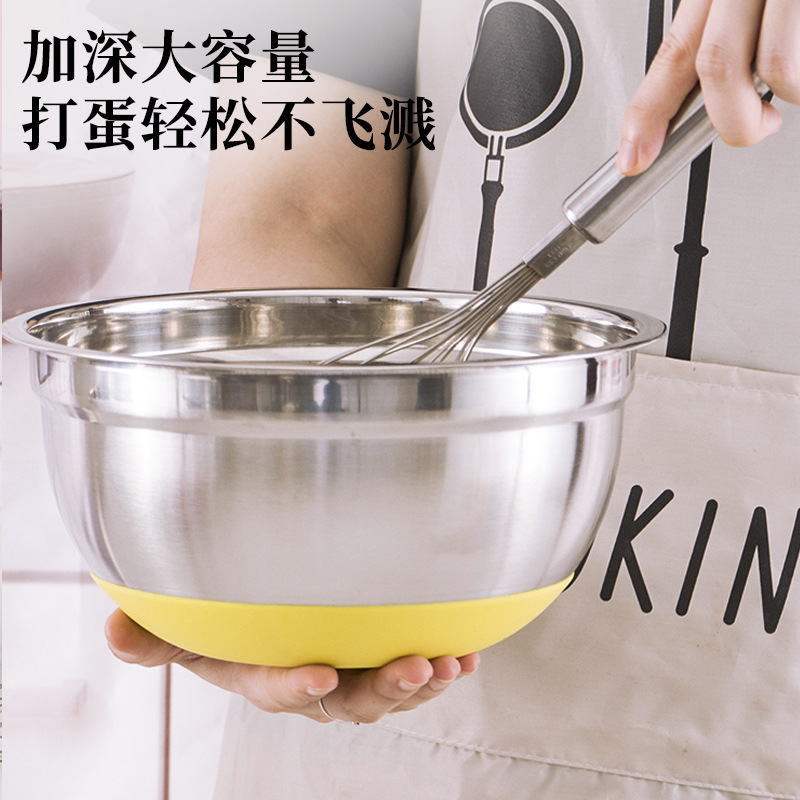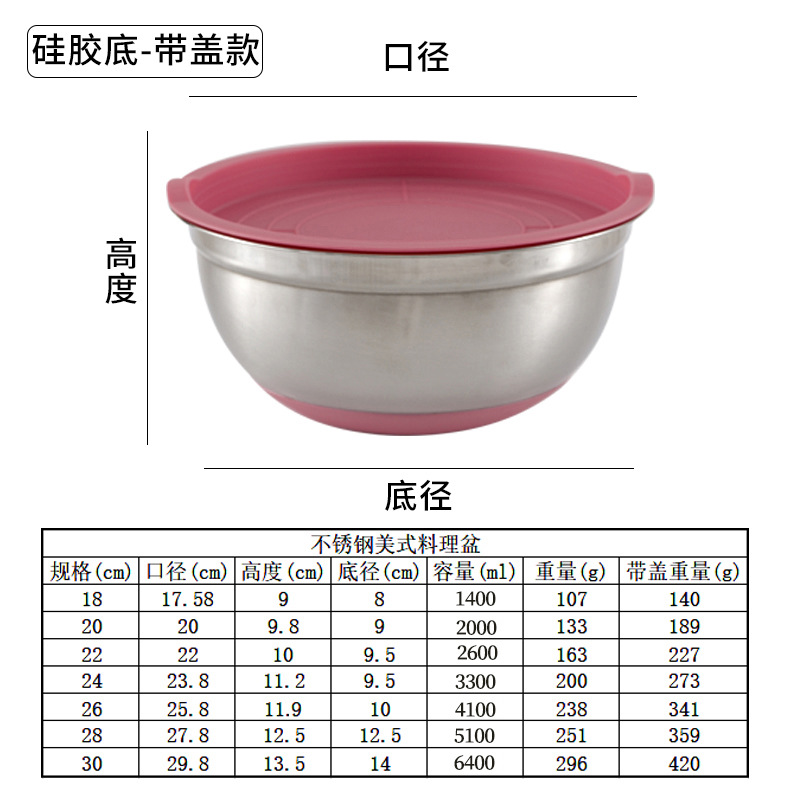 Большая бытовая миска с крышкой, утолщенная миска для взбивания яиц, силиконовое дно, американская миска для приправ, миска для салата из нержавеющей стали.
