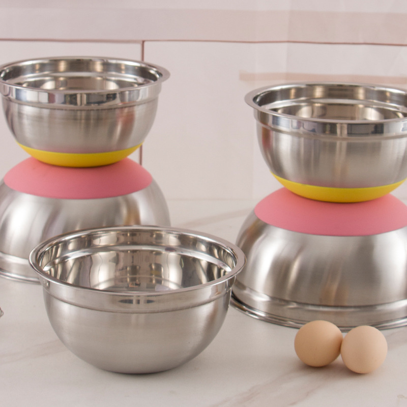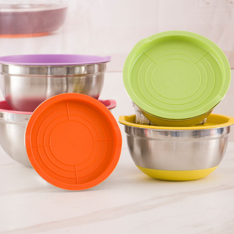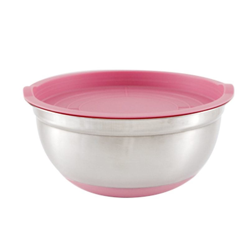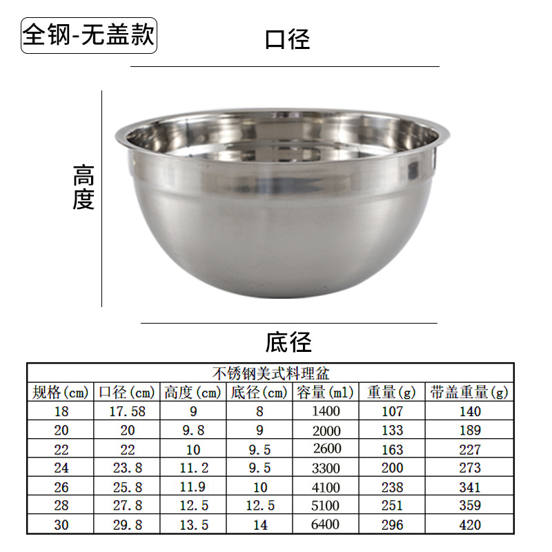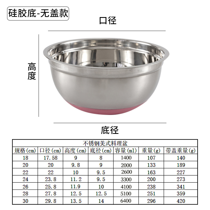 Большая бытовая миска с крышкой, утолщенная миска для взбивания яиц, силиконовое дно, американская миска для приправ, миска для салата из нержавеющей стали.