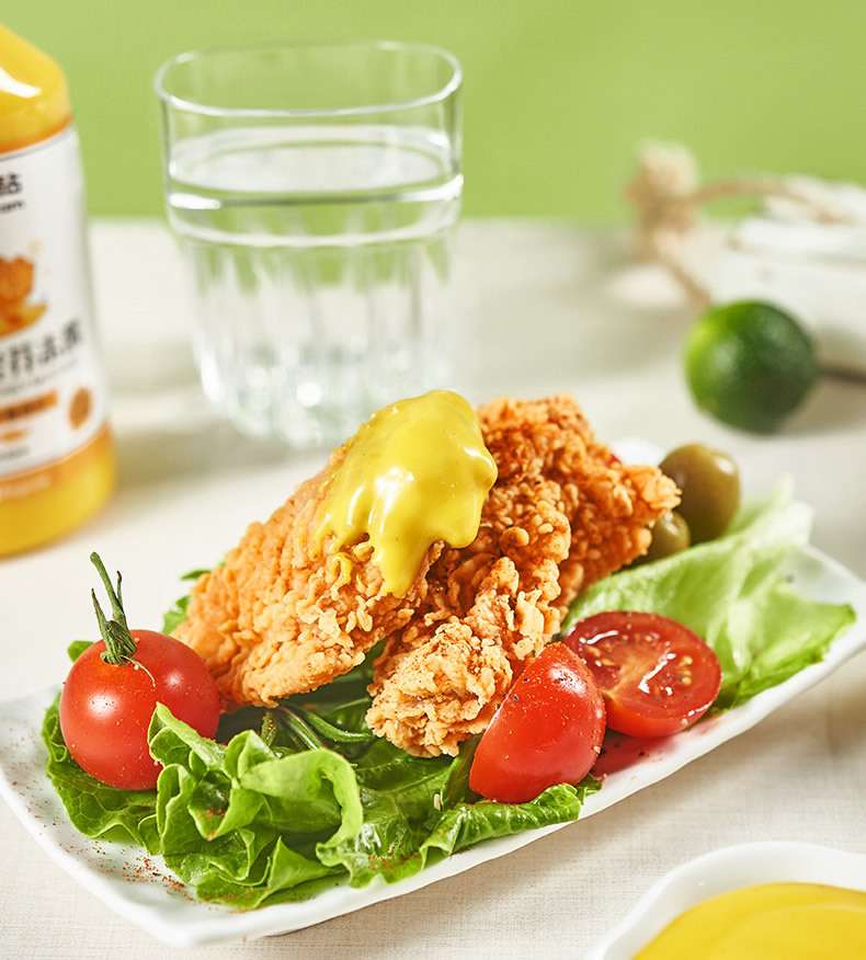 100-бриллиантовый медовый горчичный соус 280 г корейская жареная курица с картофелем фри, салат с соусом из гамбургера
