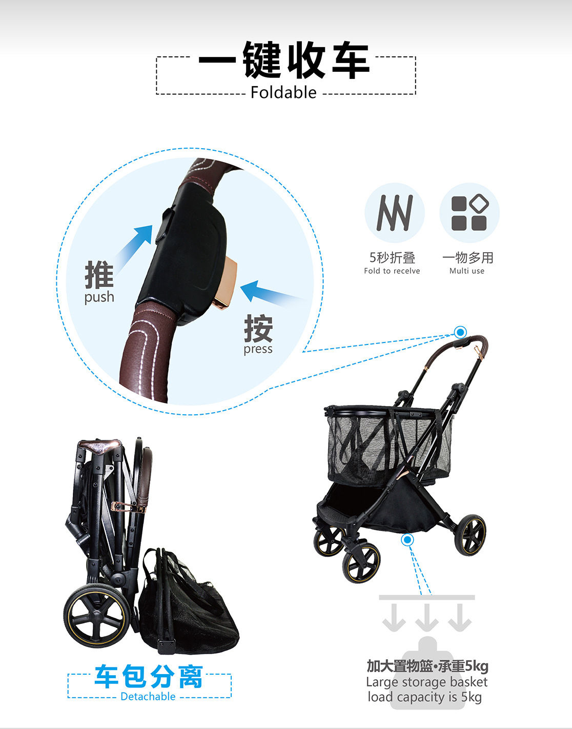 Складная переносная тележка для животных (собак, кошек, плюшевых игрушек), для прогулок, покупок, кемпинга, пикника, оптом