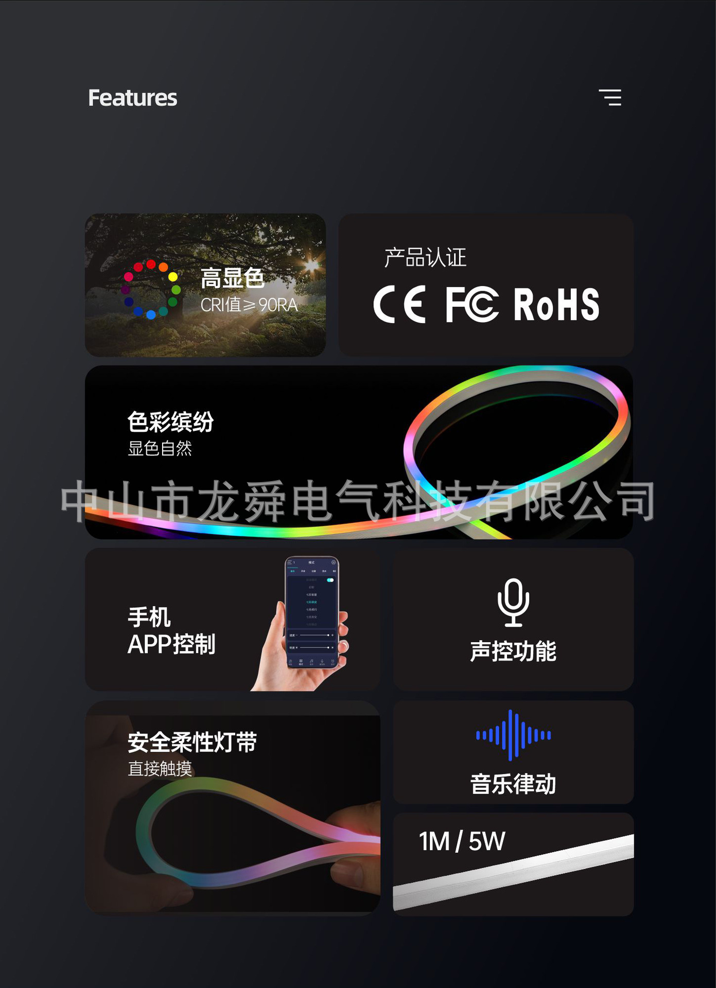 Умная разноцветная неоновая светодиодная лента для трансграничной торговли с низковольтным USB-портом, управлением музыкой через мобильное приложение, атмосферная подсветка с управлением звуком, ультраяркий комплект.
