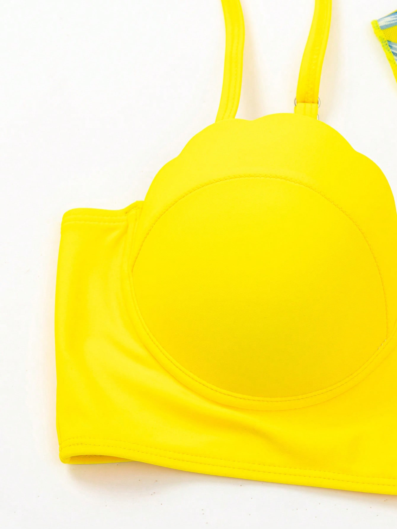 Фабричное производство индивидуальных купальников-бикини с принтом кленового листа, высокой талией, сетчатой вставкой, утягивающего эффекта, для внешней торговли.