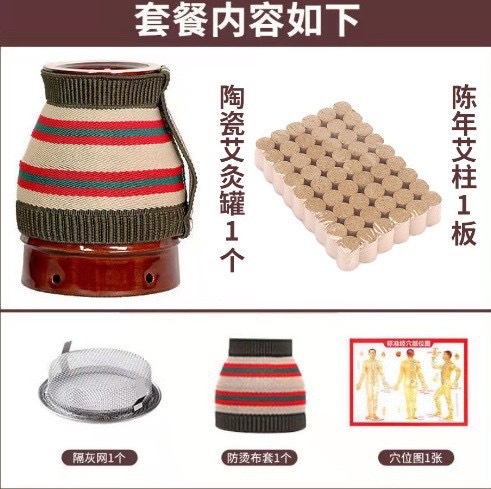 Банка с песком фиолетового цвета + тканевый чехол + серая сетка; Керамическая банка + тканевый чехол + серая сетка.; Тканевый чехол для банки для прижигания; Состаренный столб моксы; пинцет; Банка с фиолетовым песком + тканевый чехол + серая сетка + 54 палочки моксы + рисунок гида; Керамическая банка + тканевый чехол + серая сетка + 54 палочки моксы + рисунок гида
