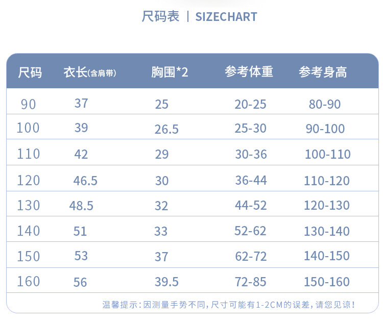 90cm; 100cm; 110cm; 120cm; 130cm; 140cm; 150cm; 160cm