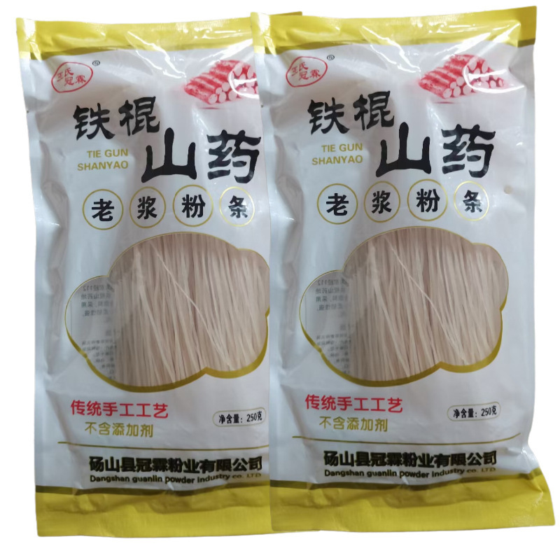 Вермишель Тайгун Ям 250г (минимальный заказ 120 пакетиков); 250 г вермишели из корня кудзу (40 пакетов/коробка, минимальный заказ — 2 коробки); 450 г вермишеля из железного бруска (минимальная партия 100 пакетиков); 450 г вермишели из сладкого картофеля (минимальный заказ 100 пакетиков); 450 грамм фиолетовой вермишели Хуайям (минимальная партия 100 пакетиков); 450 г вермишели с высоким содержанием кальция (минимальный заказ 100 пакетиков); 400 г картофельной вермишели (минимальный заказ 100 пакетиков); 250 г железной вермишели из старого крахмала (40 пакетов/шт., минимальная партия 2 шт.)