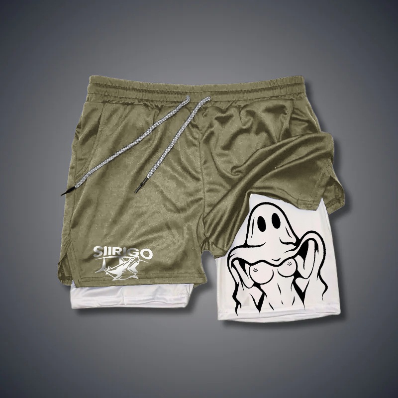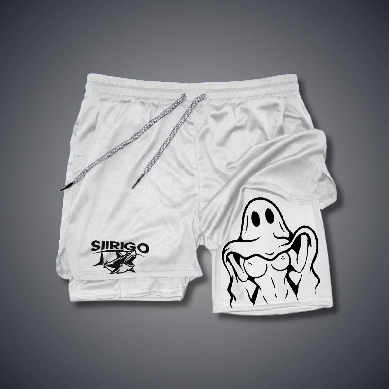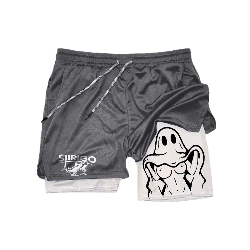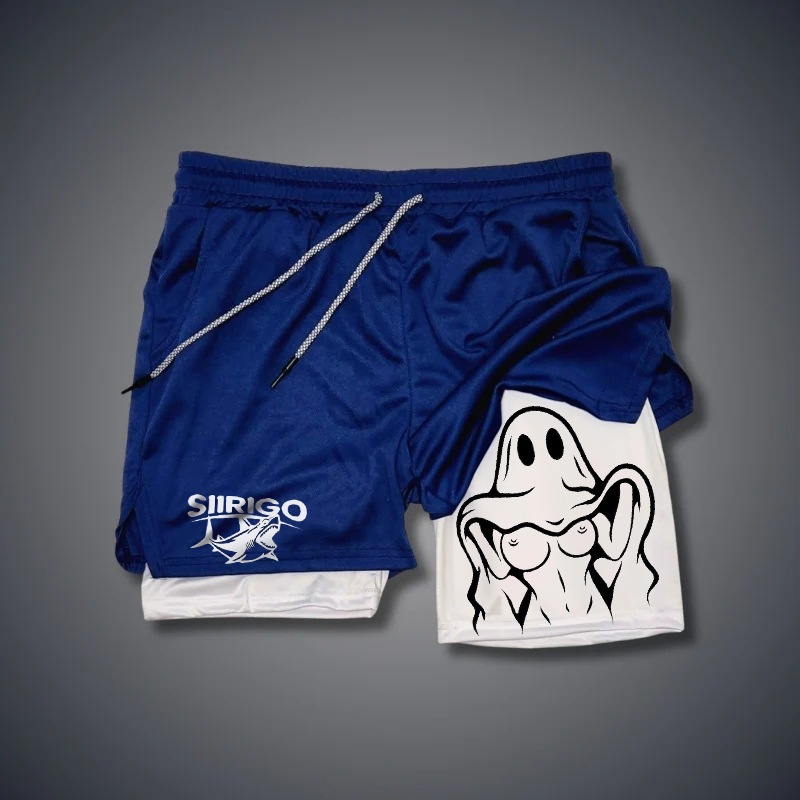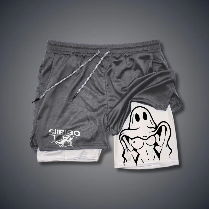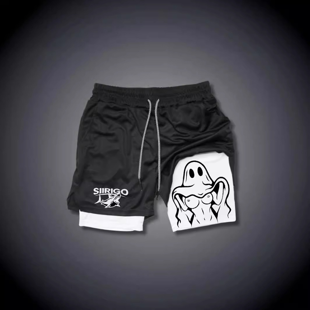 Летние спортивные шорты мужские быстрохнущие и дышащие двухслойные анти-легкая подделка две части фитнес-беговые шорты