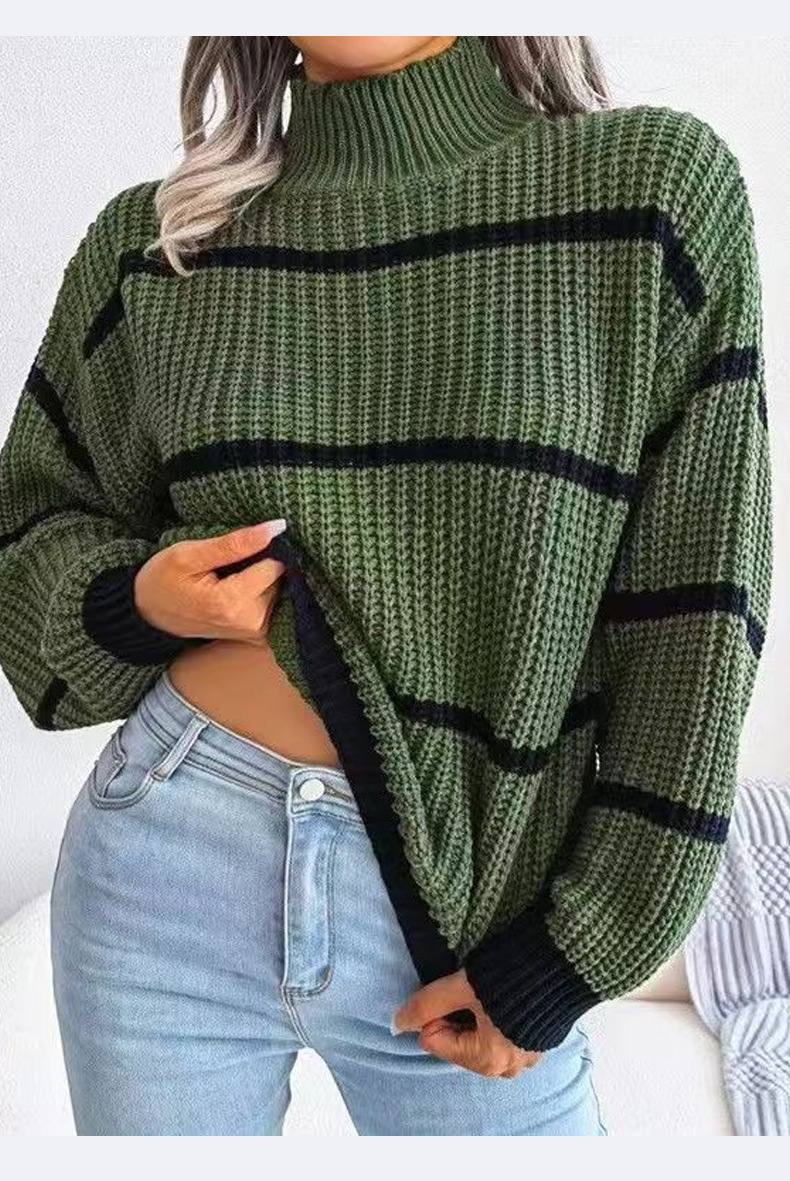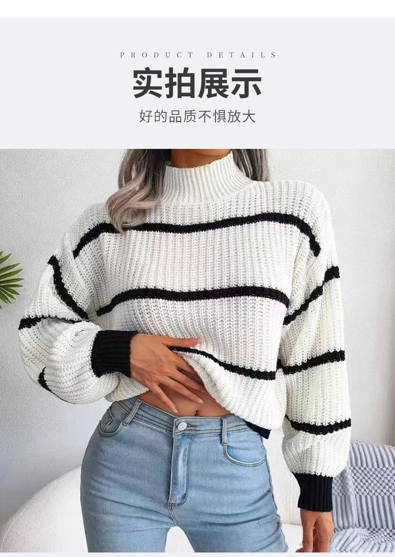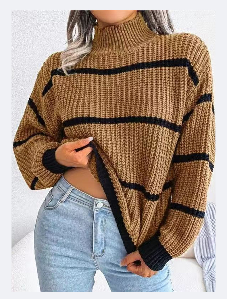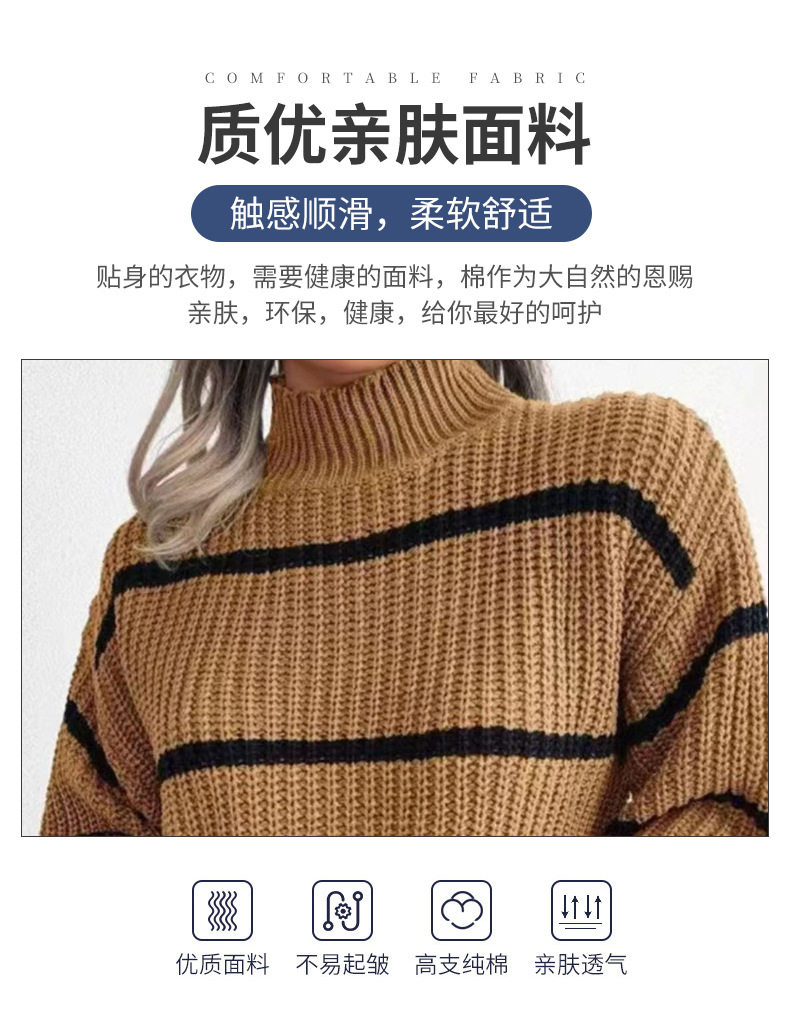 AliExpress европейский и американский стиль Amazon трансграничный свитер красивый осенний и зимний высокий воротник свободный полосатый свитер с длинными рукавами