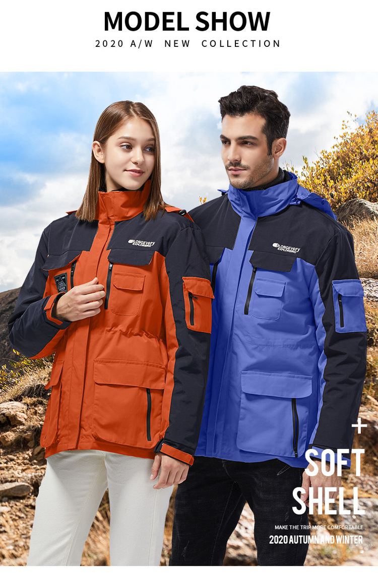 Штурмовая мужская тройка в одном ветровка съемная осенняя и зимняя женская куртка пара на открытом воздухе альпинистская печать LOGO