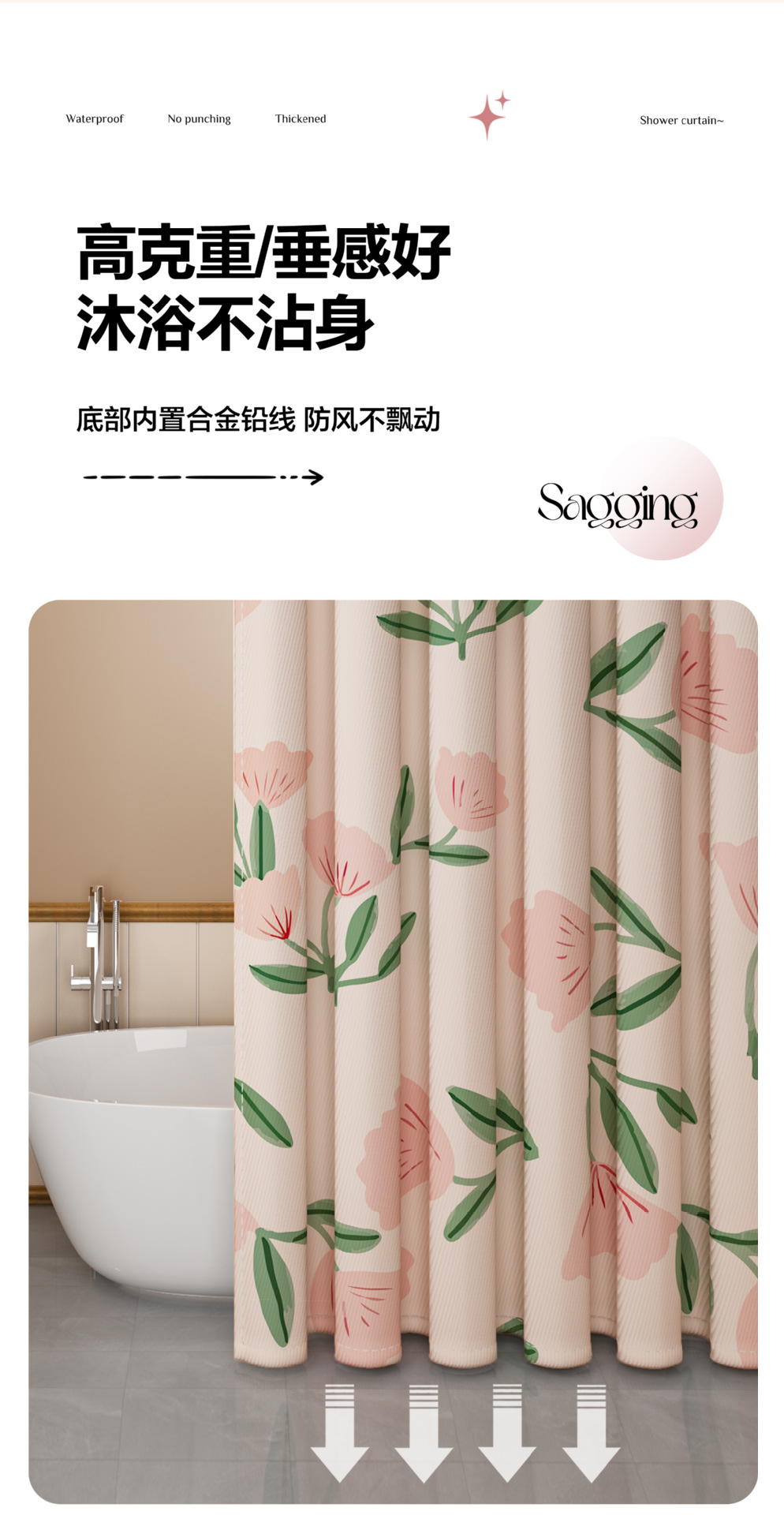 Занавеска для ванной комнаты Водонепроницаемый анти-плесени набор без пробивания дыры Душевая занавеска для ванной ванной