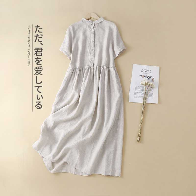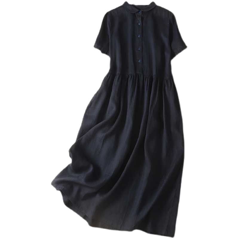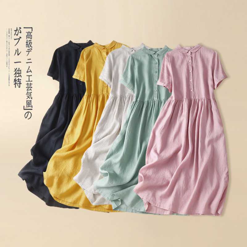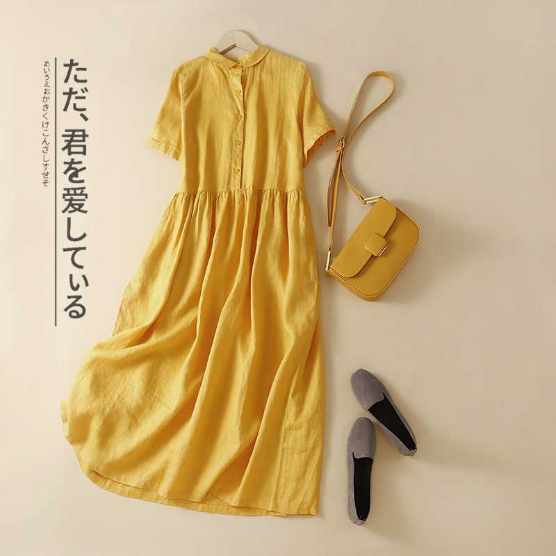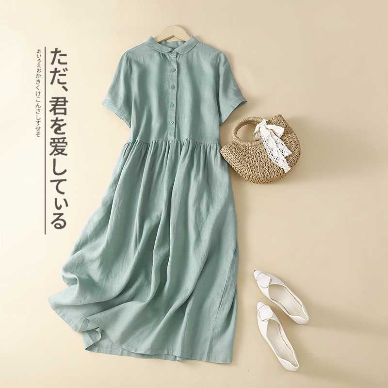Настоящий снимок 2024, новое летнее стильное литературное платье больших размеров в стиле ретро, однотонное свободное длинное платье