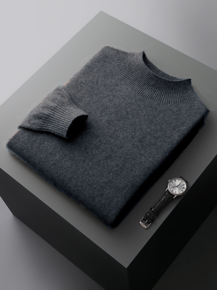 Одежда с первой линией с половинным вырезом шерстяной свитер мужской 2024 новый сплошной трикотажный свитер свободный теплый пуловер нижний свитер