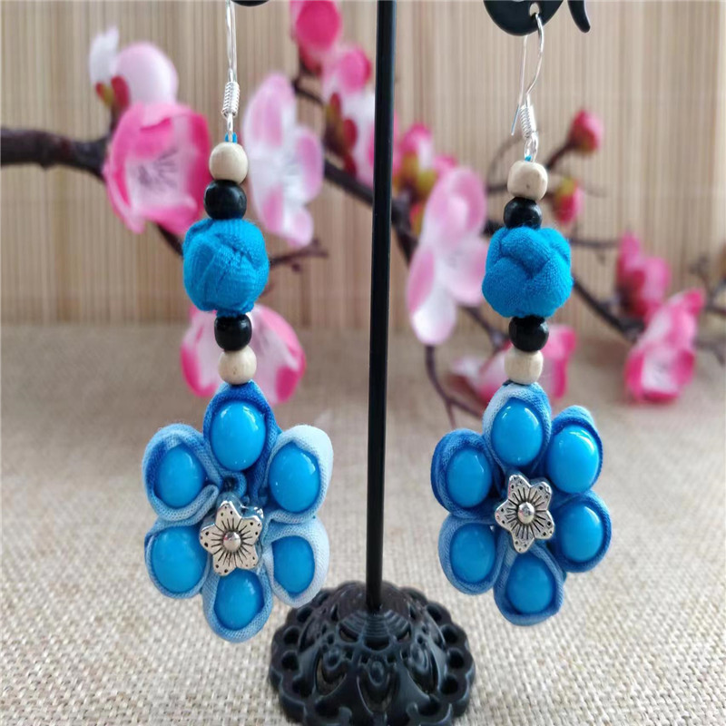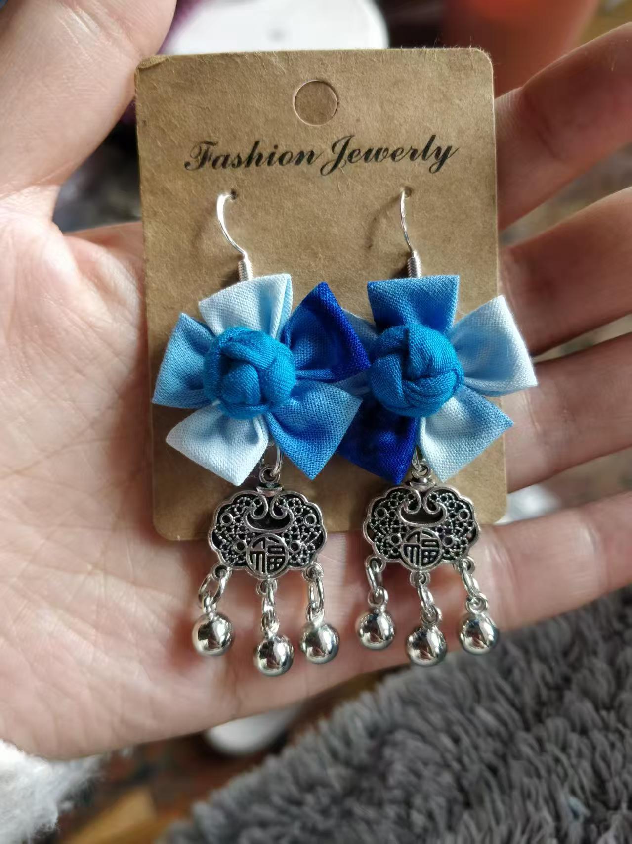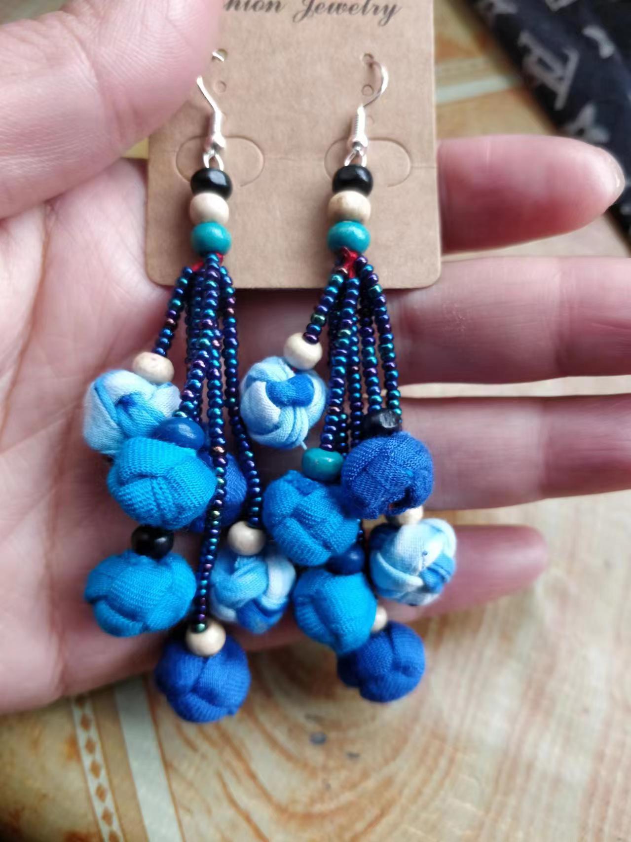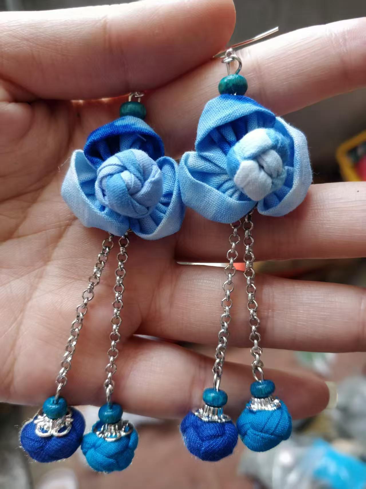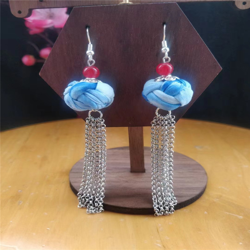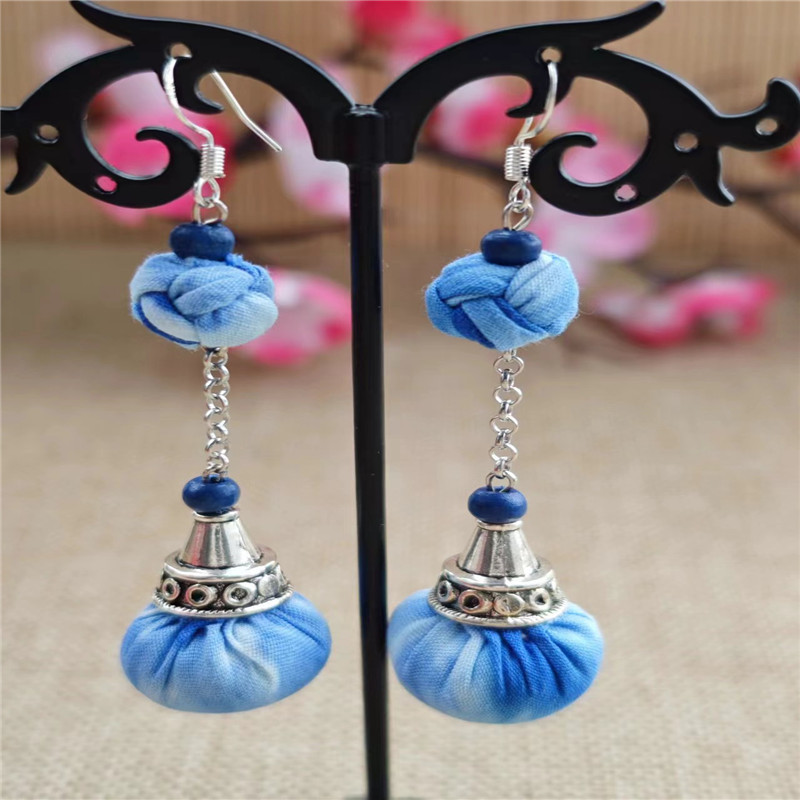 Юньнаньский национальный ветер серьги Дали галстукокрас синий батик ручной работы