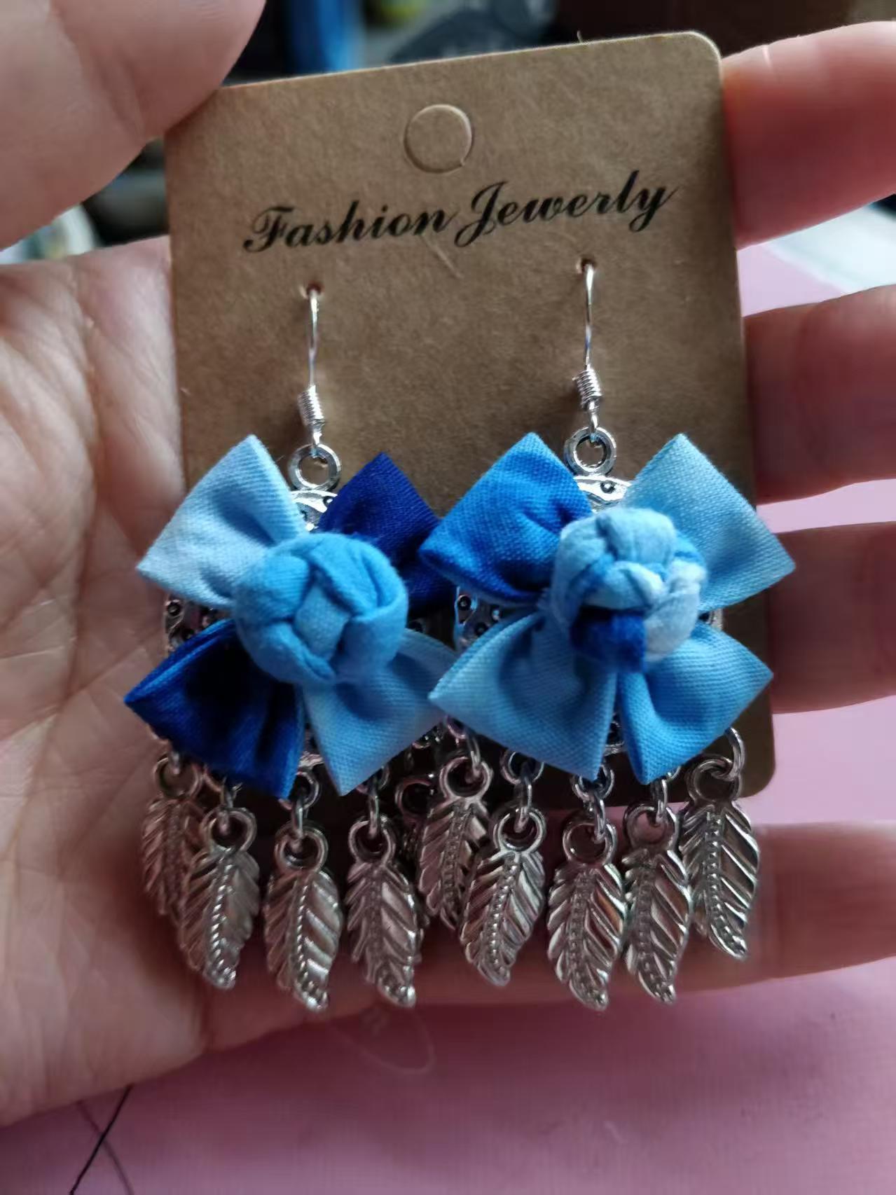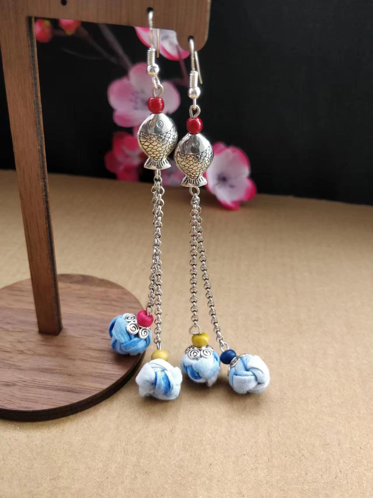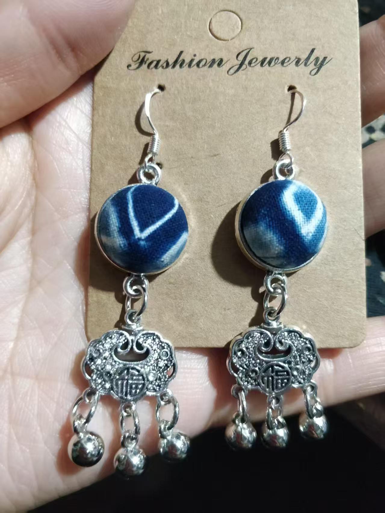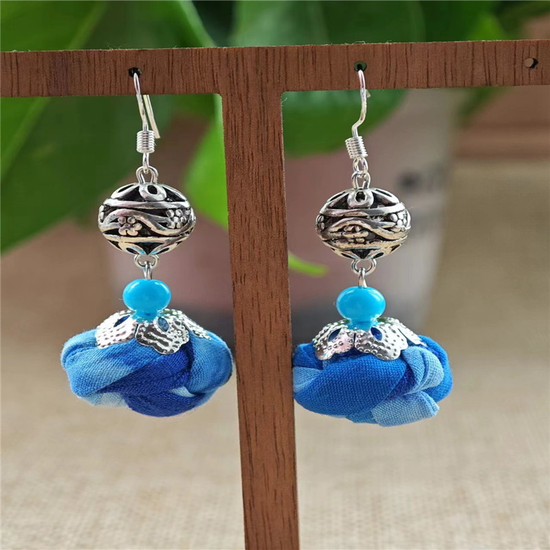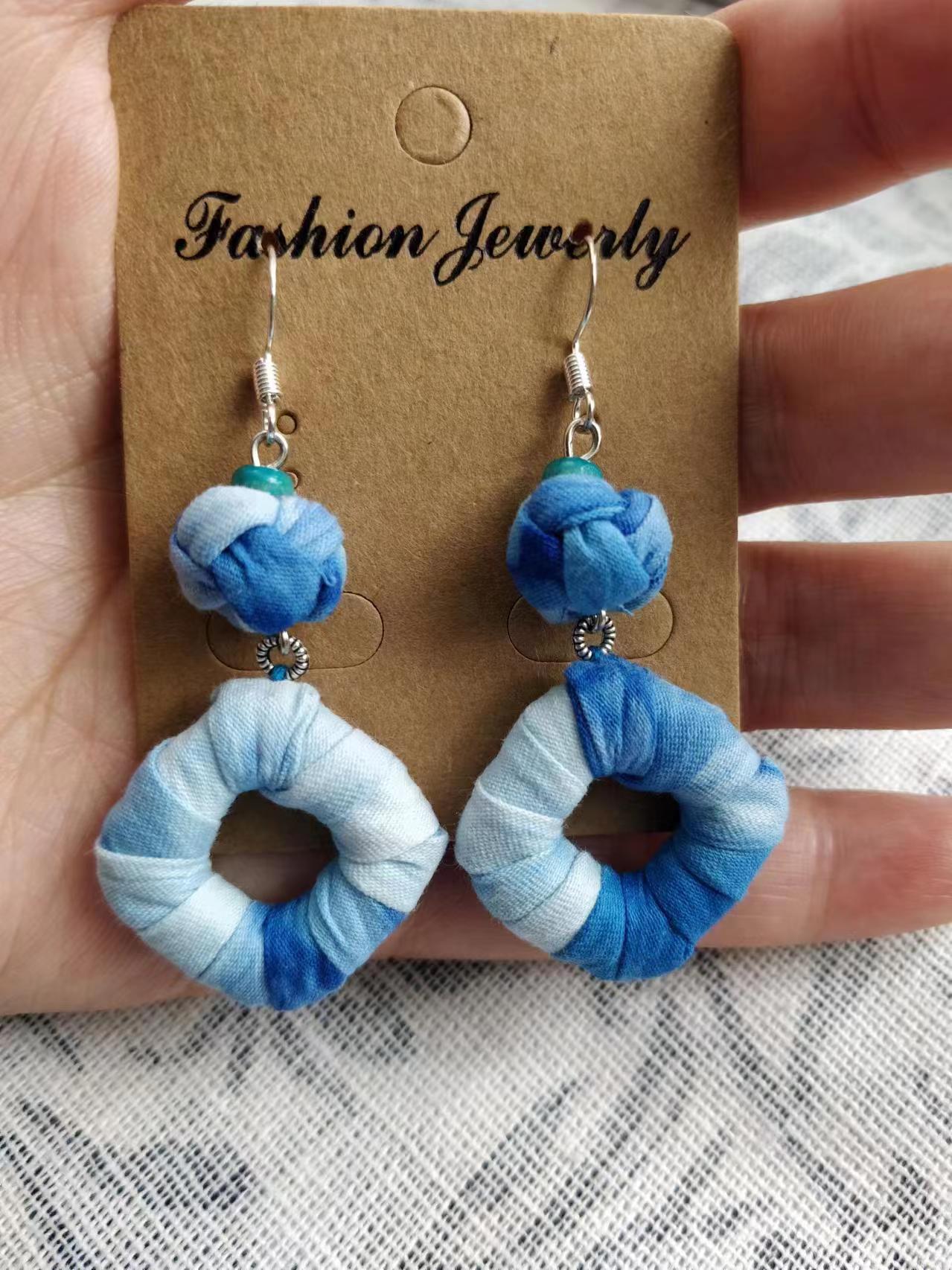 Юньнаньский национальный ветер серьги Дали галстукокрас синий батик ручной работы