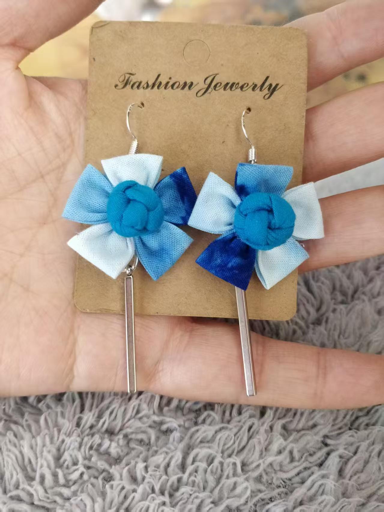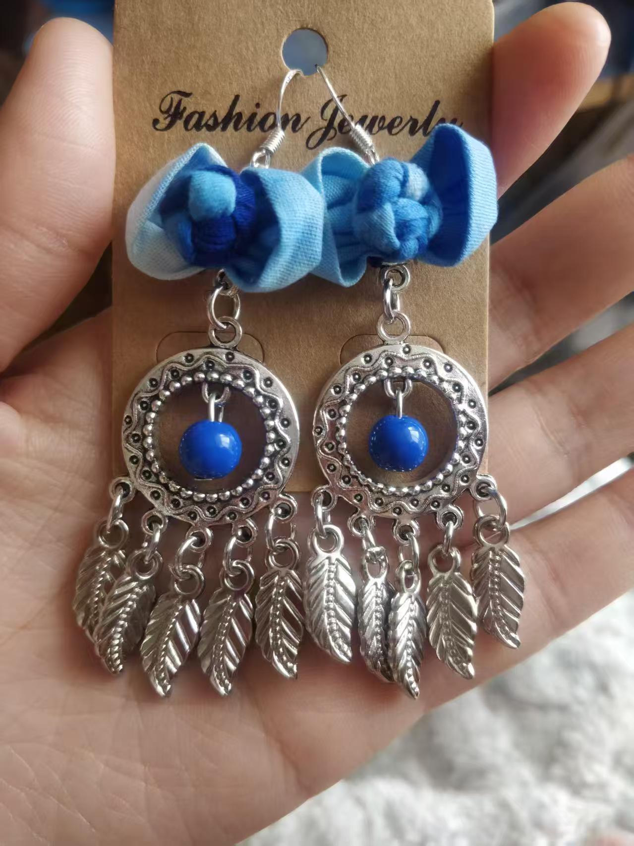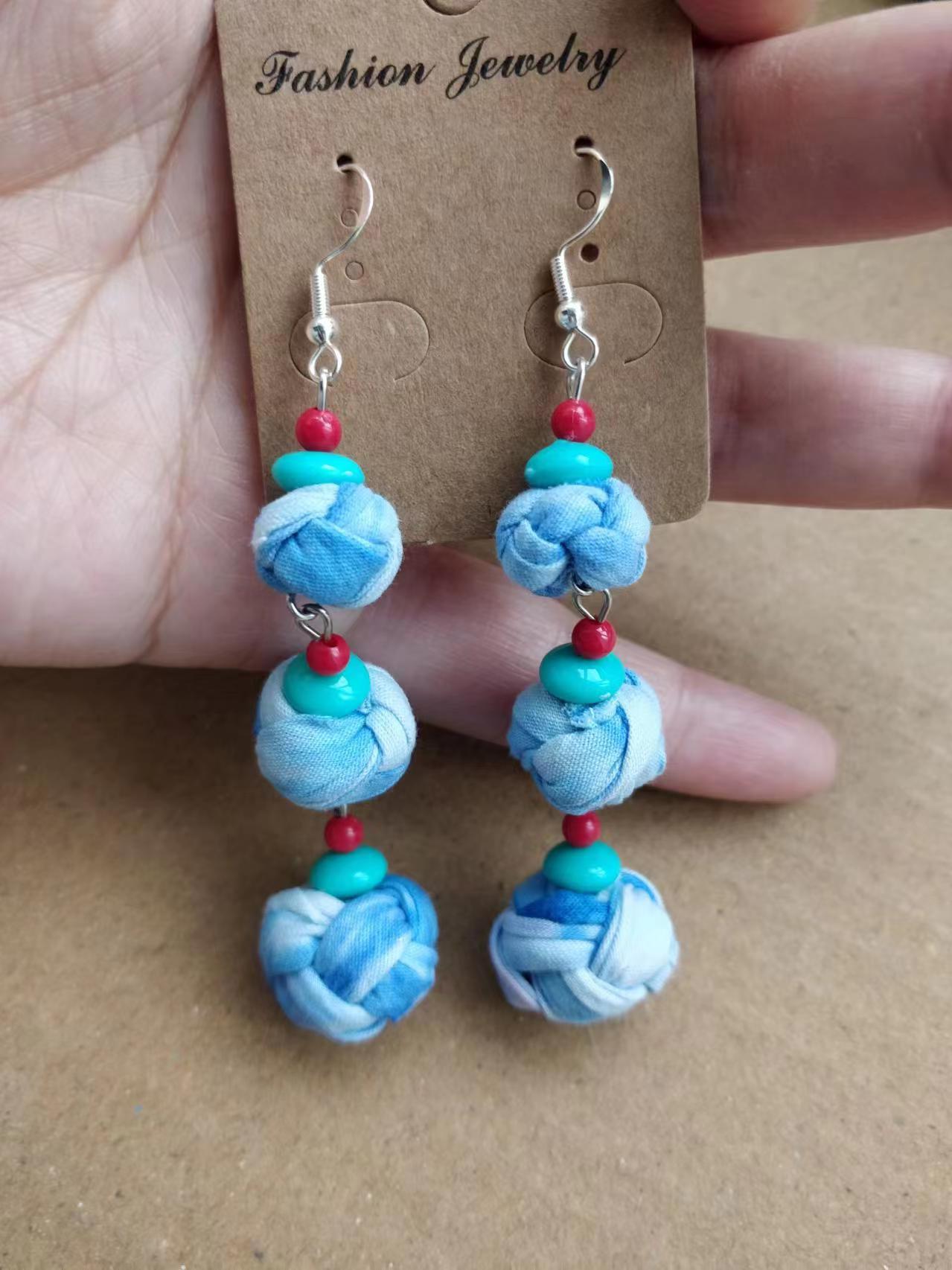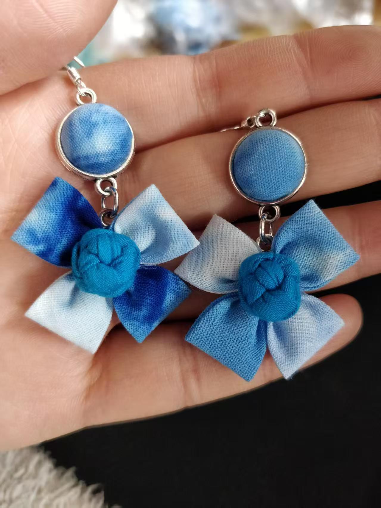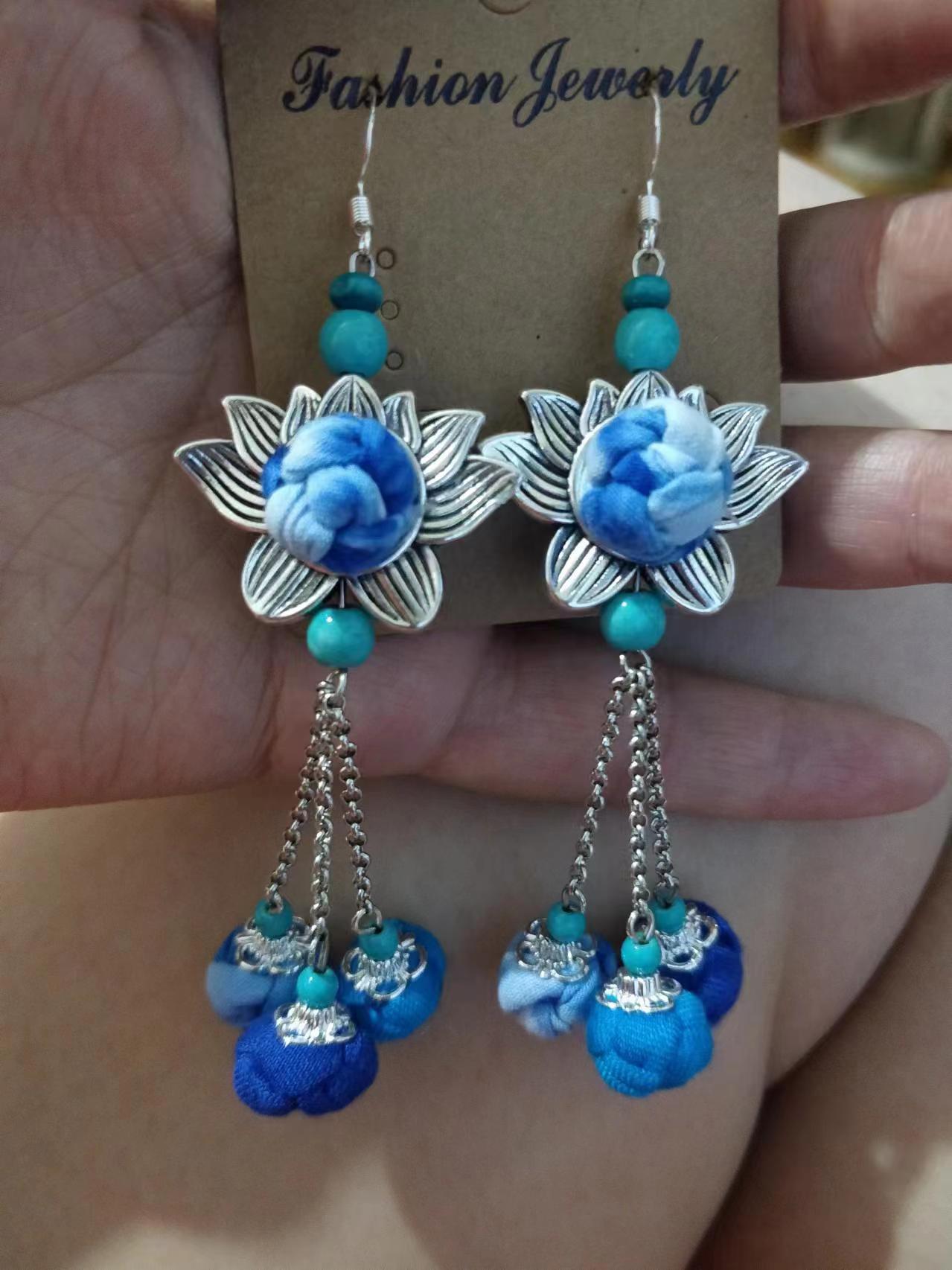 Юньнаньский национальный ветер серьги Дали галстукокрас синий батик ручной работы