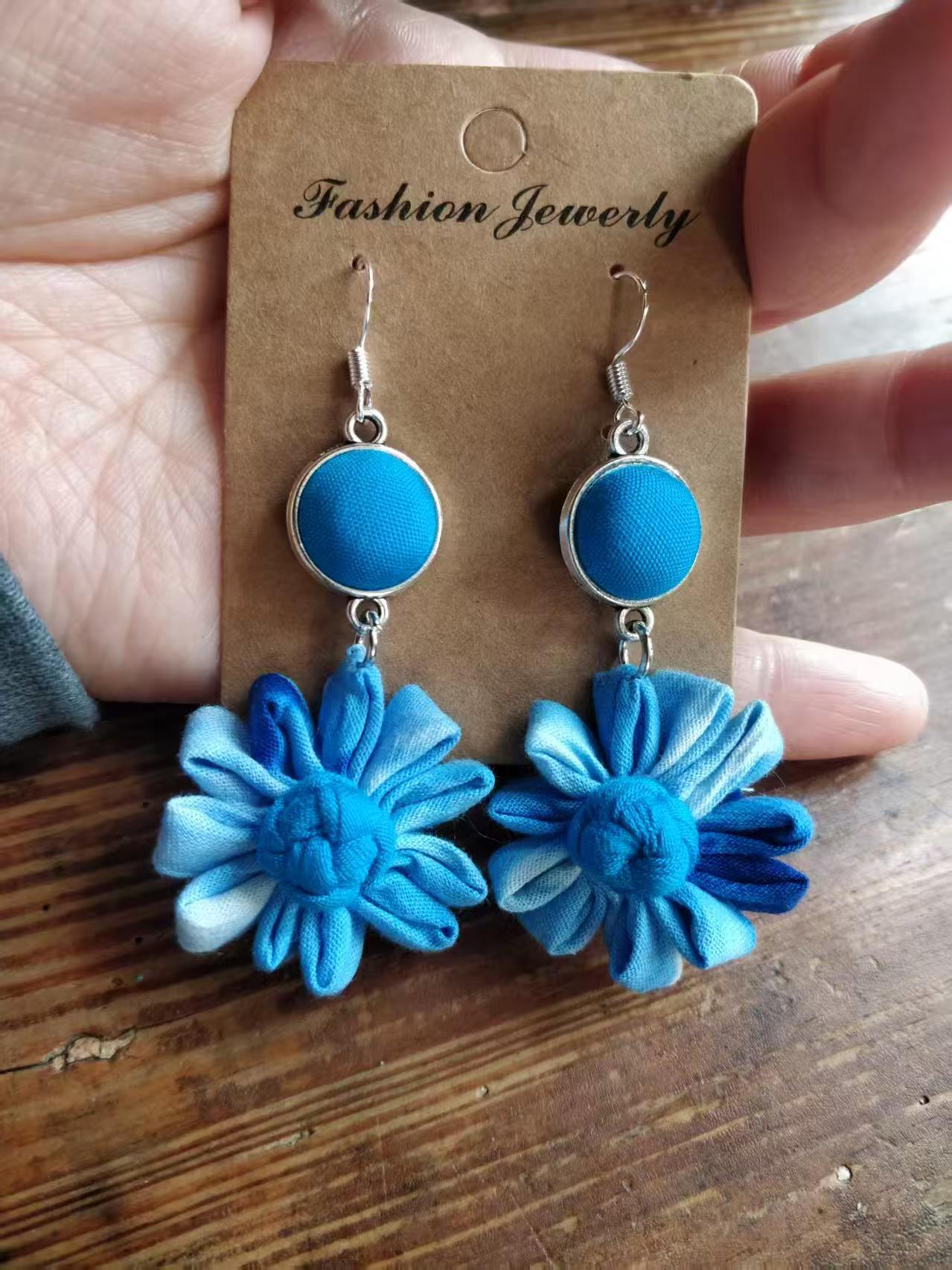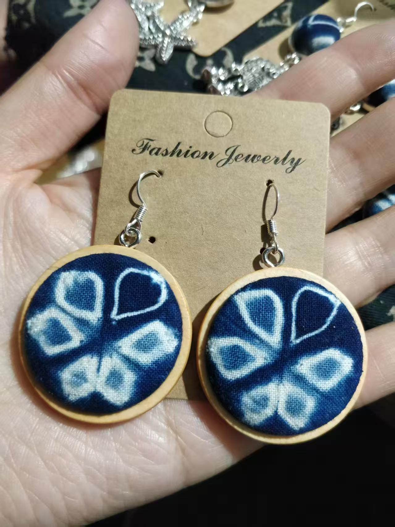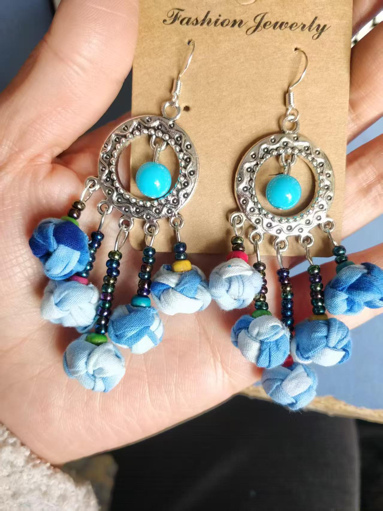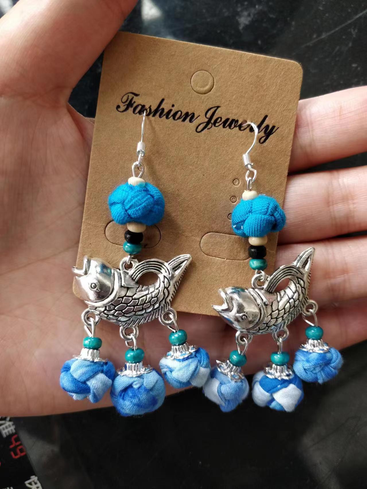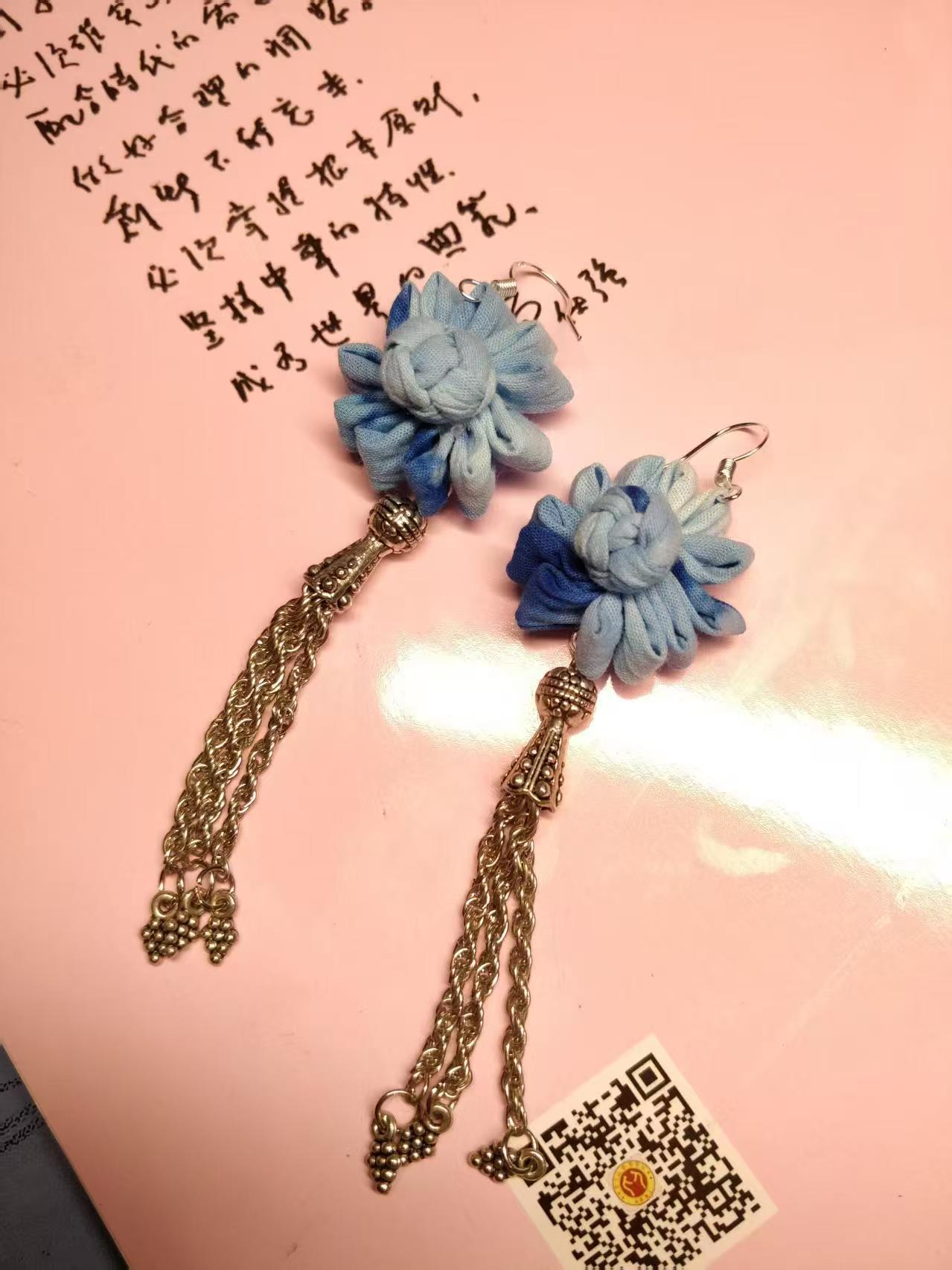 Юньнаньский национальный ветер серьги Дали галстукокрас синий батик ручной работы