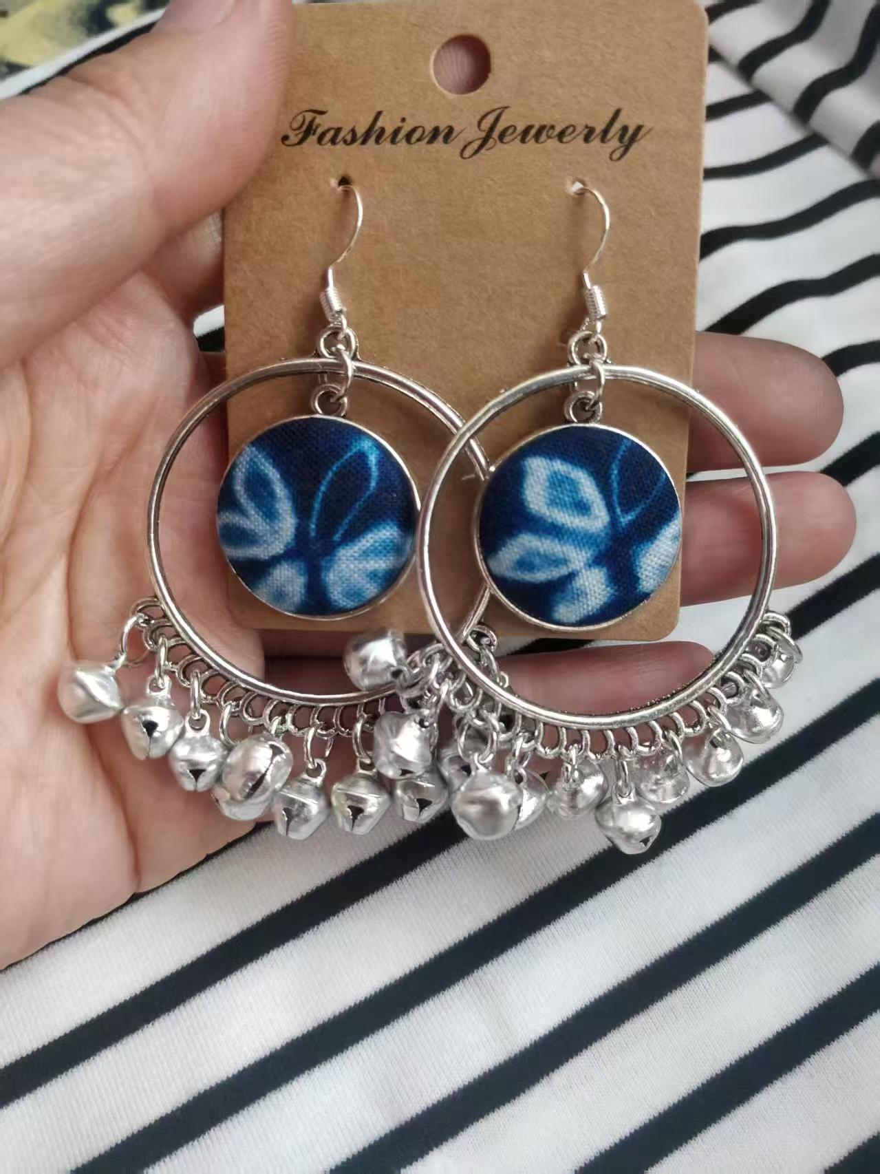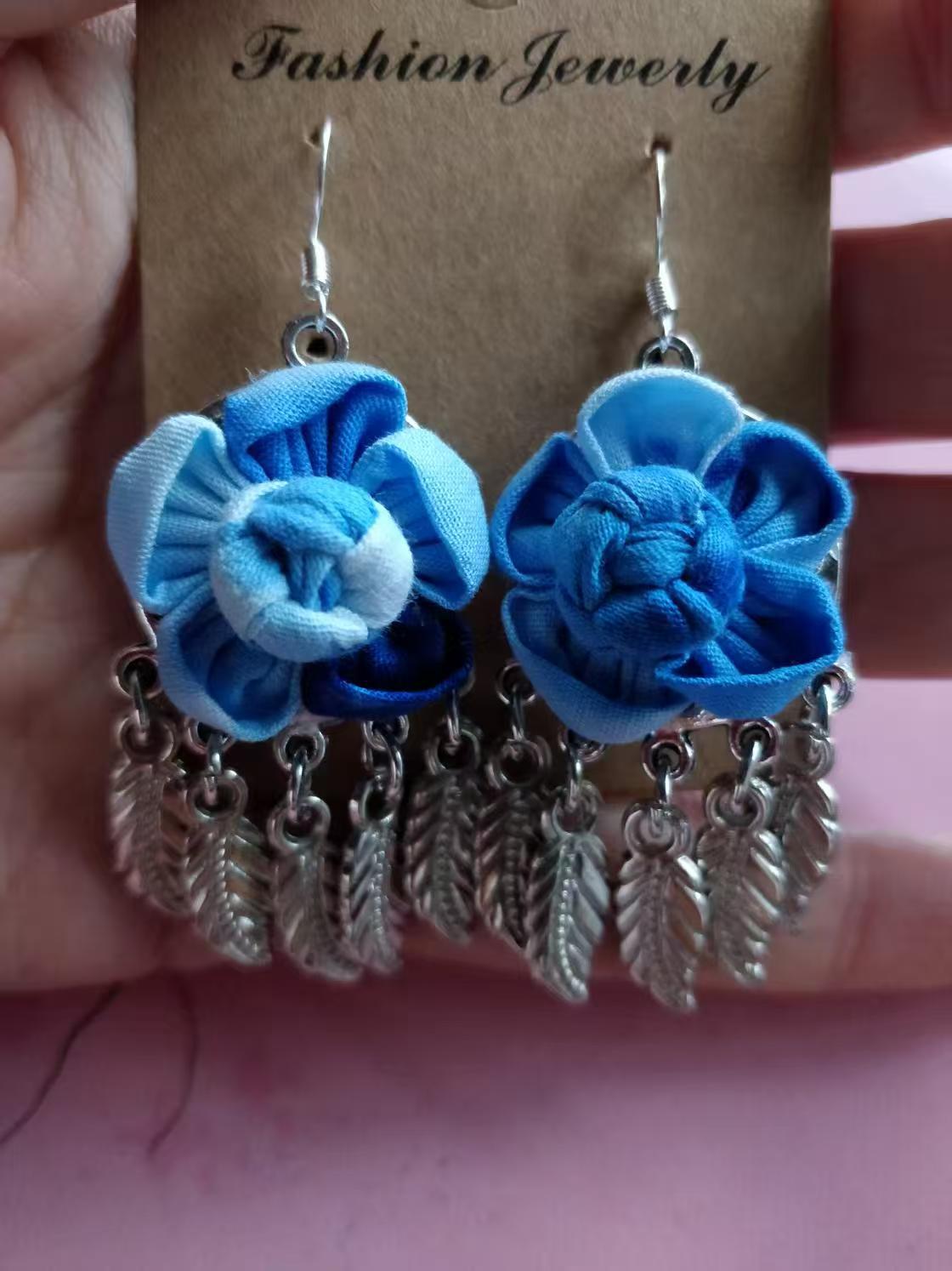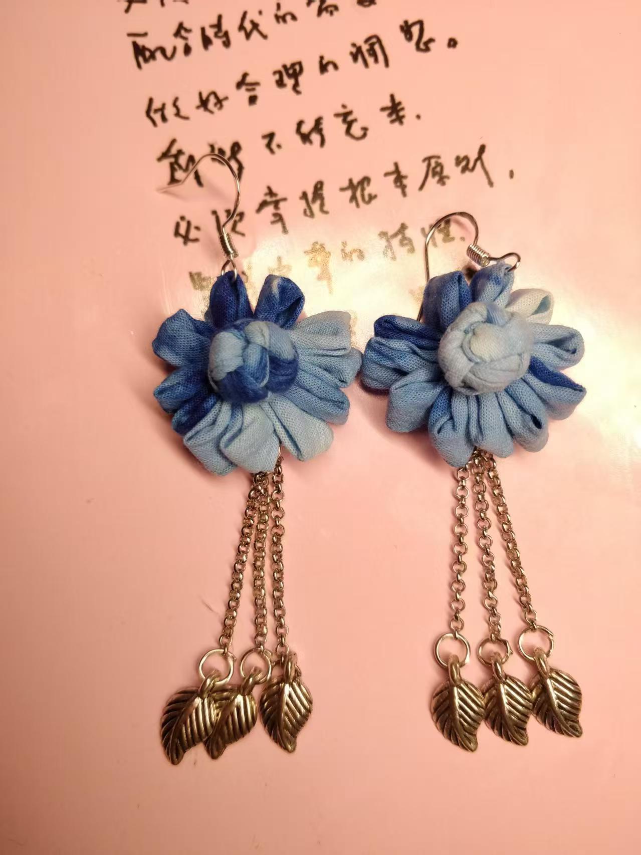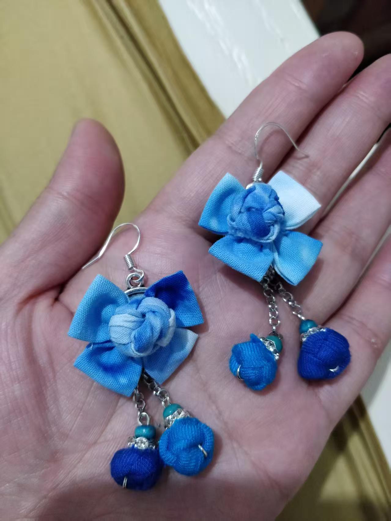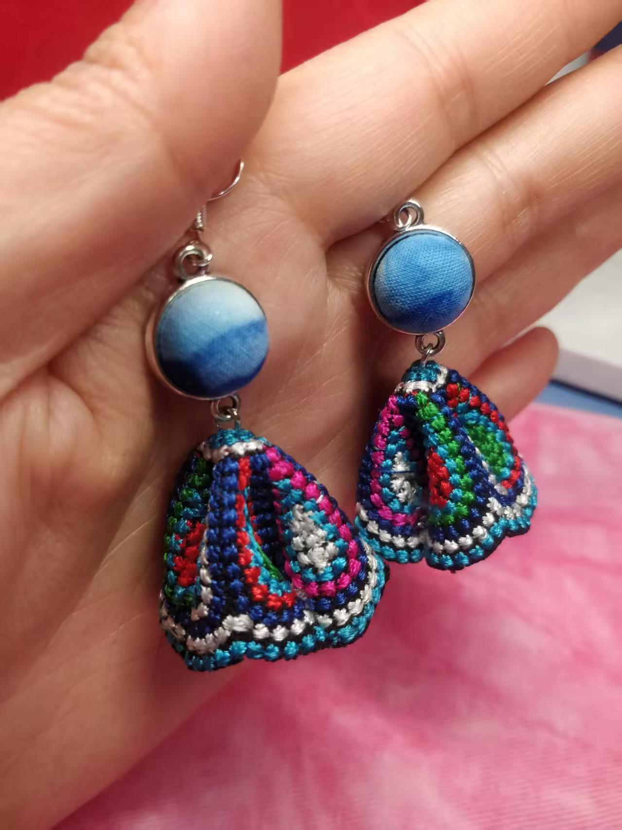 Юньнаньский национальный ветер серьги Дали галстукокрас синий батик ручной работы
