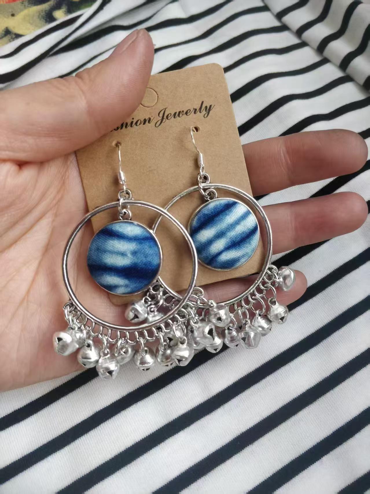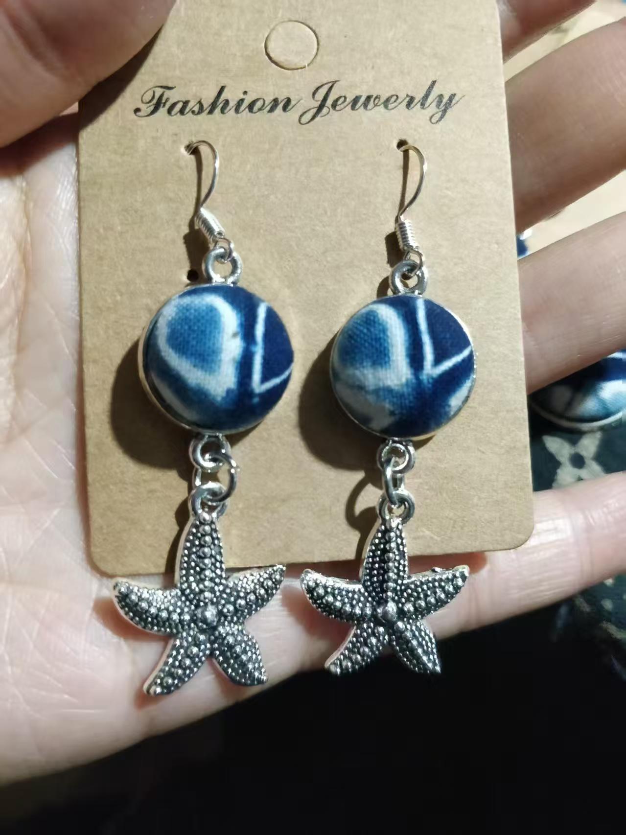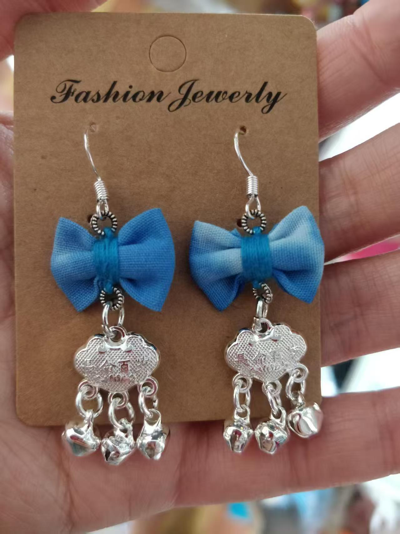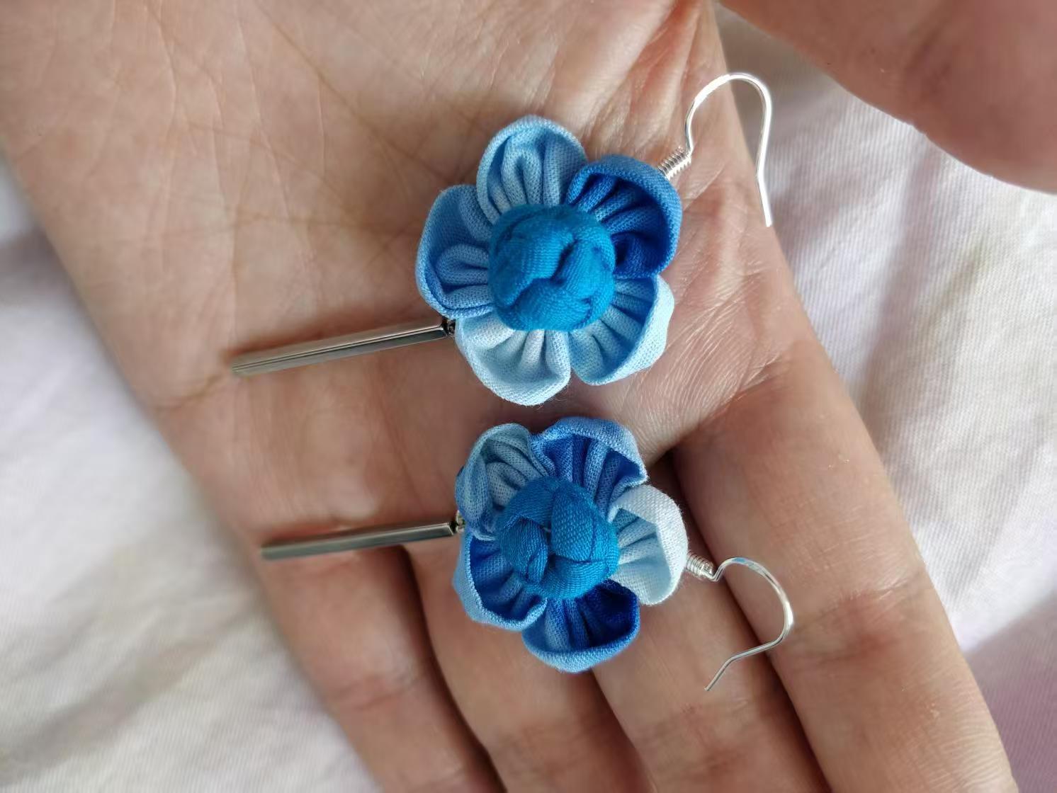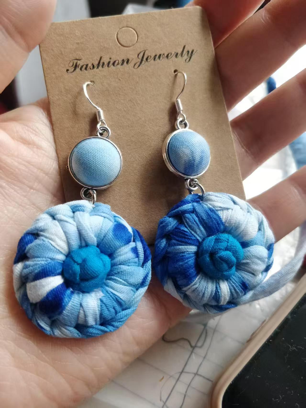 Юньнаньский национальный ветер серьги Дали галстукокрас синий батик ручной работы
