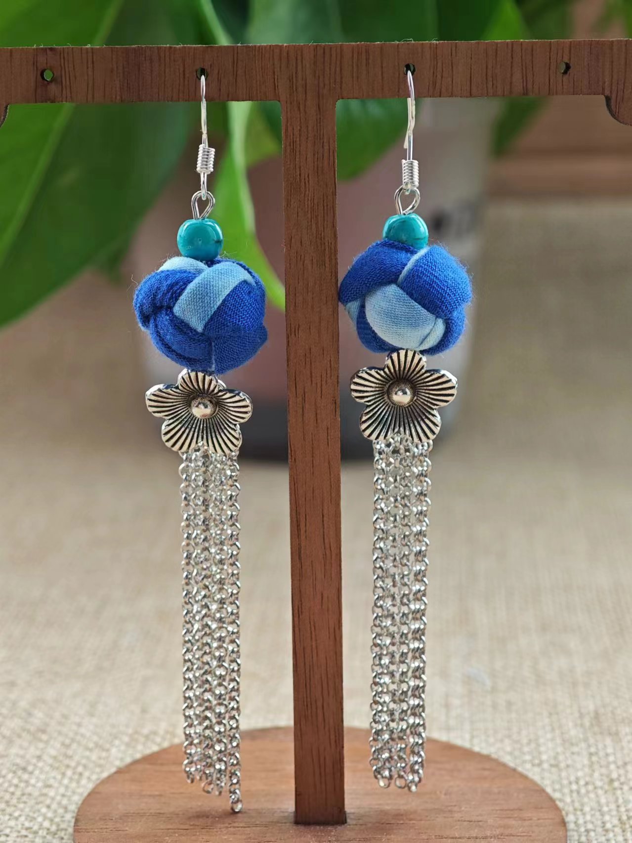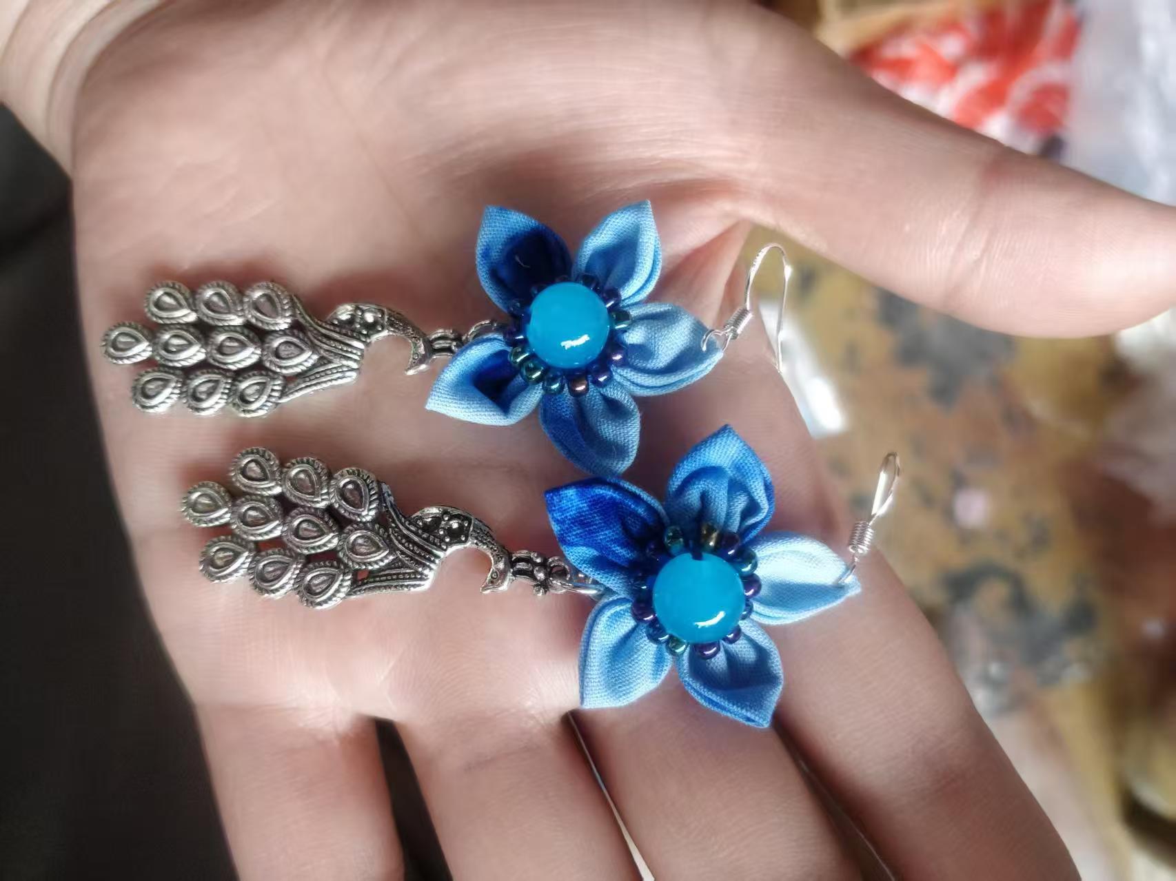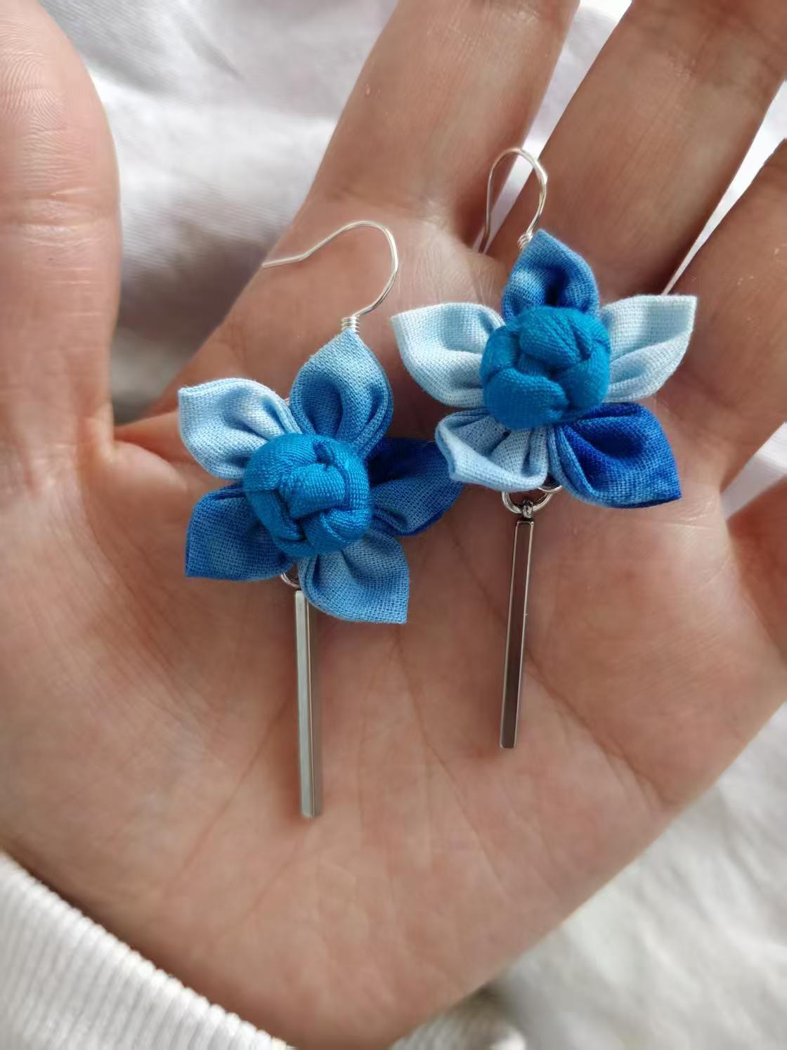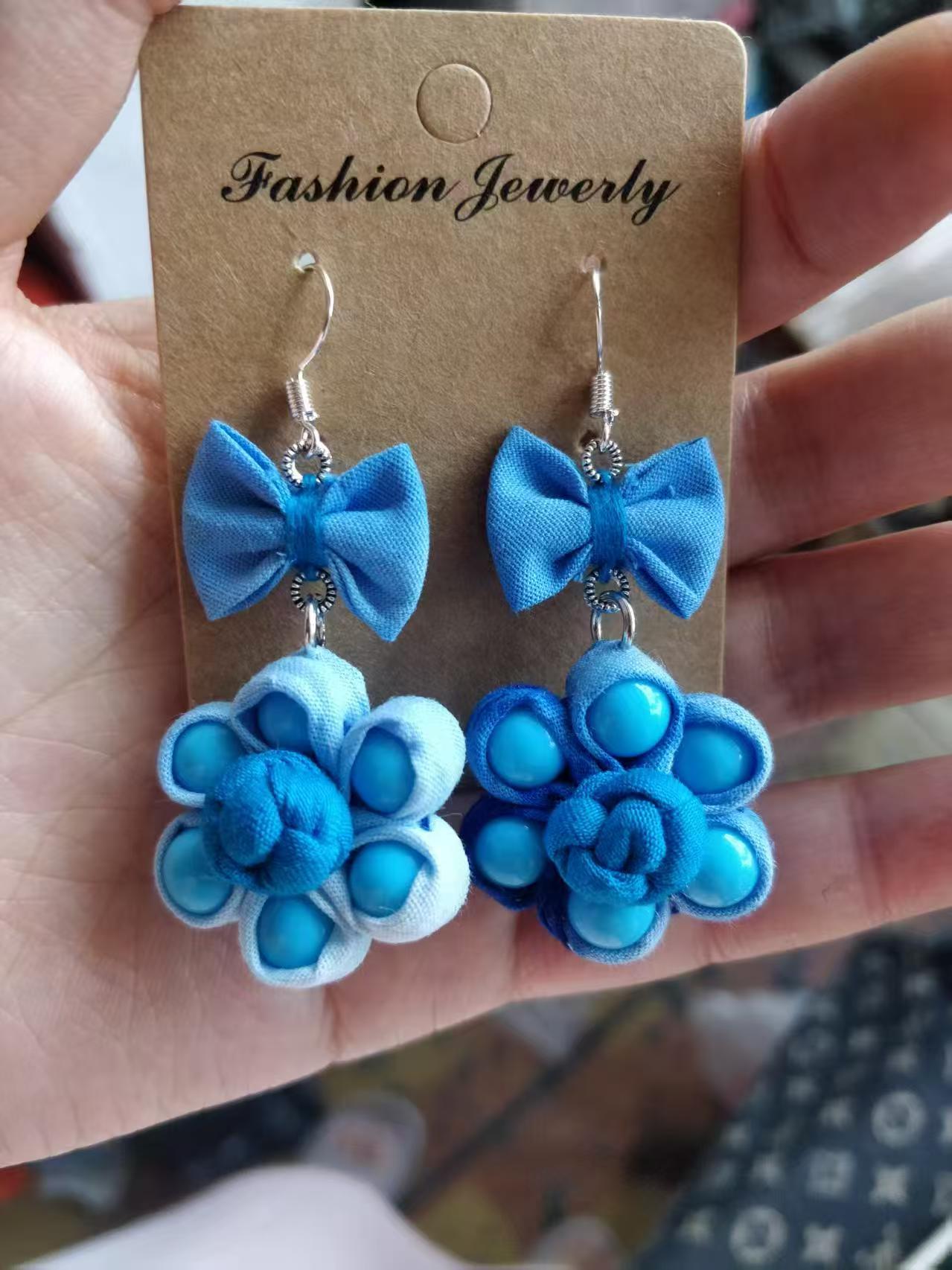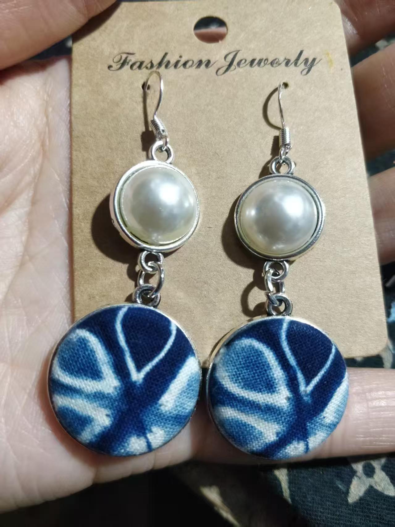 Юньнаньский национальный ветер серьги Дали галстукокрас синий батик ручной работы