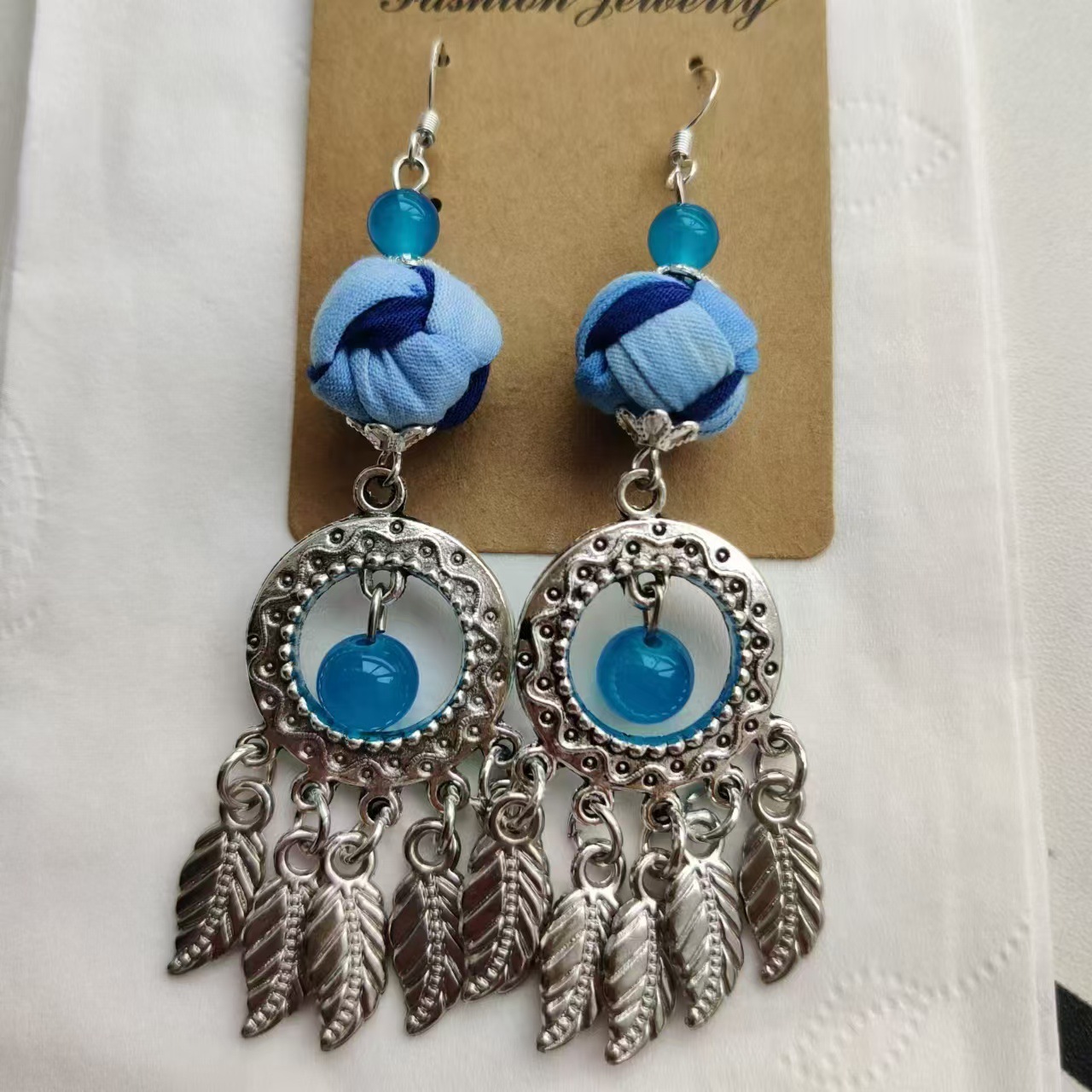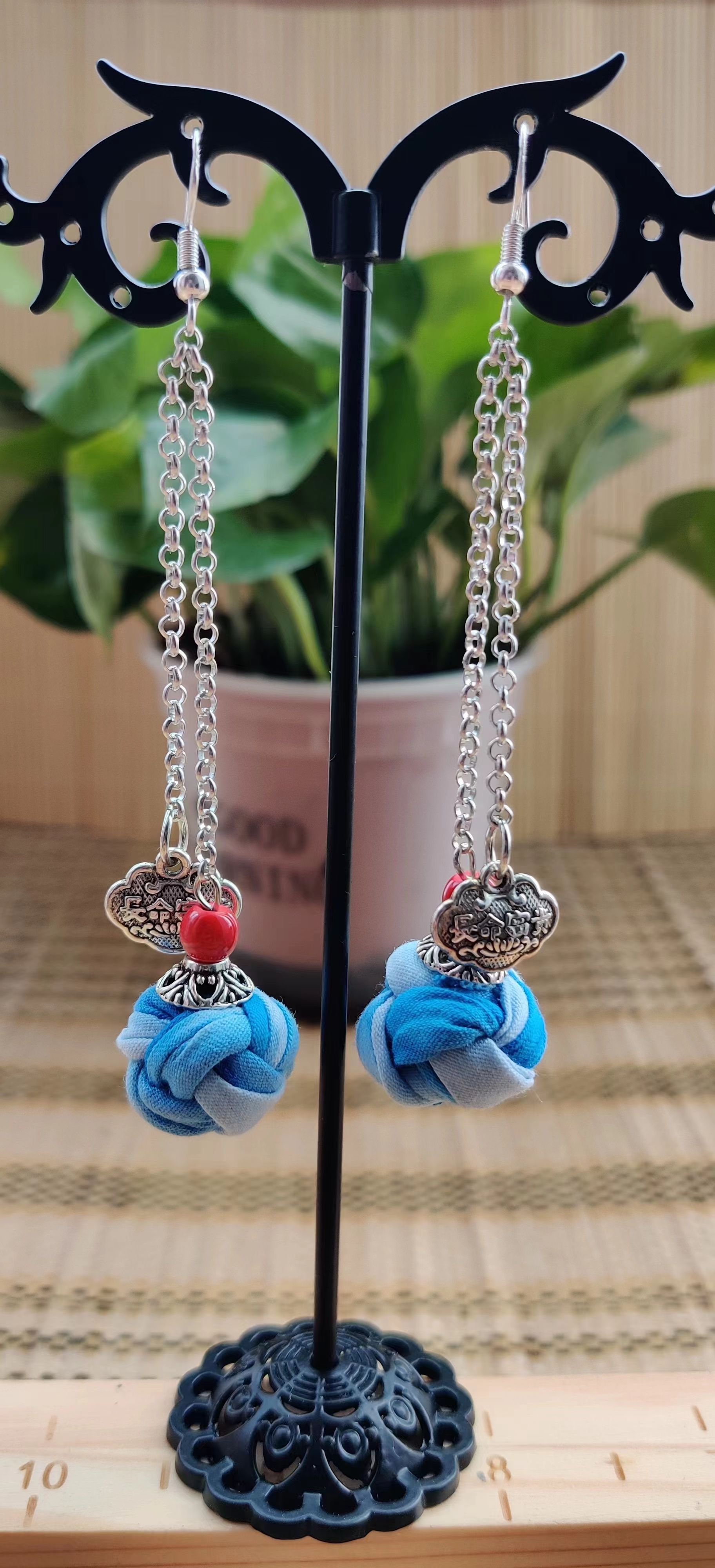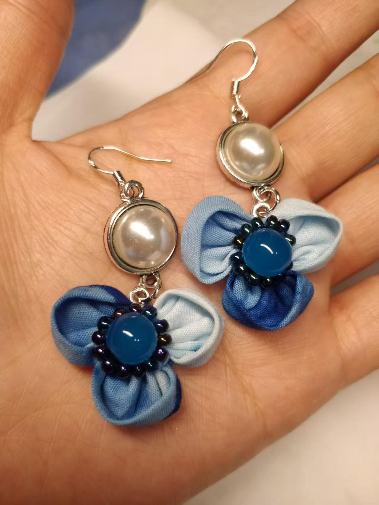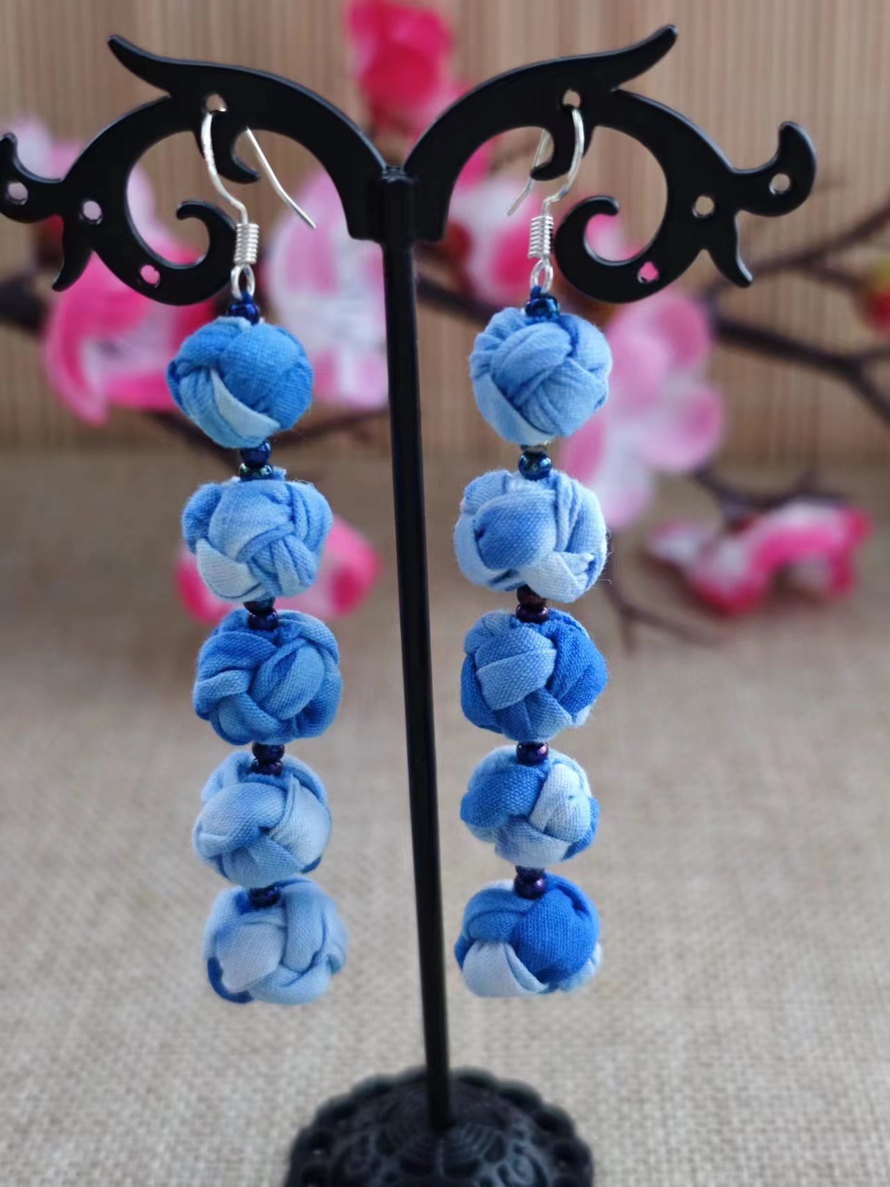 Юньнаньский национальный ветер серьги Дали галстукокрас синий батик ручной работы