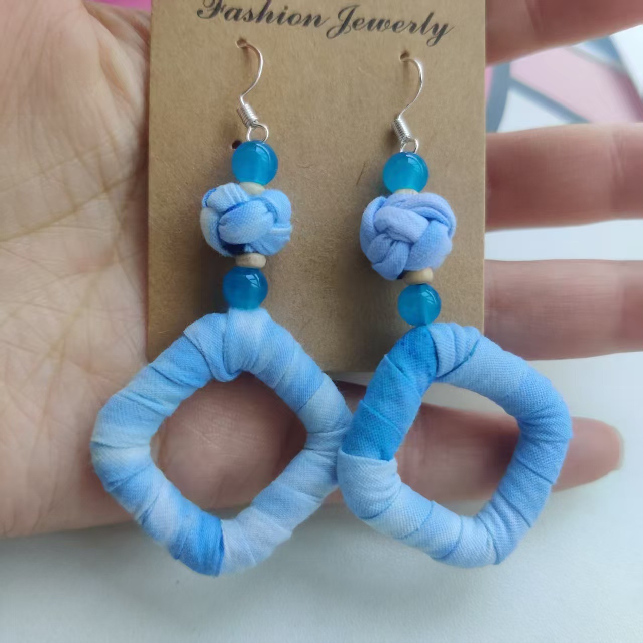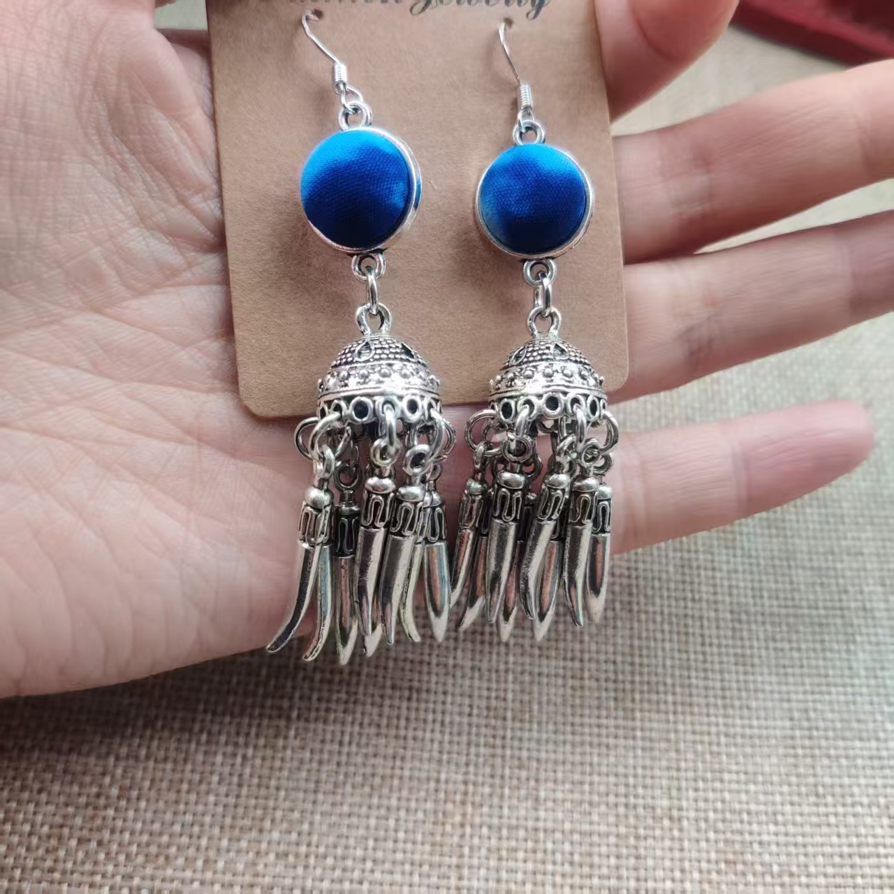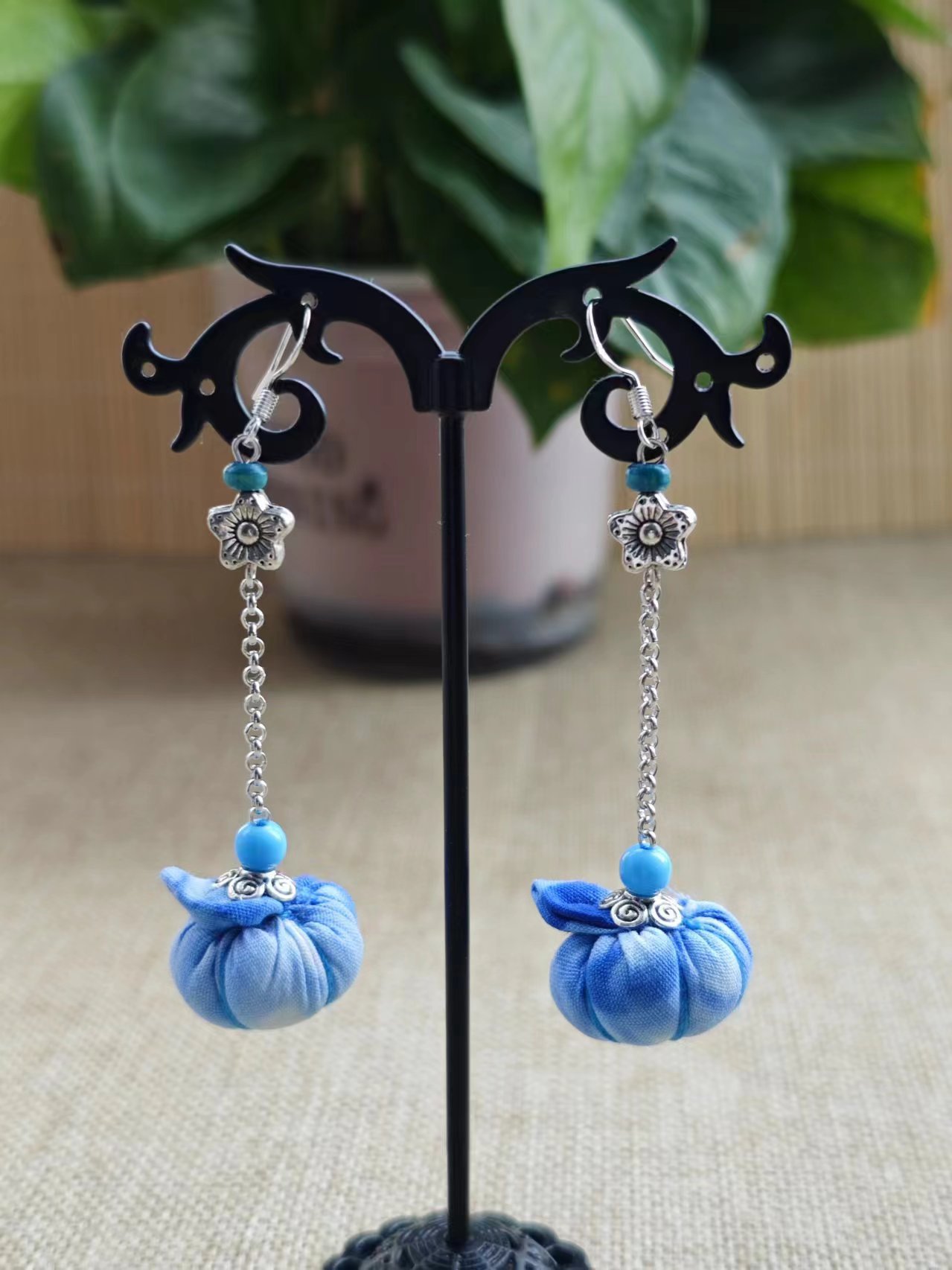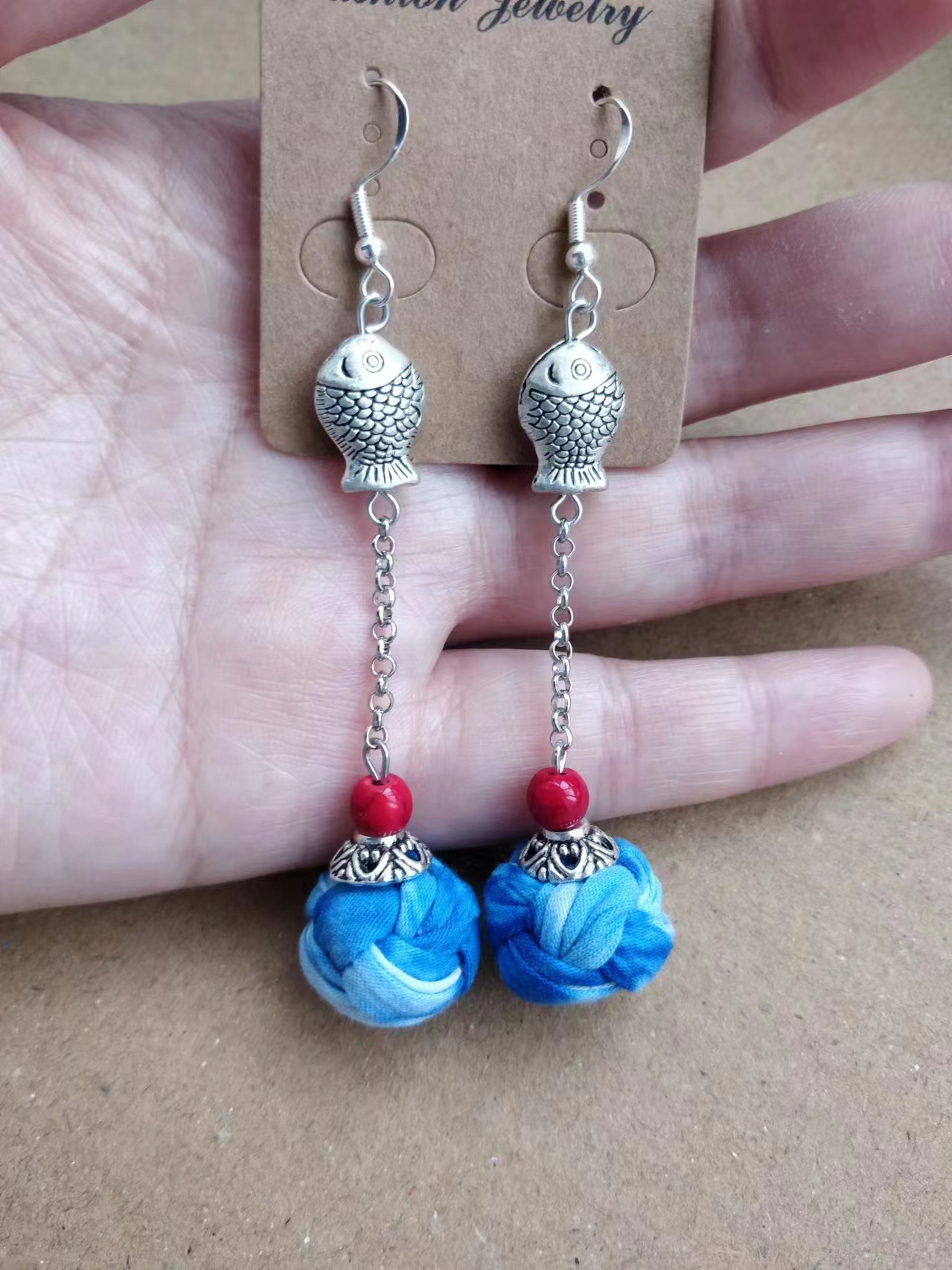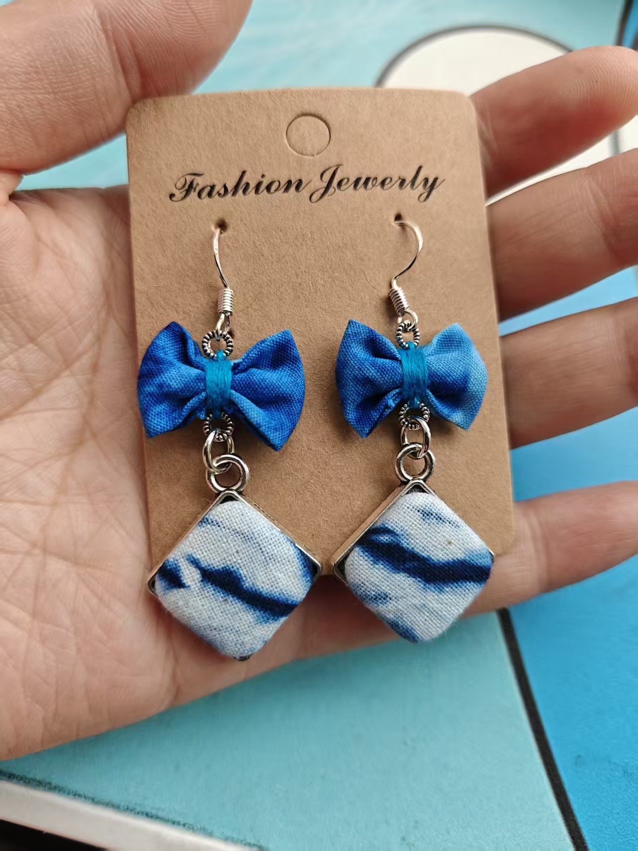Юньнаньский национальный ветер серьги Дали галстукокрас синий батик ручной работы
