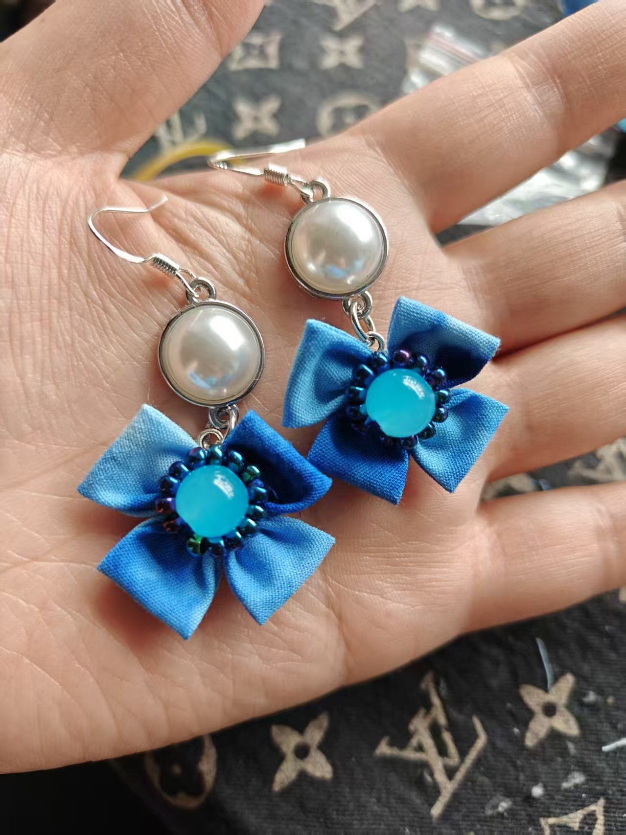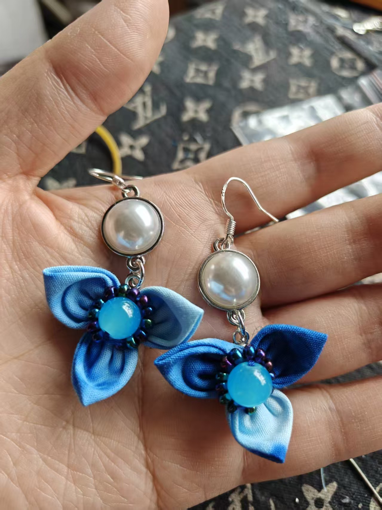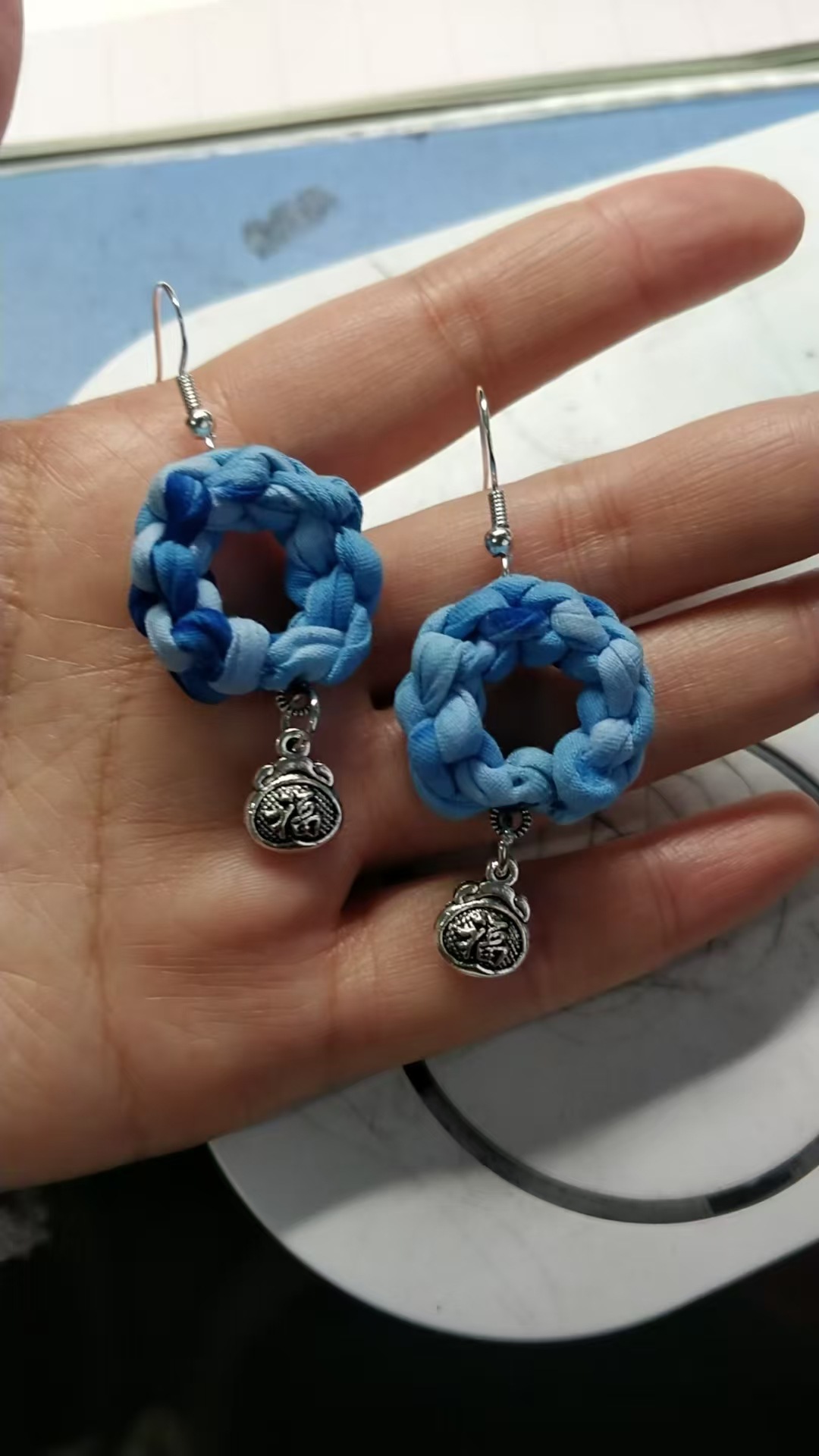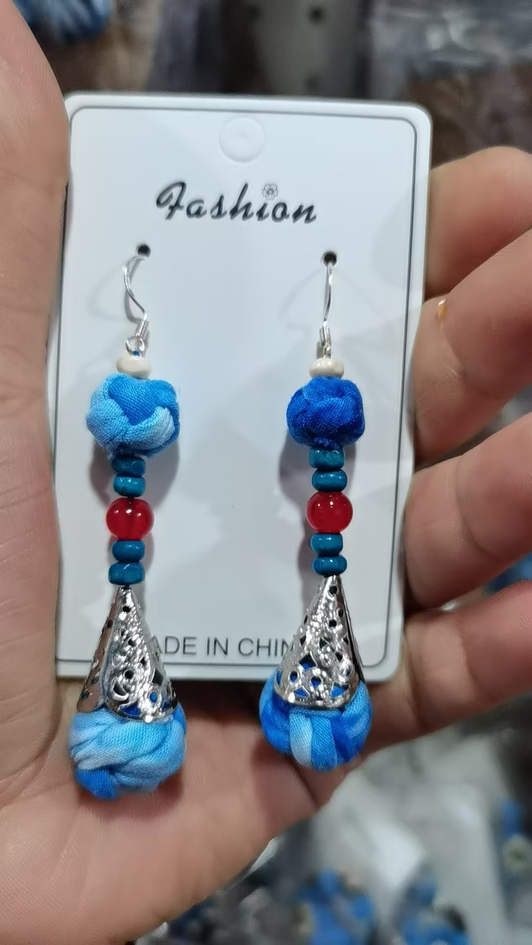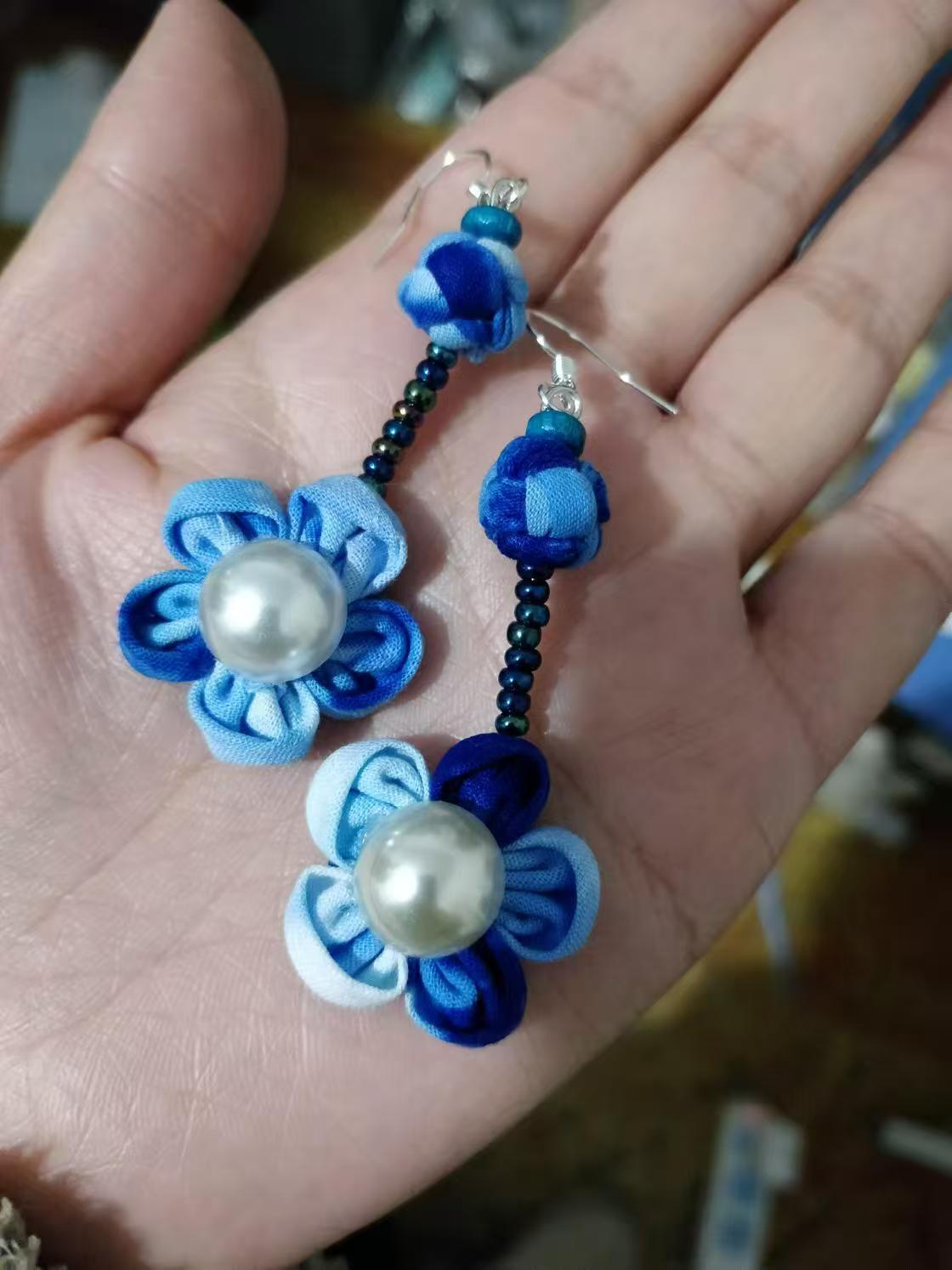 Юньнаньский национальный ветер серьги Дали галстукокрас синий батик ручной работы