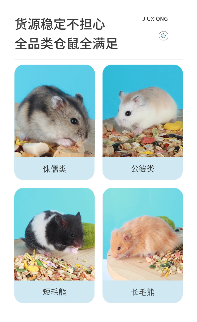Три линии; Фиолетовый склад; Серебряная лиса; Пудинг; Свекровь; Чай с молоком; Золотой медведь; Медведь с тигровым принтом; Корова медведь; Медведь с кругами; Рис медведь; Белый медведь; Взрослый склад; Взрослый медведь; Волосатый золотой шелк; Длинношерстный рисунок тигра; Длинношерстная корова; Длинные волосатые круги; Длинношерстный медведь; Длинношерстный белый медведь; Длинная гвоздика; Корица с длинными волосами; Длинношерстное серебро; Длинношерстное серебро; Небольшая пастораль; Маленький замок; Большой замок; Опилки 500 г; 400 г фруктов и овощей; 400 г морепродуктов; Свежее мясо сублимированное зерно 500 г; Бумажный хлопок 450 г; Зажим для хомяка; Добавьте клетку; С коробкой для волос
