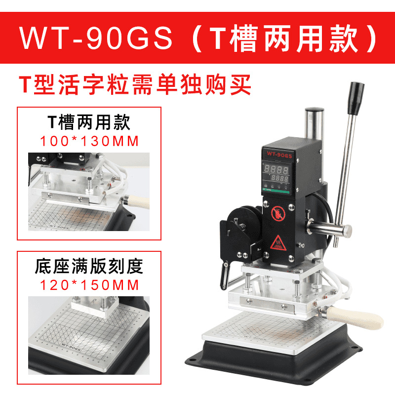 WT-90GS ручная машина для горячего тиснения, торговая марка с логотипом из искусственной кожи, машина для тиснения древесины, готовая машина для горячего тиснения