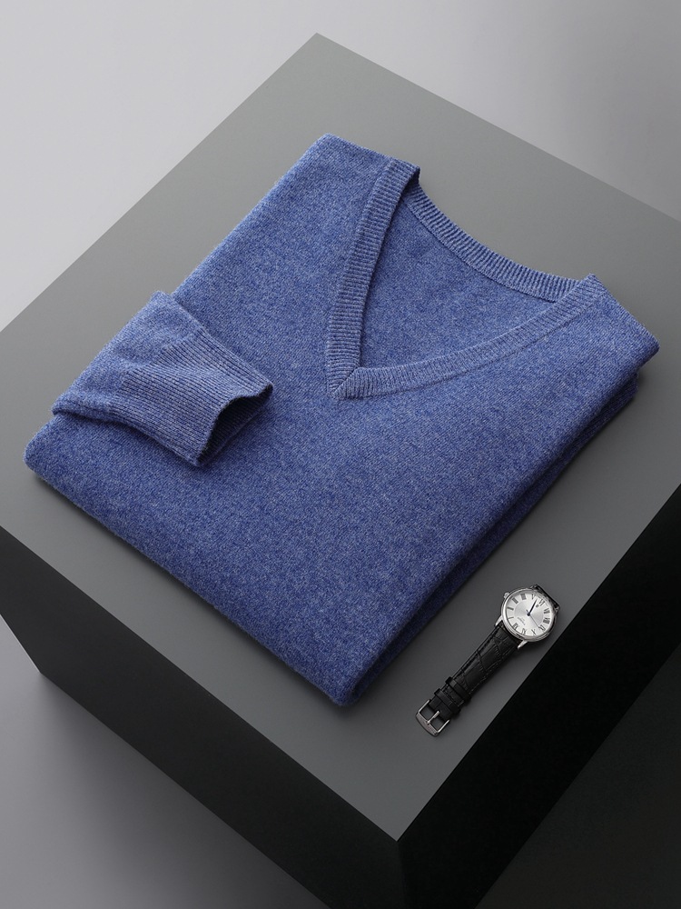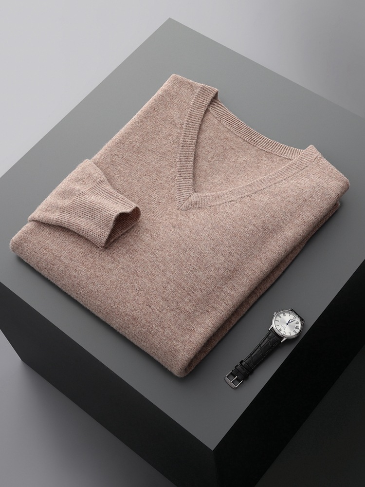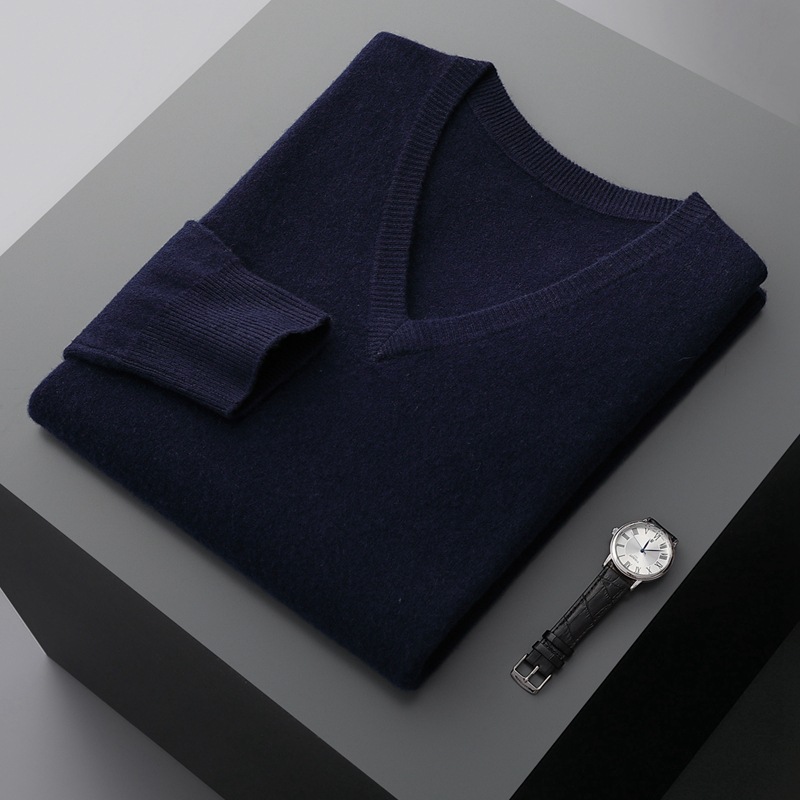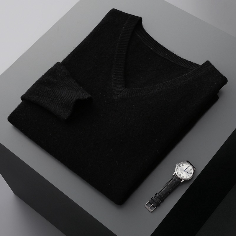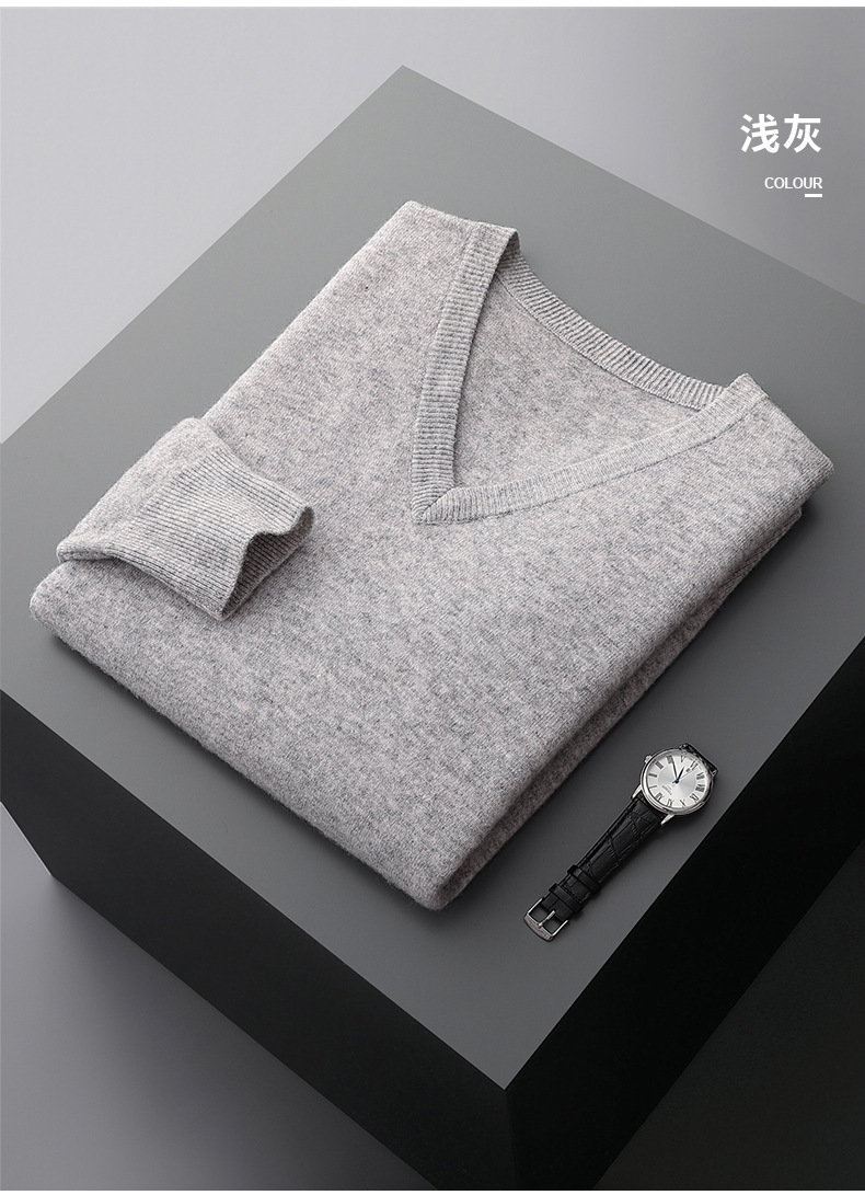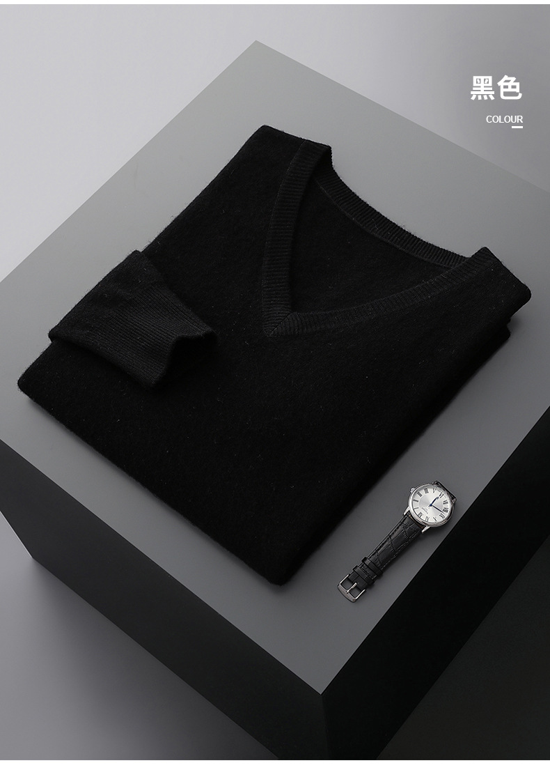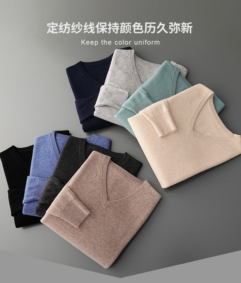 2024 осень и зима новый австралийский шерстяной свитер мужской V-образный свободный бизнес куриный воротник большой размер трикотажный свитер оптом