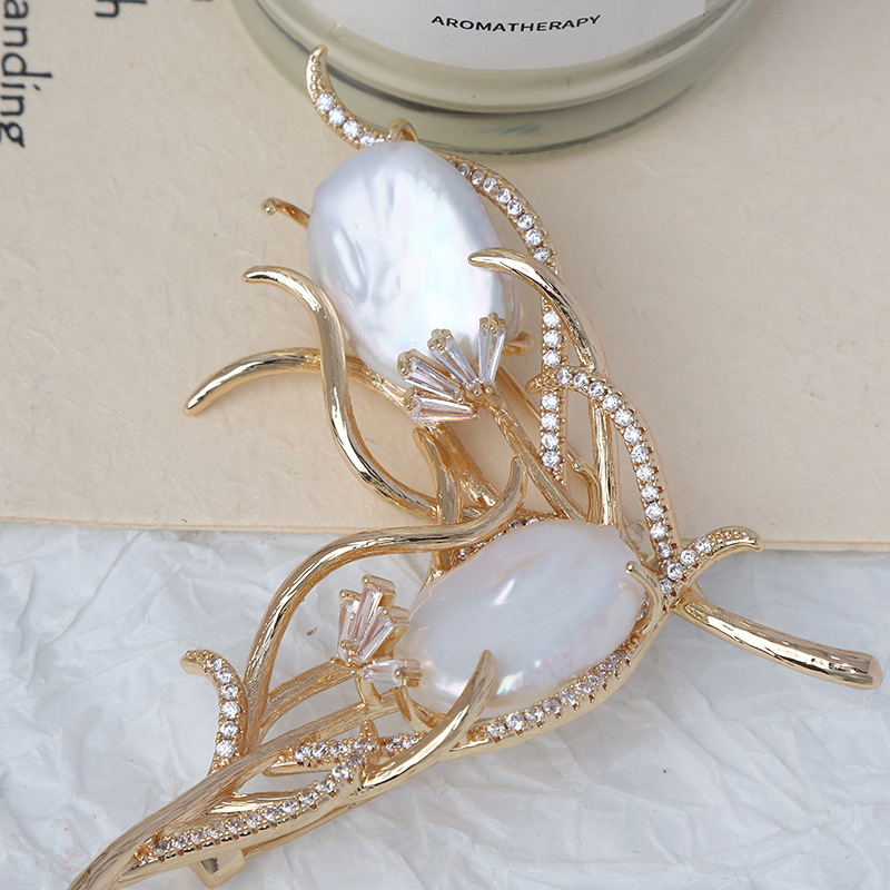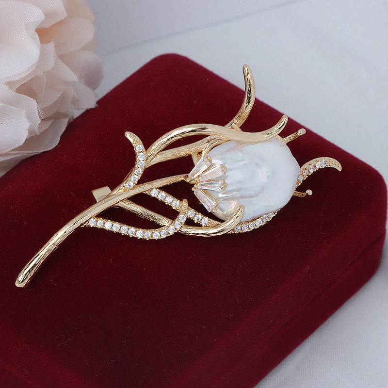Ретро дизайн Чувство цветы барокко натуральный пресноводный жемчуг брошь медное позолоченное микро-инкрустированное циркон