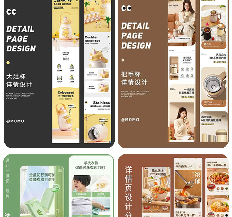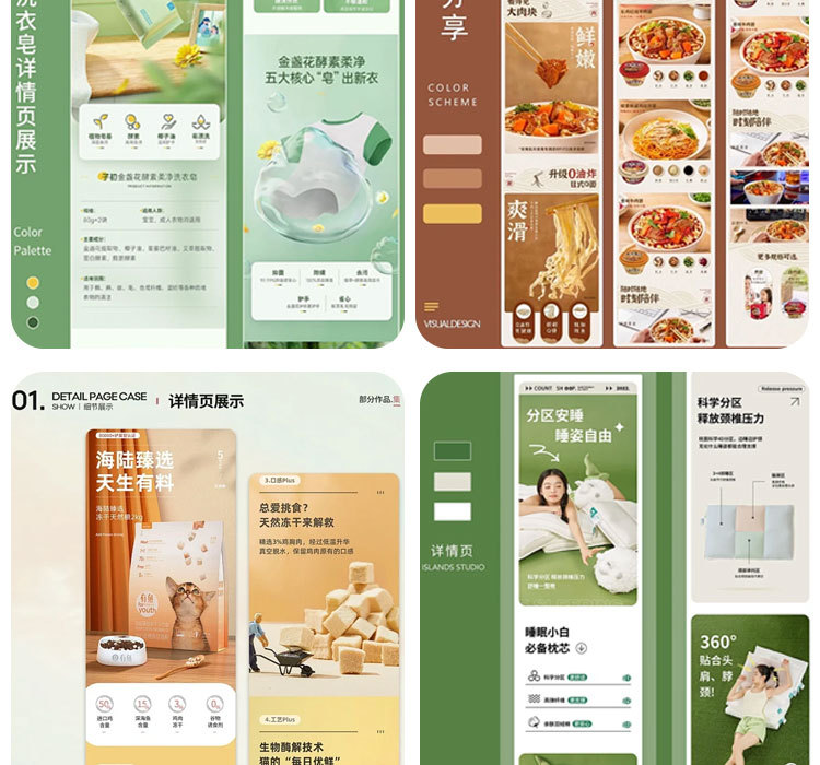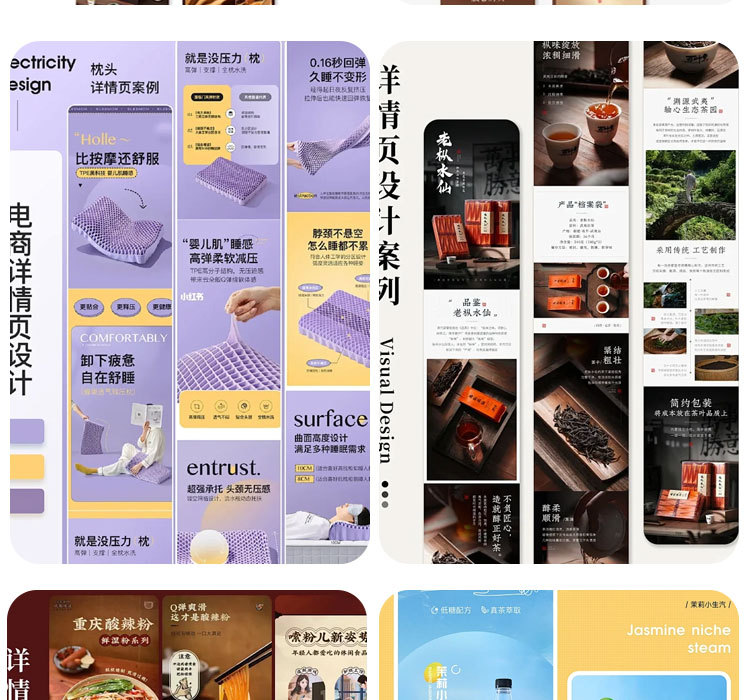 Дизайн главной страницы, детальной страницы, постеров и оформления магазина электронной коммерции на Taobao, Alibaba и Douyin.