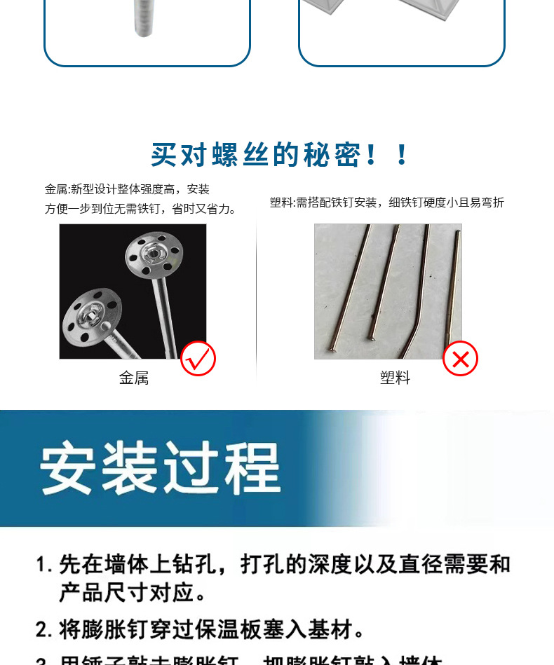 Металлические гвозди для утепления наружных стен, расширительные гвозди типа «зонтик», строительные материалы, винты для подложки прокладок, специальные гвозди для утепления наружных стен.