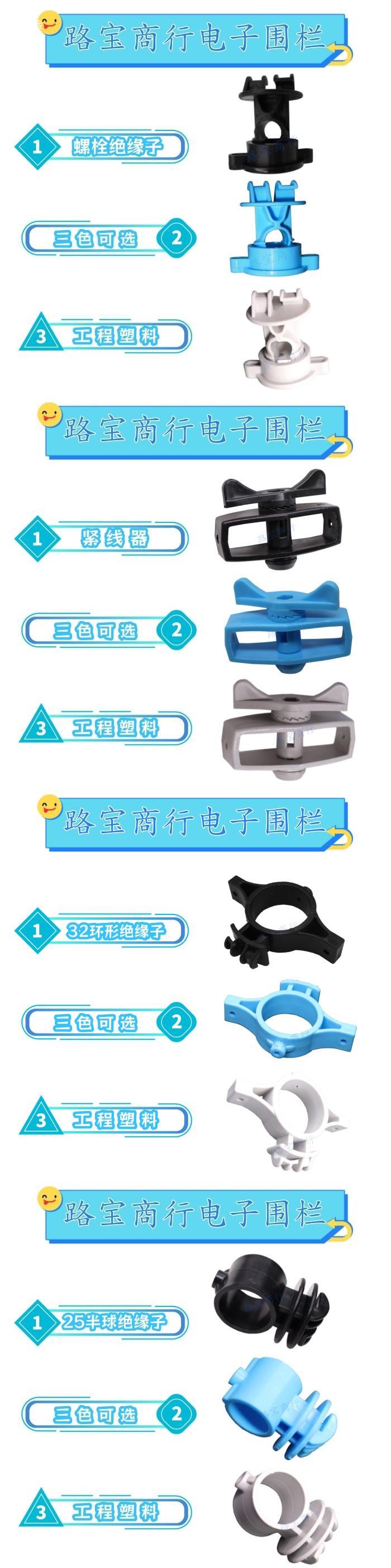 Изоляция болтов черный, синий, серый; 21 полусферный изолятор черный, синий, серо-белый; 25 полусферический изолятор черный, синий, серо-белый.; 32-кольцевой изолятор черный, синий, серый; Натяжитель резьбы черный, синий, серо-белый; 9,5-1,5 изоляция трубной втулки черный, синий, серо-белый; Пряжка 9,5 черная, синяя, серая; Крышка 9,5 черная, синяя, серая; 21 колпачок черный, синий, серый; 25 кепок черный, синий, серый; 32 кепки черные, синие, серые; 38 кепок черный, синий, серый; Терминальный изолятор черный; Изолятор полусферы черный; Композитный изолятор черный, синий, серый