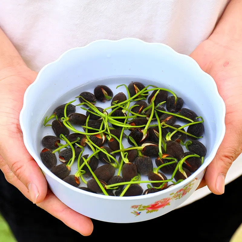 观赏性莲子(作为观叶植物,发芽长叶):可从水族店买点沙子,撒进去铺在泥土上。有沙子,水会变清,水换掉,可以在里面养几条小鱼,心情美美哒!