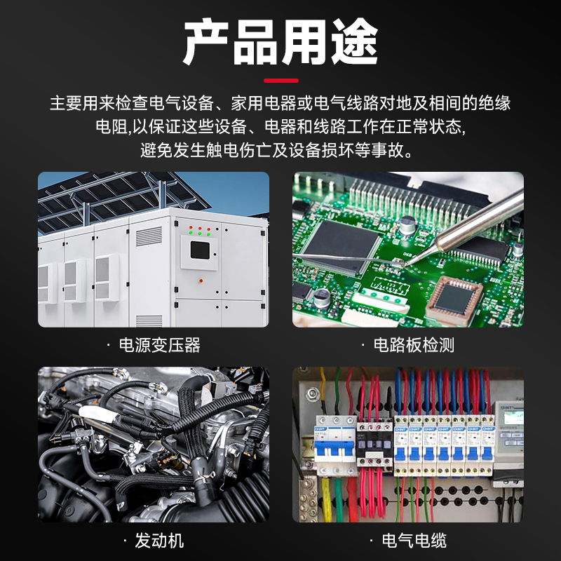 1. 测量范围广:能满足多种不同绝缘电阻值的测量需求。
