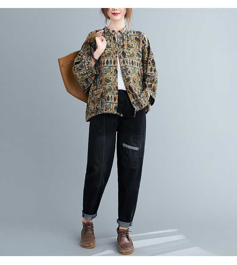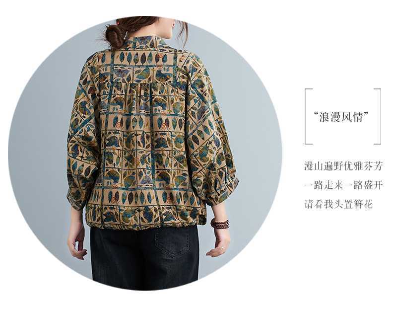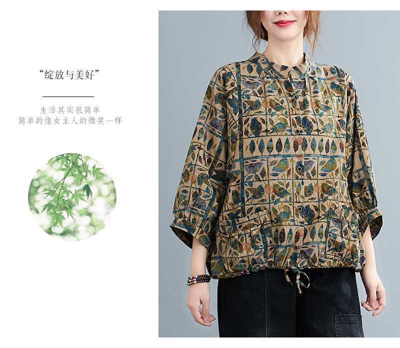 Настоящий снимок 2024, новые летние стильные толстые мм ретро литературные хлопковые и льняные рубашки большого размера, свободные топы с принтом для женщин