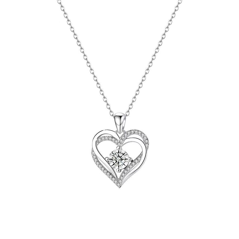 Amazon трансграничные европейские и американские новые подвески двойные ожерелья бесконечная любовь в форме бриллиантов Вечная сердце подвеска ключица