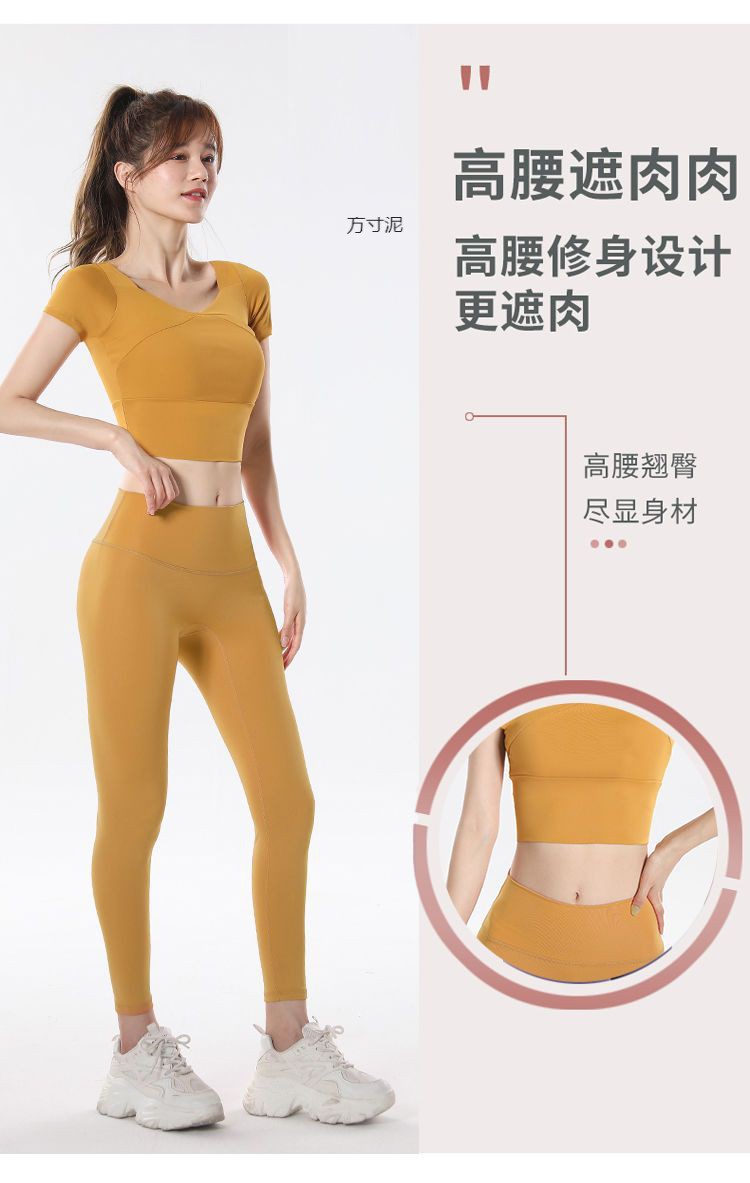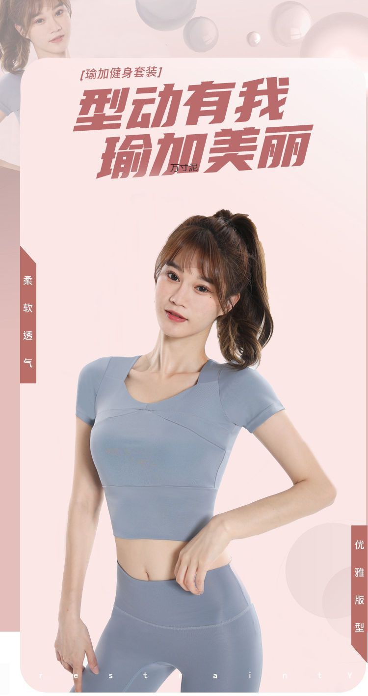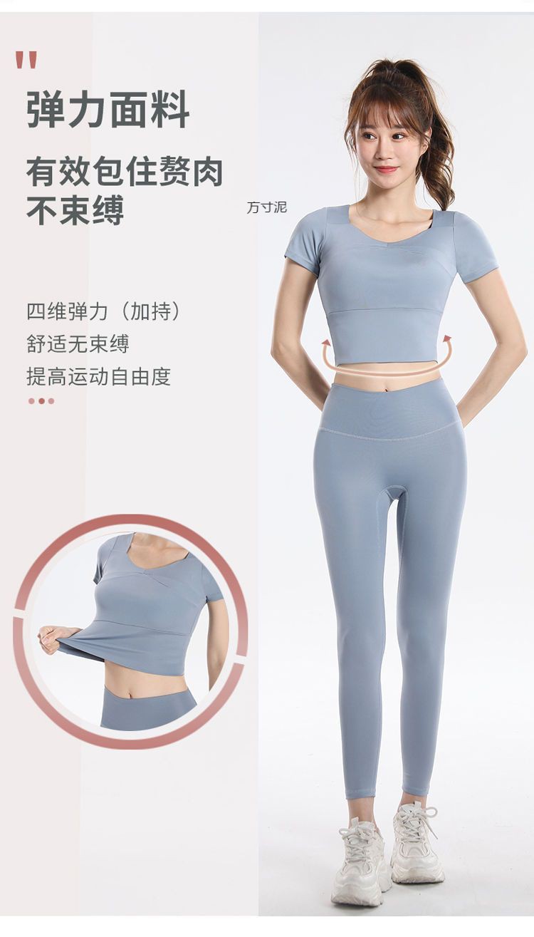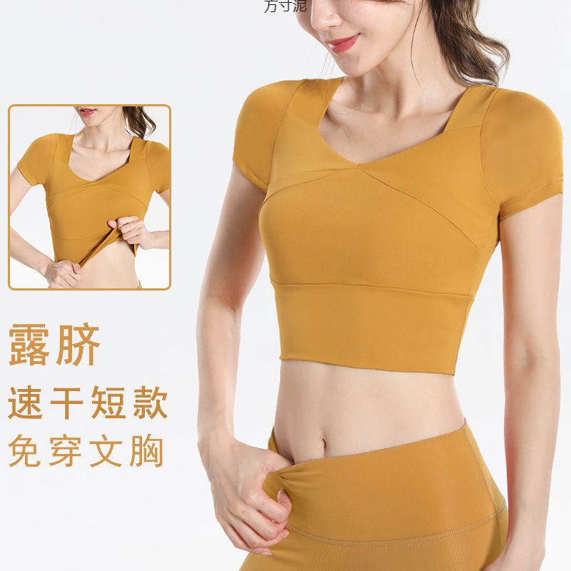 Костюм для йоги женский с нагрудным ковриком для бега фитнес с короткими рукавами спортивный топ эластичная стройная 2024 весна и лето новый стиль оптом