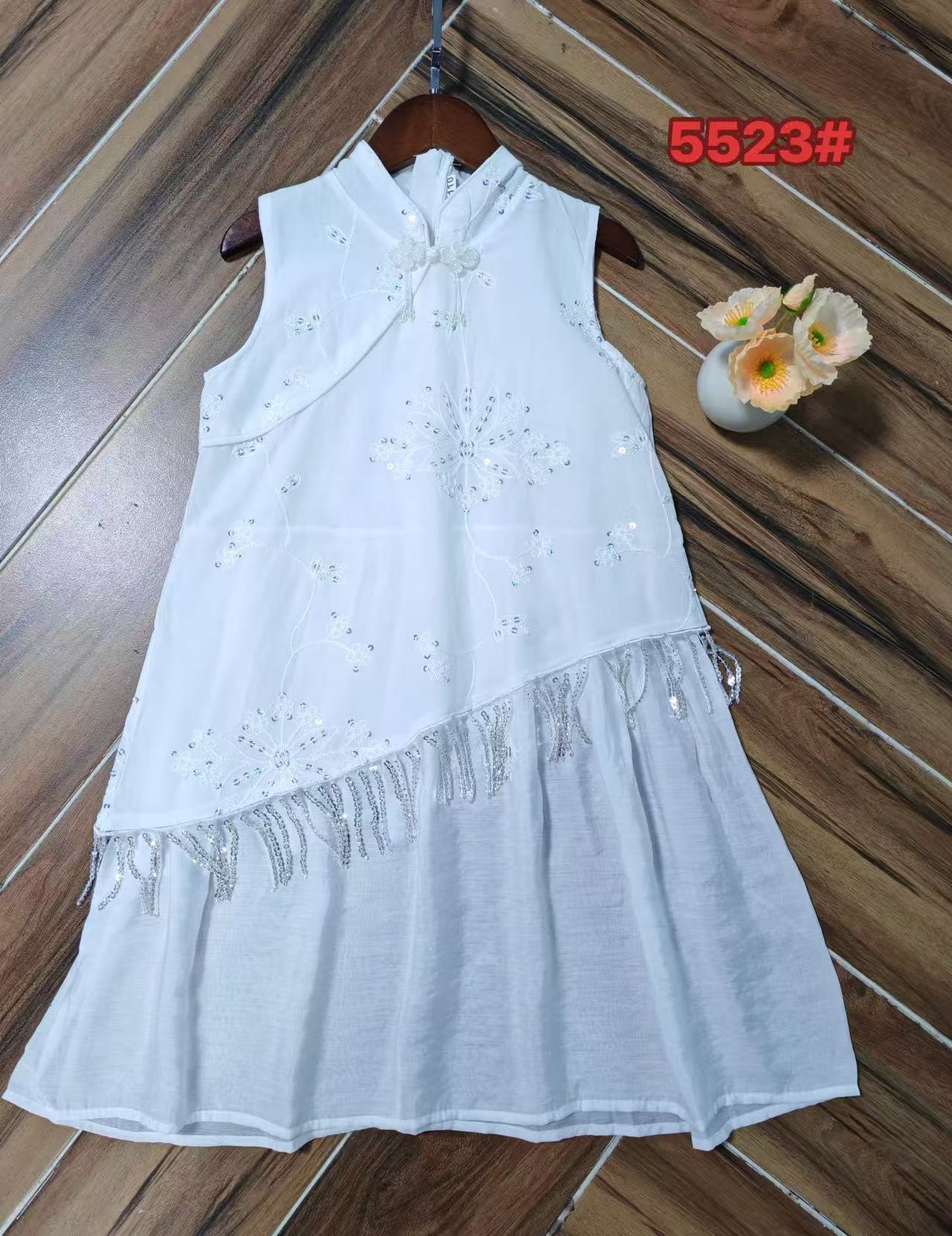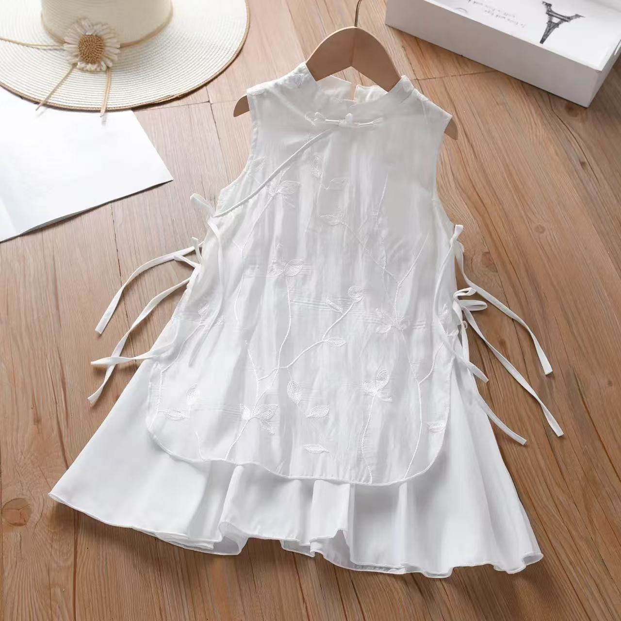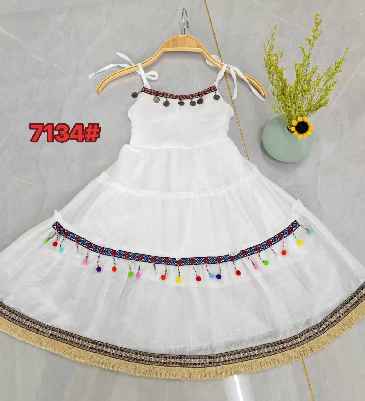 Детский национальный стиль может быть окрашен белым эмбрионом платье подтяжка платье для девочек оптом