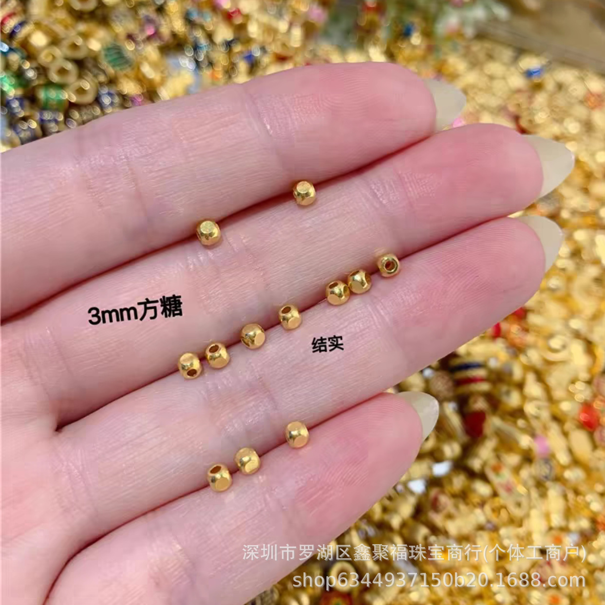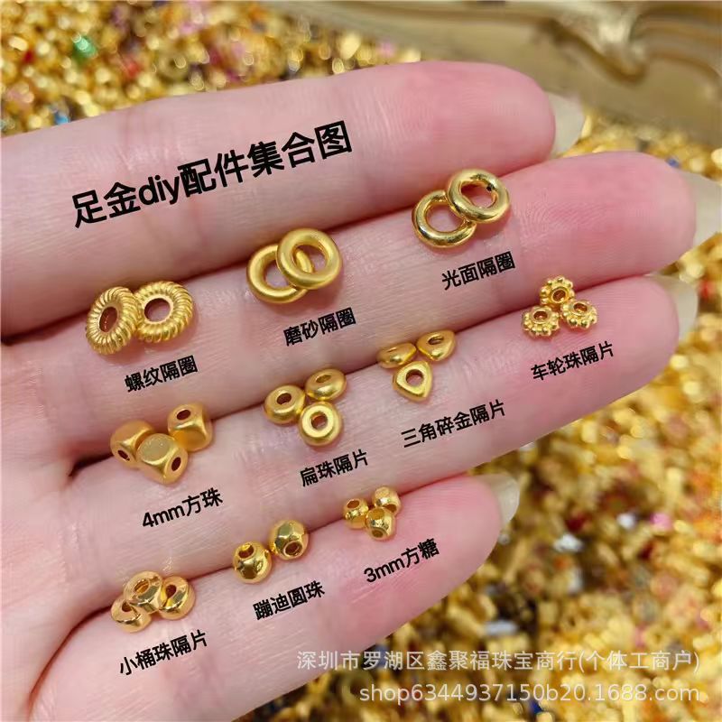 Маленькие золотые бусины из чистого золота 999 пробы, разделительные бусины с резьбой, треугольные сломанные золотые разделители, сахарные кубики, бусины-колеса, аксессуары для самостоятельного изготовления