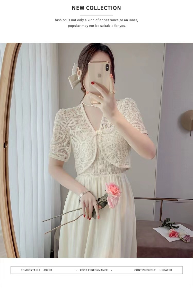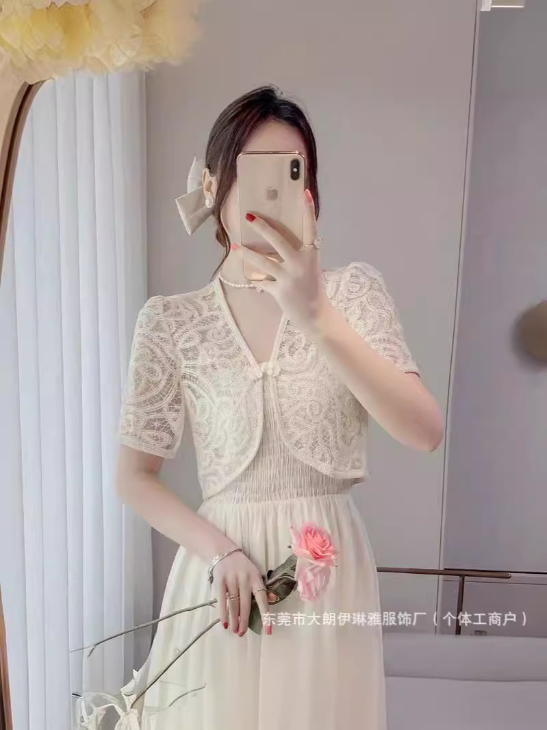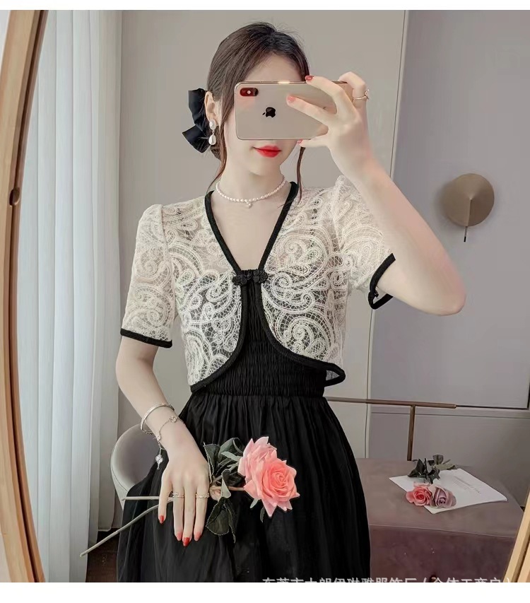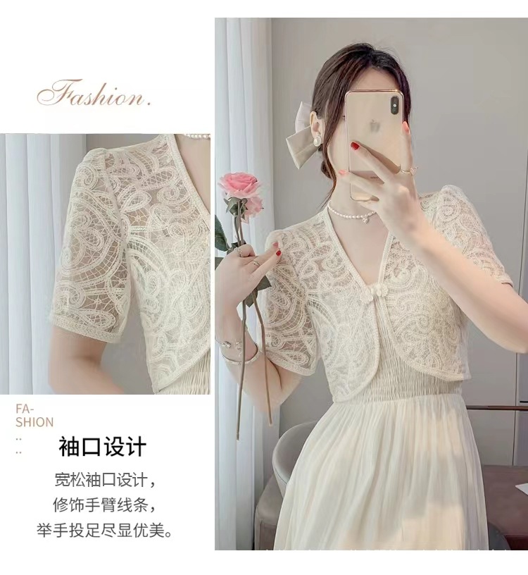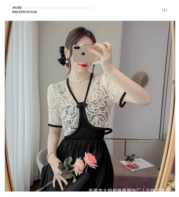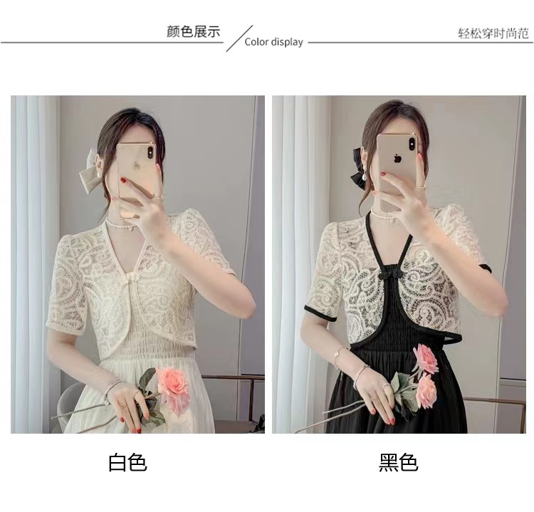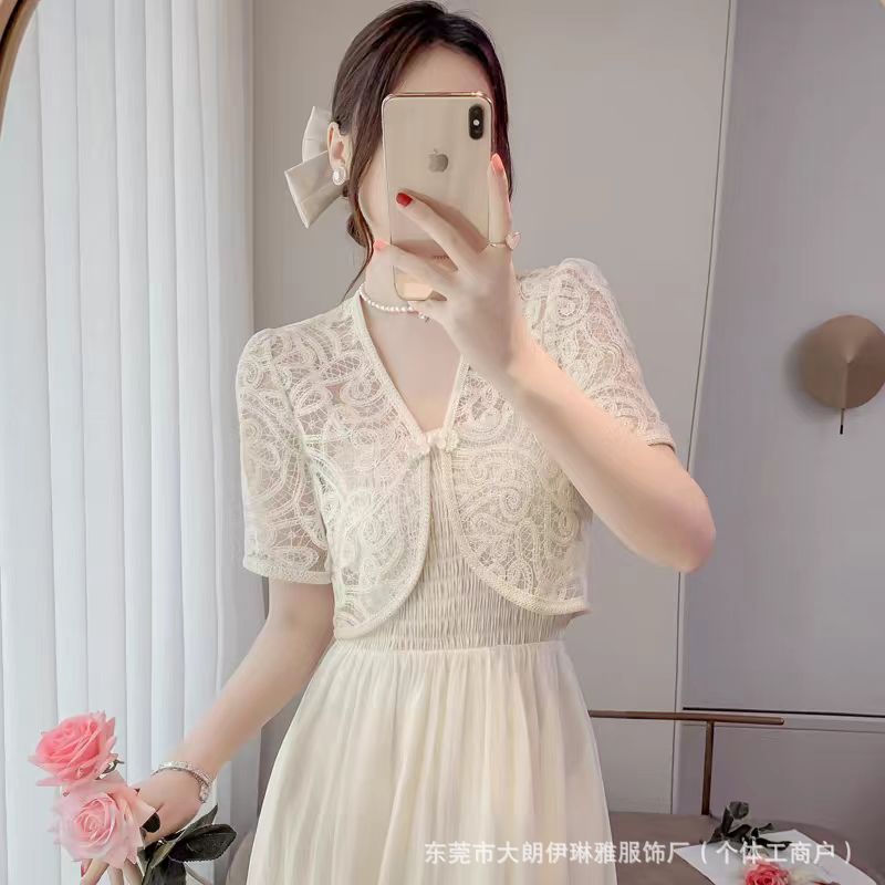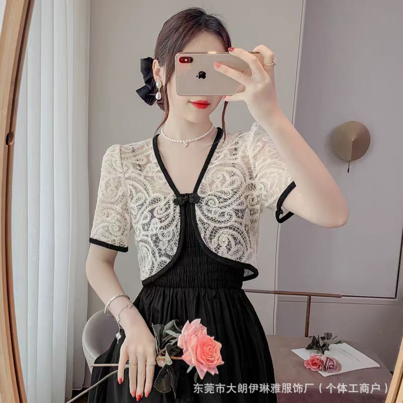Женская кружевная шаль, лето 2024, новый стиль, новый китайский стиль, пряжка, крючок, цветок, вырез, с короткими рукавами, солнцезащитный кардиган, маленькая куртка