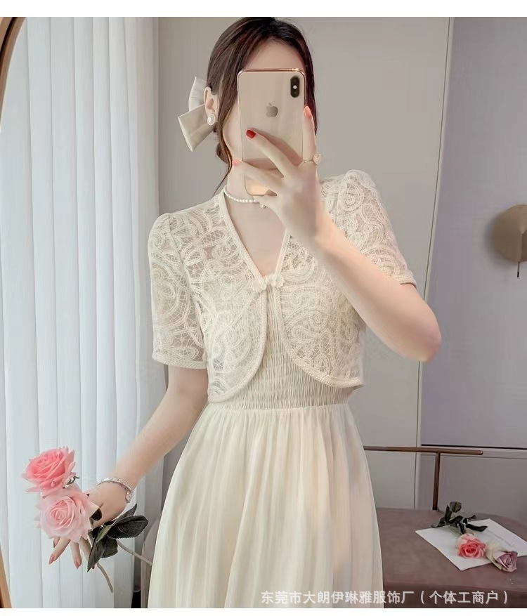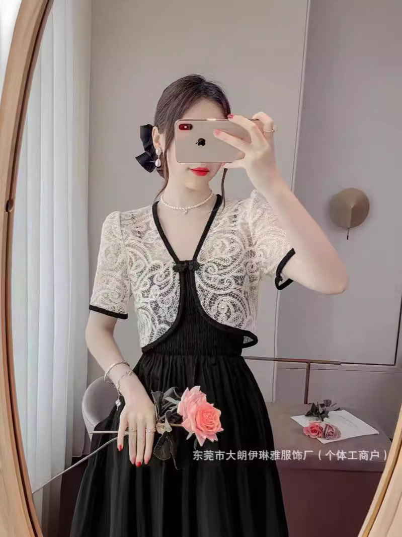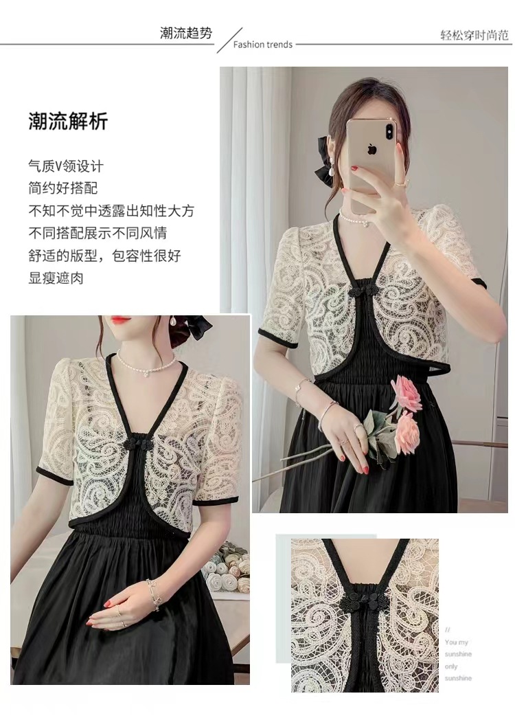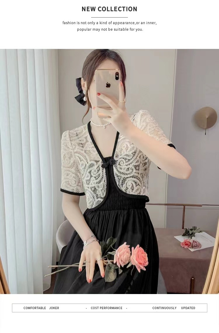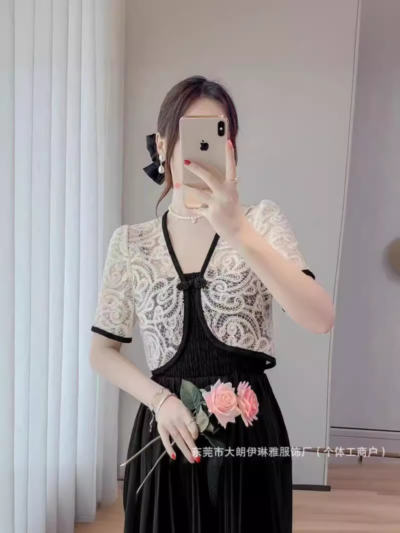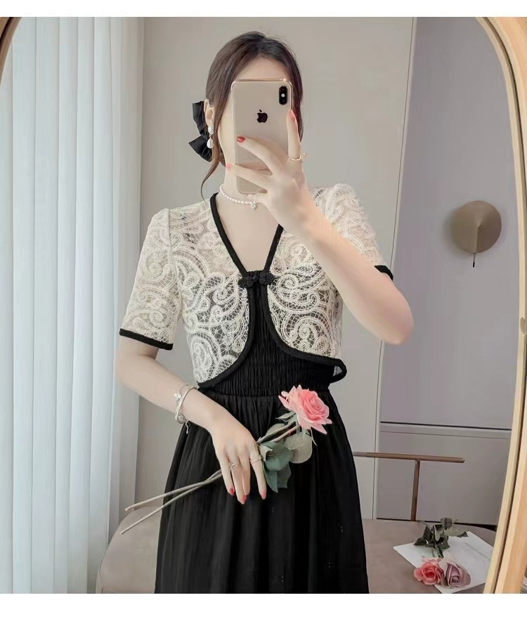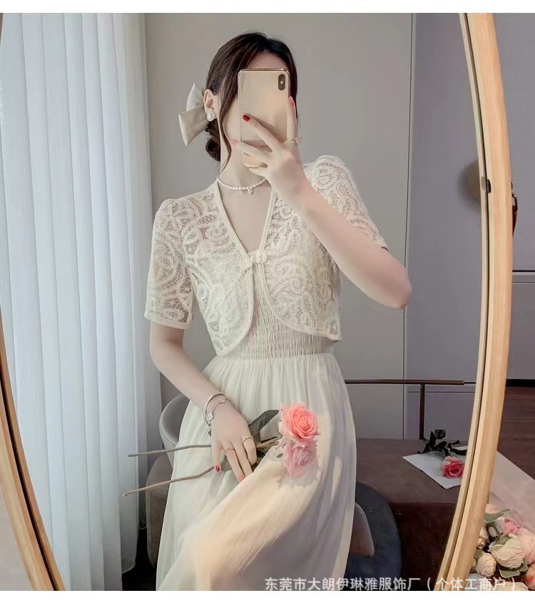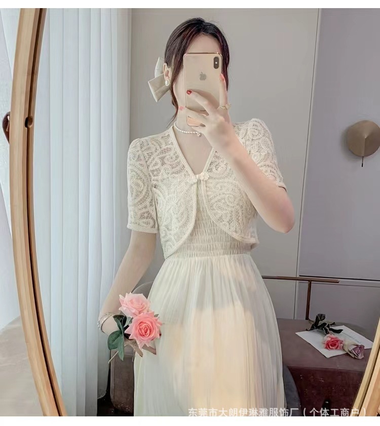 Женская кружевная шаль, лето 2024, новый стиль, новый китайский стиль, пряжка, крючок, цветок, вырез, с короткими рукавами, солнцезащитный кардиган, маленькая куртка