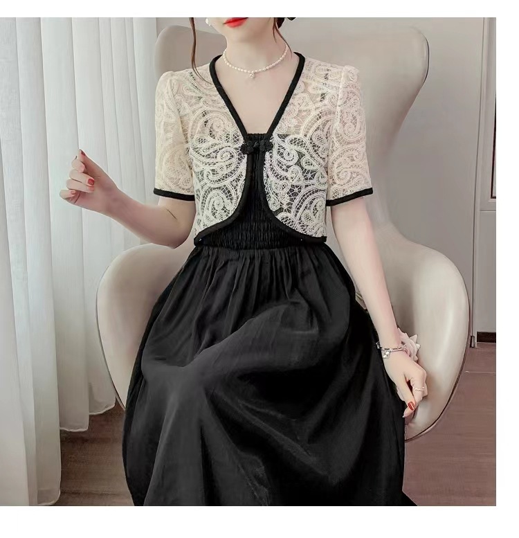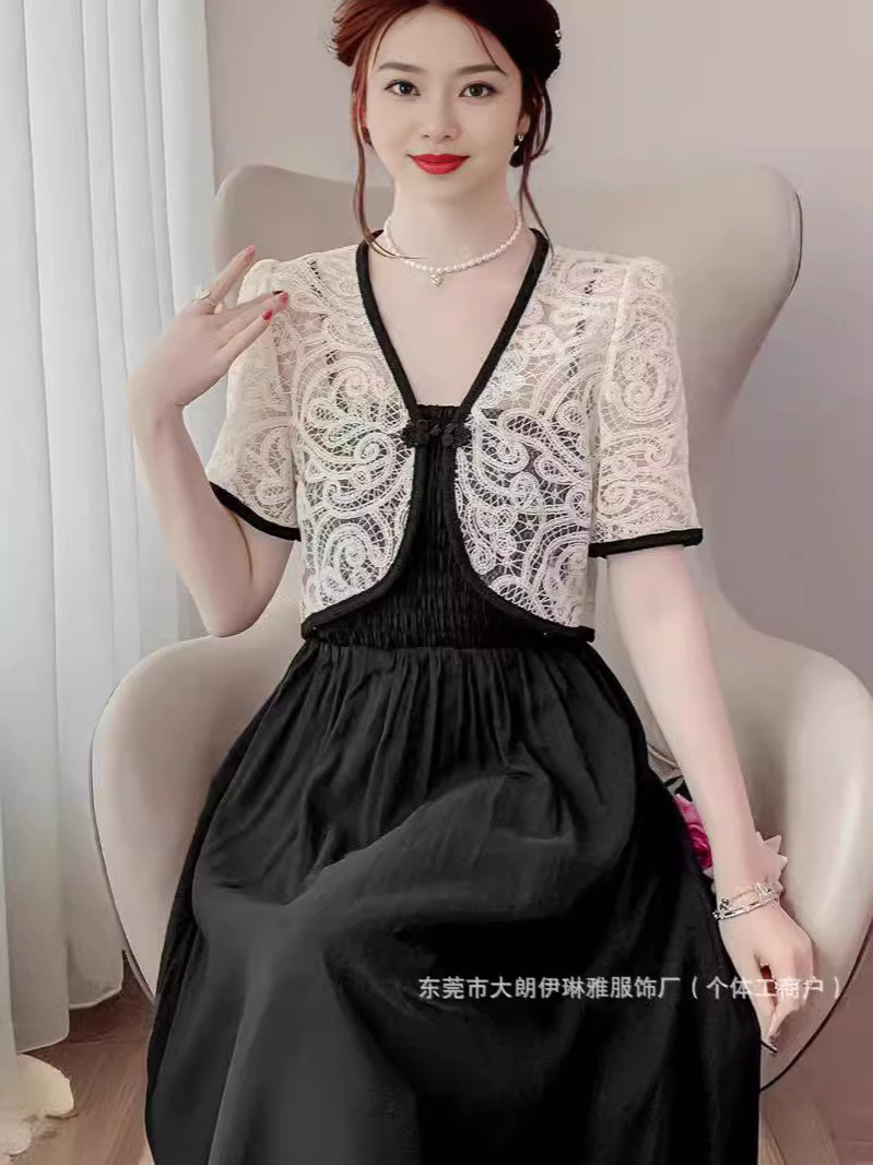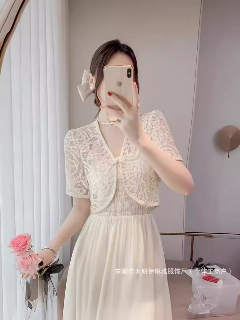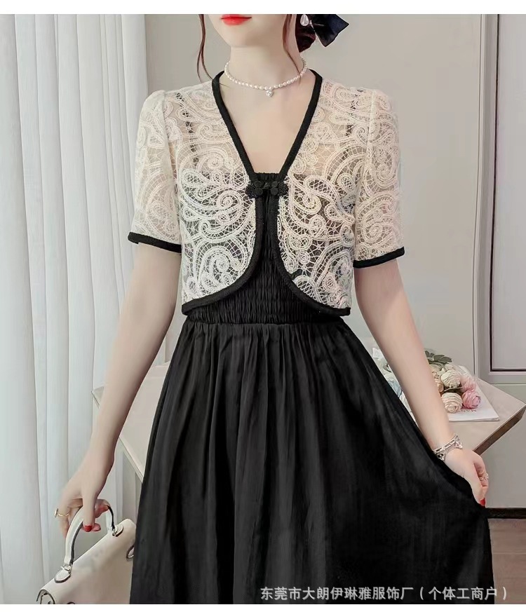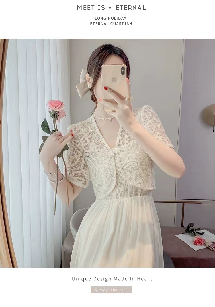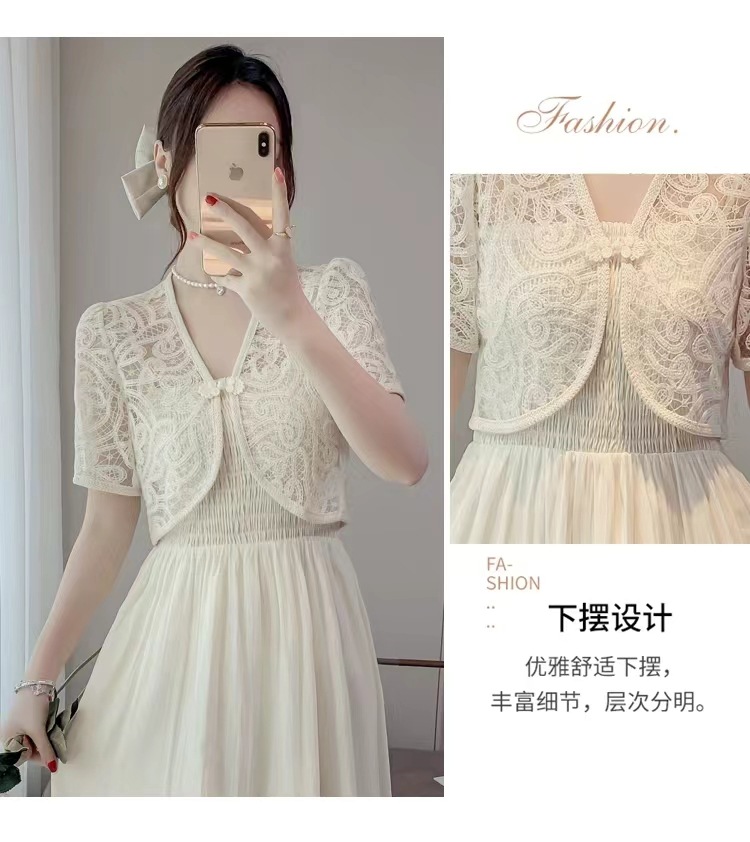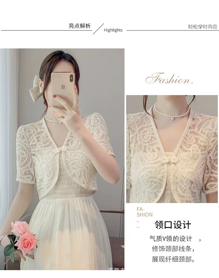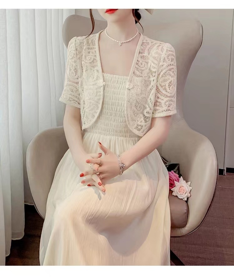 Женская кружевная шаль, лето 2024, новый стиль, новый китайский стиль, пряжка, крючок, цветок, вырез, с короткими рукавами, солнцезащитный кардиган, маленькая куртка