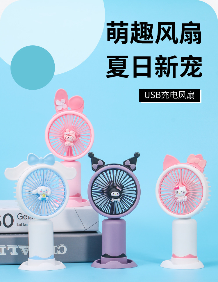 Летний портативный мини-вентилятор с USB-зарядкой, электрический вентилятор с изображением Куроми, Синамороли, КТ, оптом, подарок