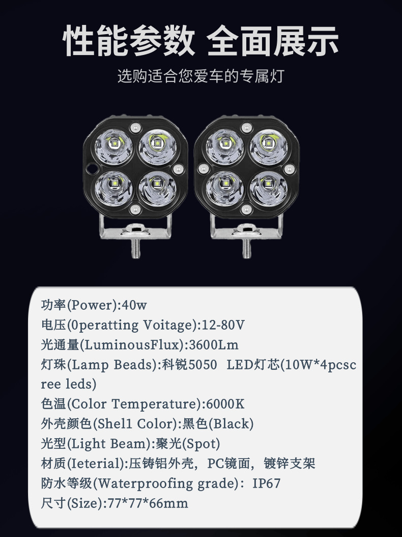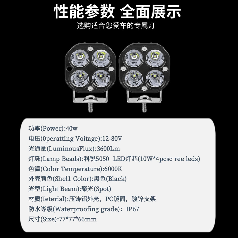 Трансграничная поставка четырехлистных клеверных мотоциклов, прожекторов для электромобилей, модифицированных внедорожников, небольших квадратных фонарей на крыше, светодиодных рабочих фонарей