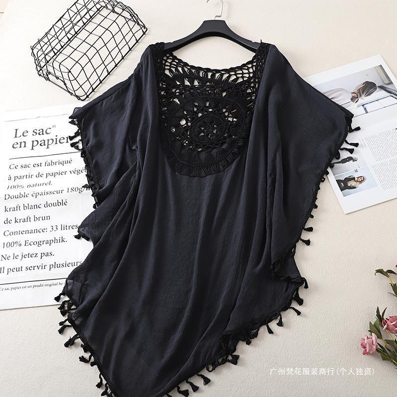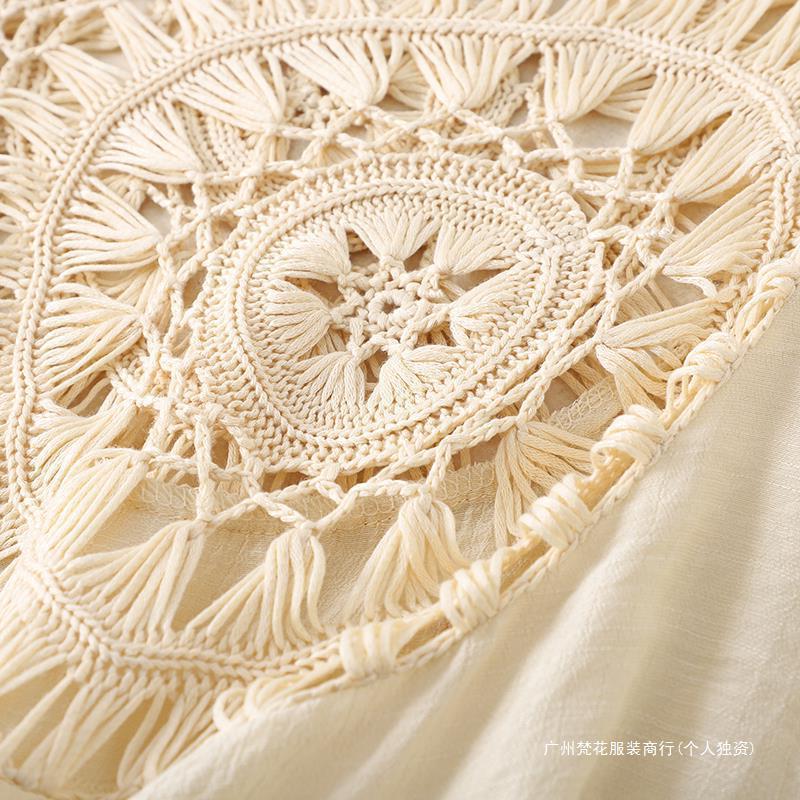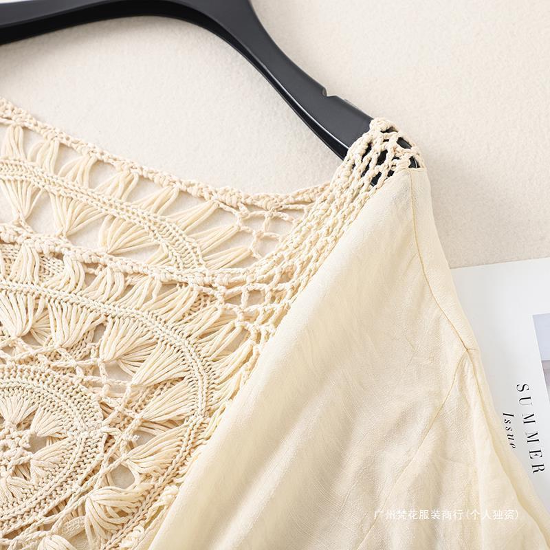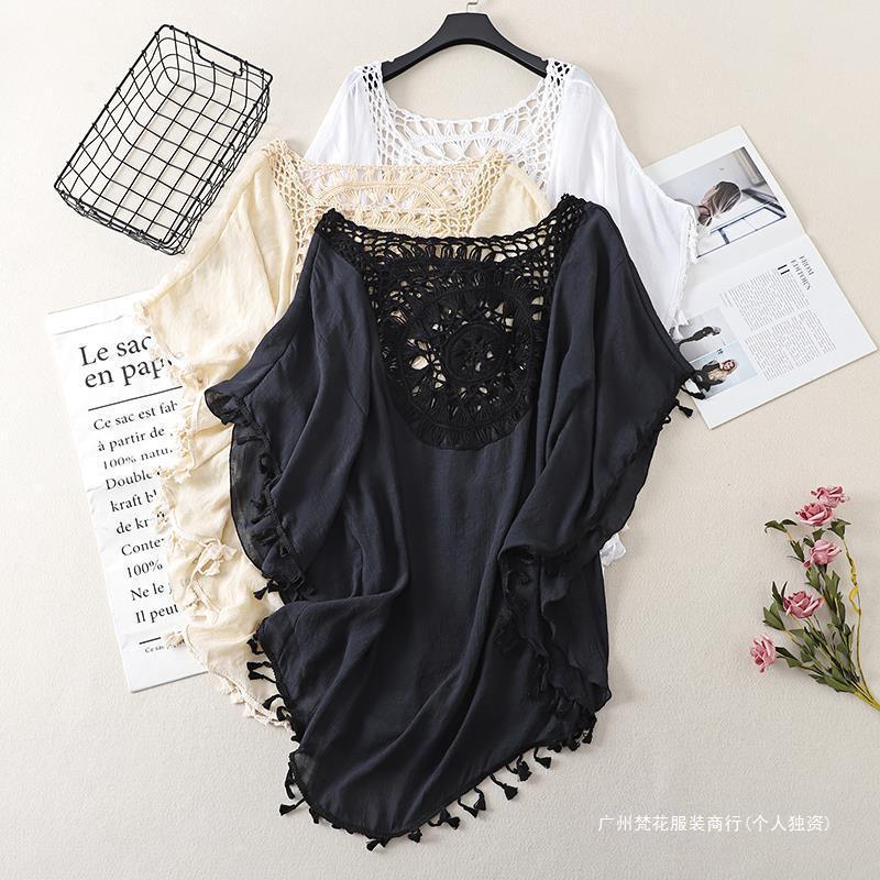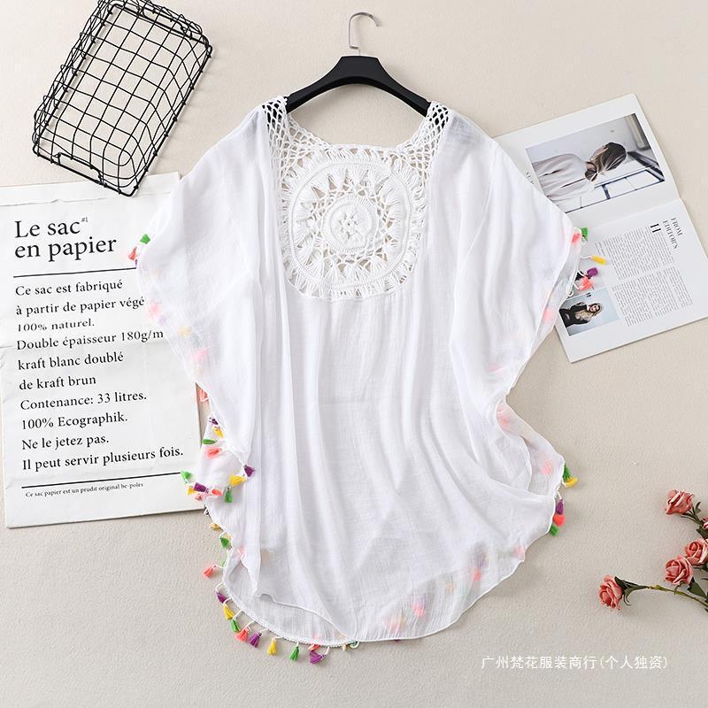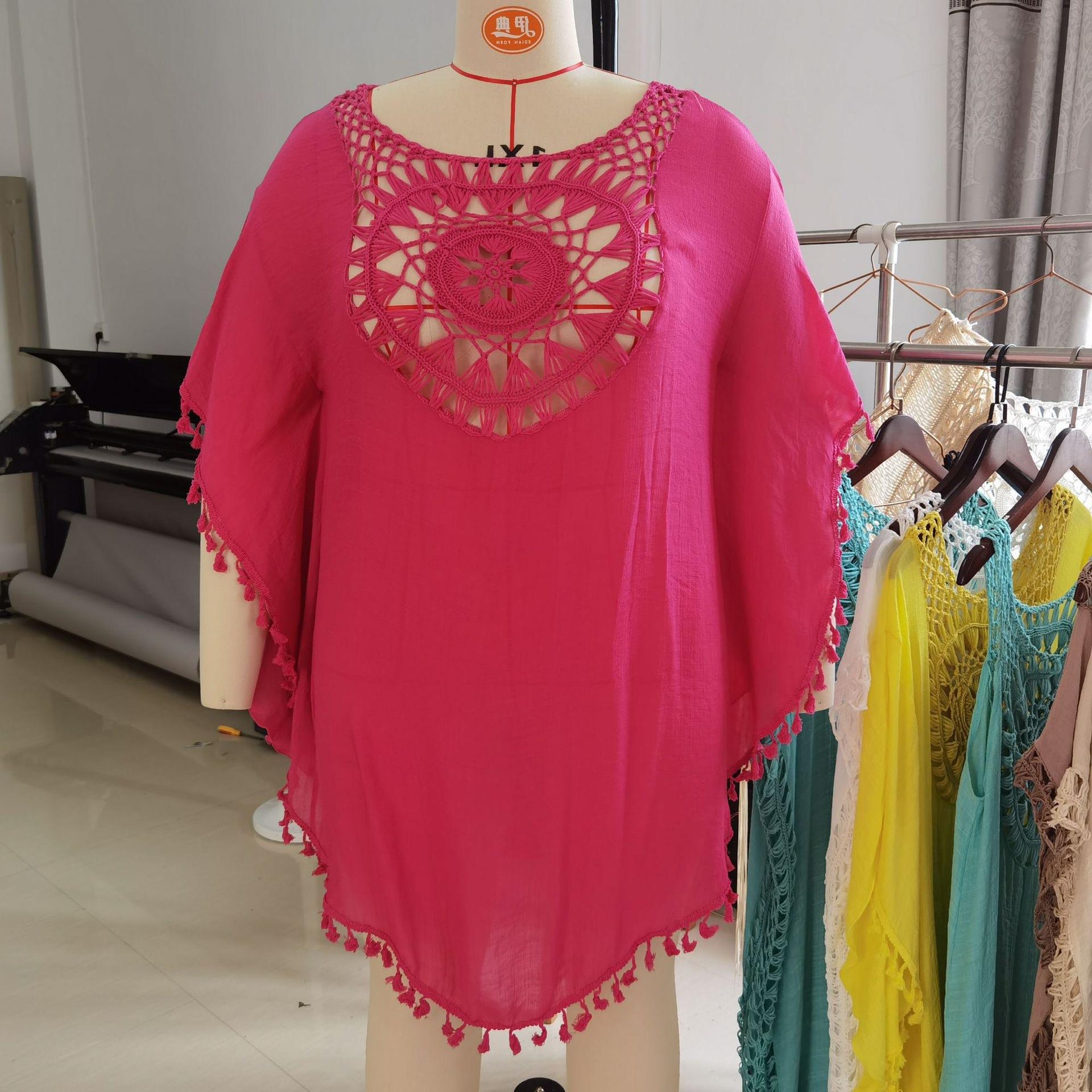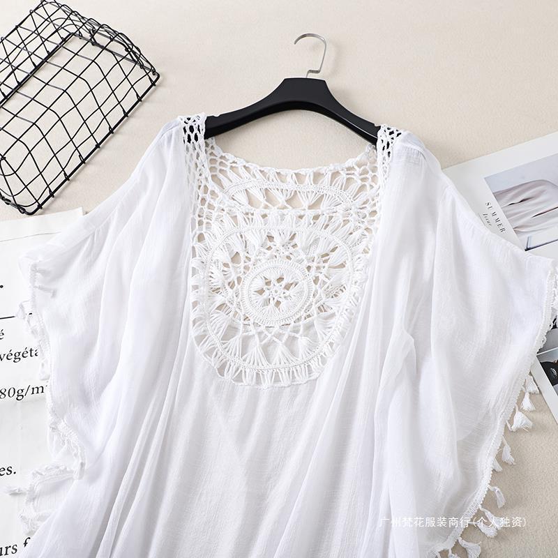 Трансграничный новый праздничный крючок сплошной цвет сшивания европейская и американская пляжная юбка маленькая кисточка солнцезащитный крем короткая сексуальная пляжная блузка