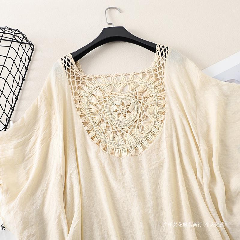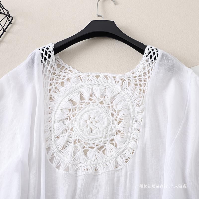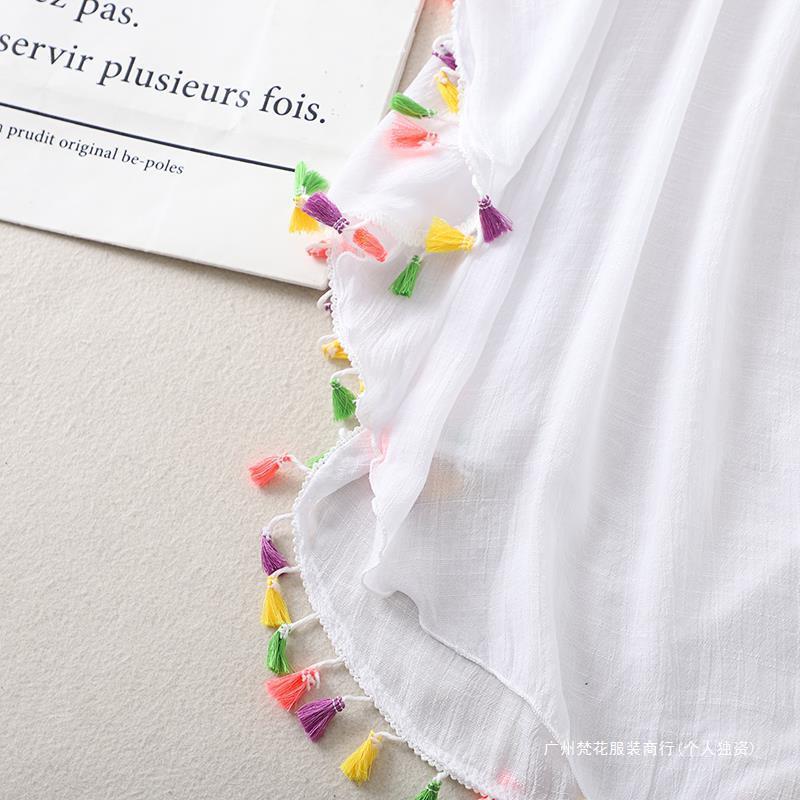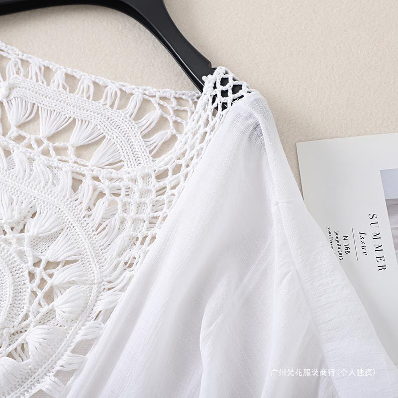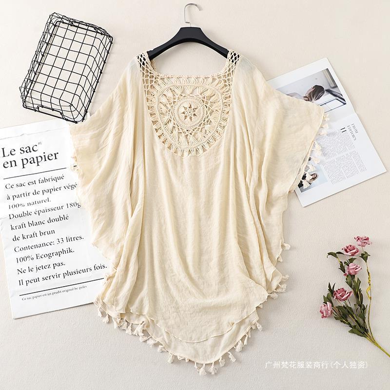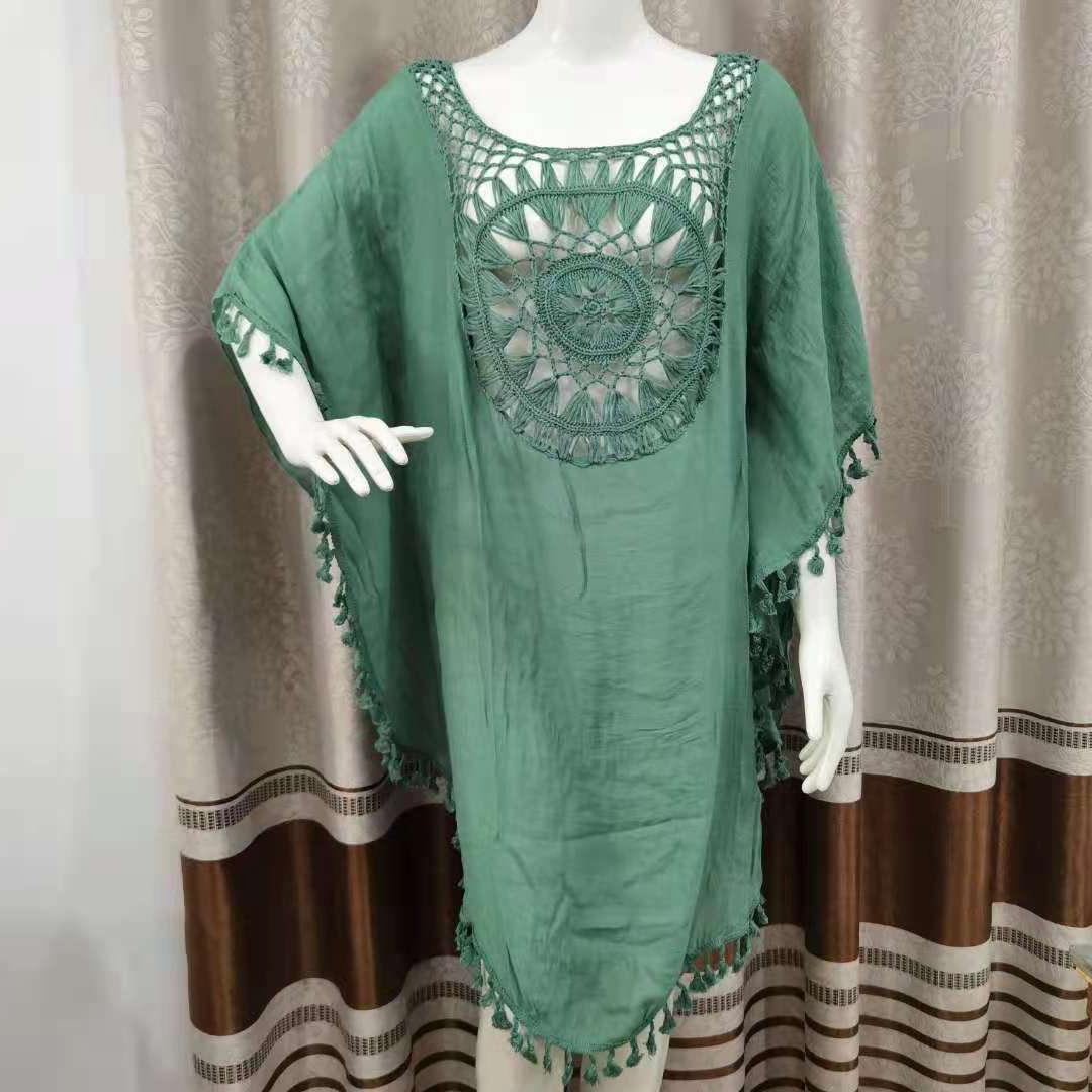 Трансграничный новый праздничный крючок сплошной цвет сшивания европейская и американская пляжная юбка маленькая кисточка солнцезащитный крем короткая сексуальная пляжная блузка