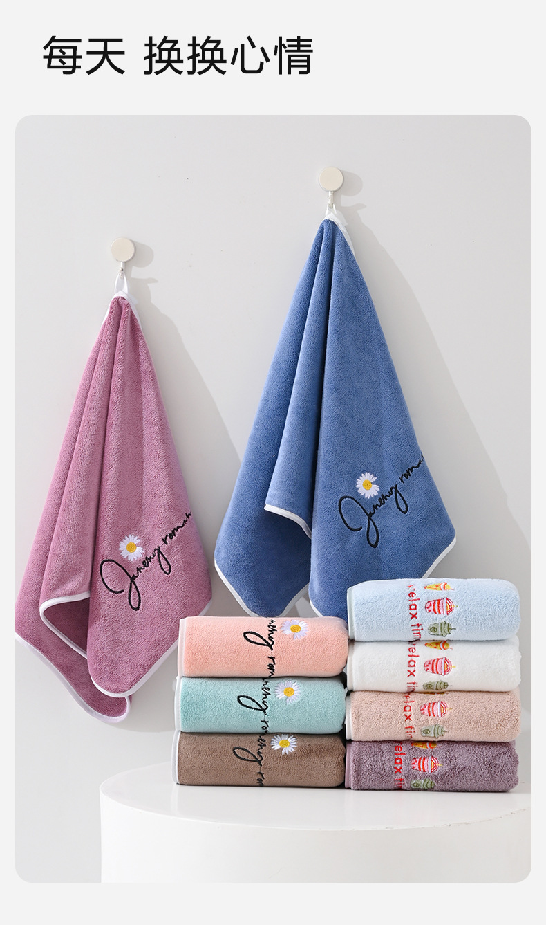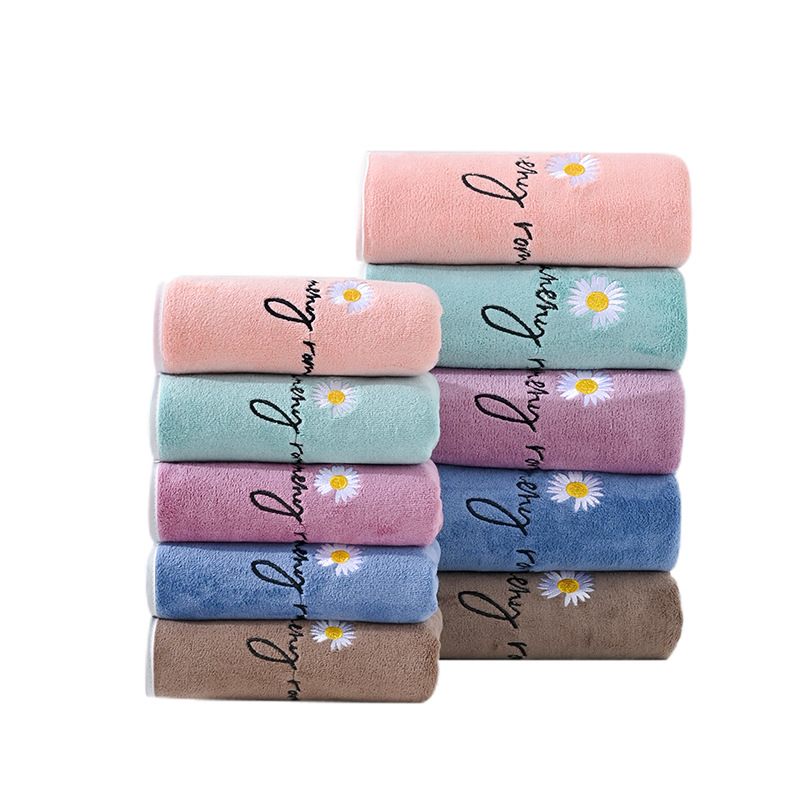 Производитель оптом продает махровые полотенца для ванной, маленькие полотенца с вышивкой ромашек, утолщенные микрофибровые, впитывающие, быстросохнущие, а также полотенца для лица.