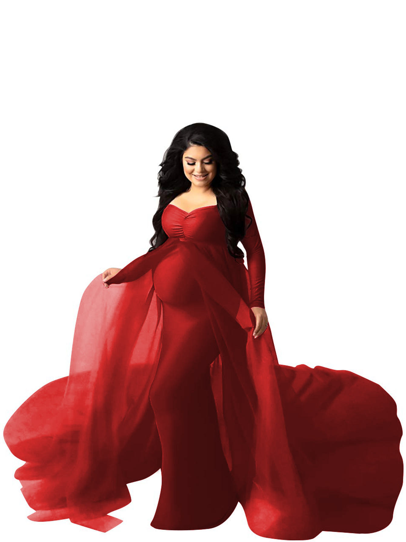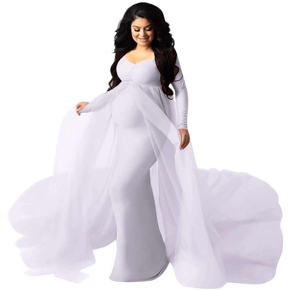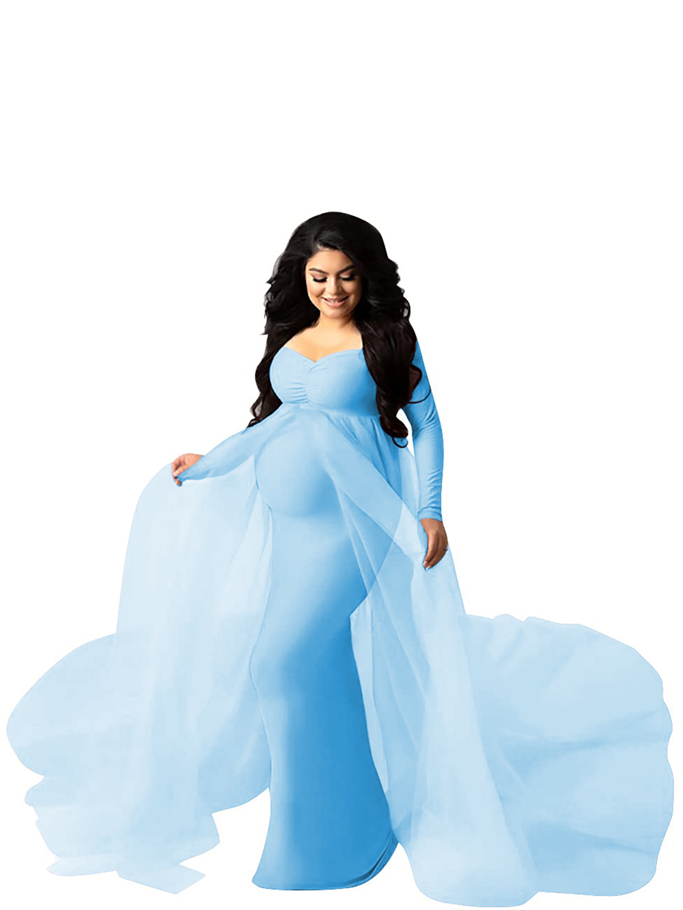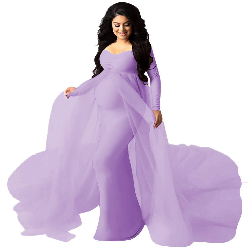 Весенние и летние модели Amazon AliExpress горячая распродажа 2024 сетчатая пряжа с круглым вырезом с длинными рукавами сетка юбка для беременных