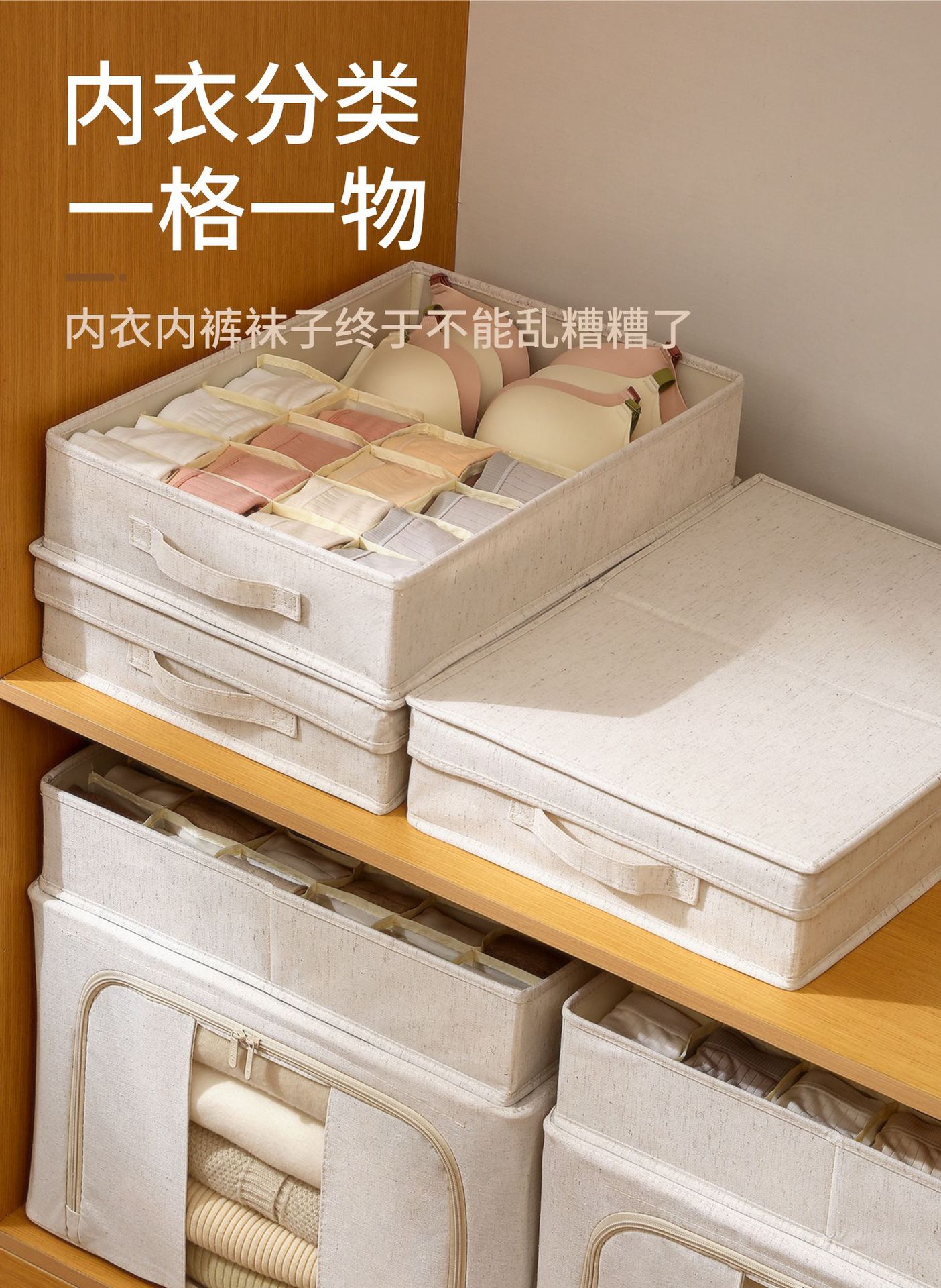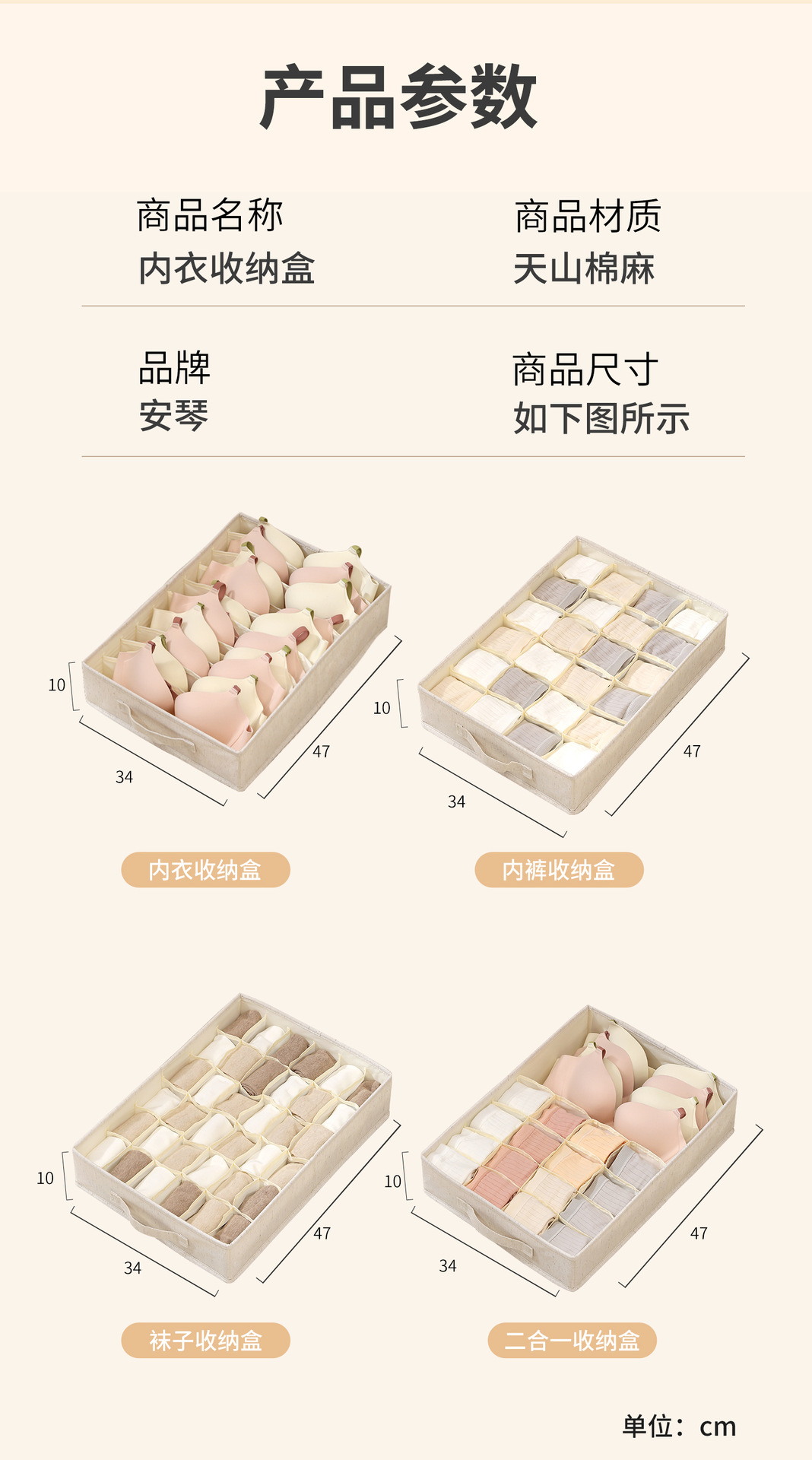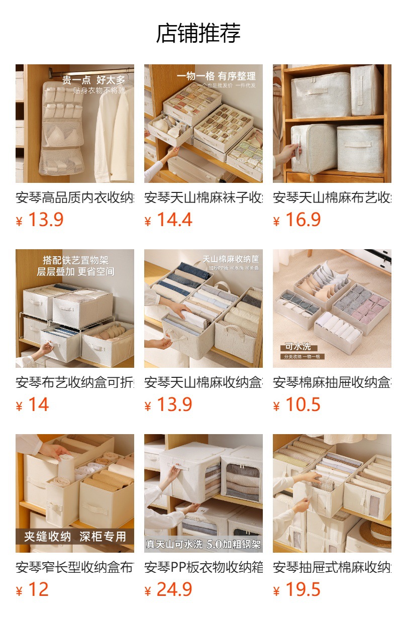 Коробка для хранения носков Anqin Tianshan из хлопка и льна, тканевая, с полипропиленовой вставкой, моющаяся, высококачественная, с разделителями для хранения нижнего белья и личных вещей