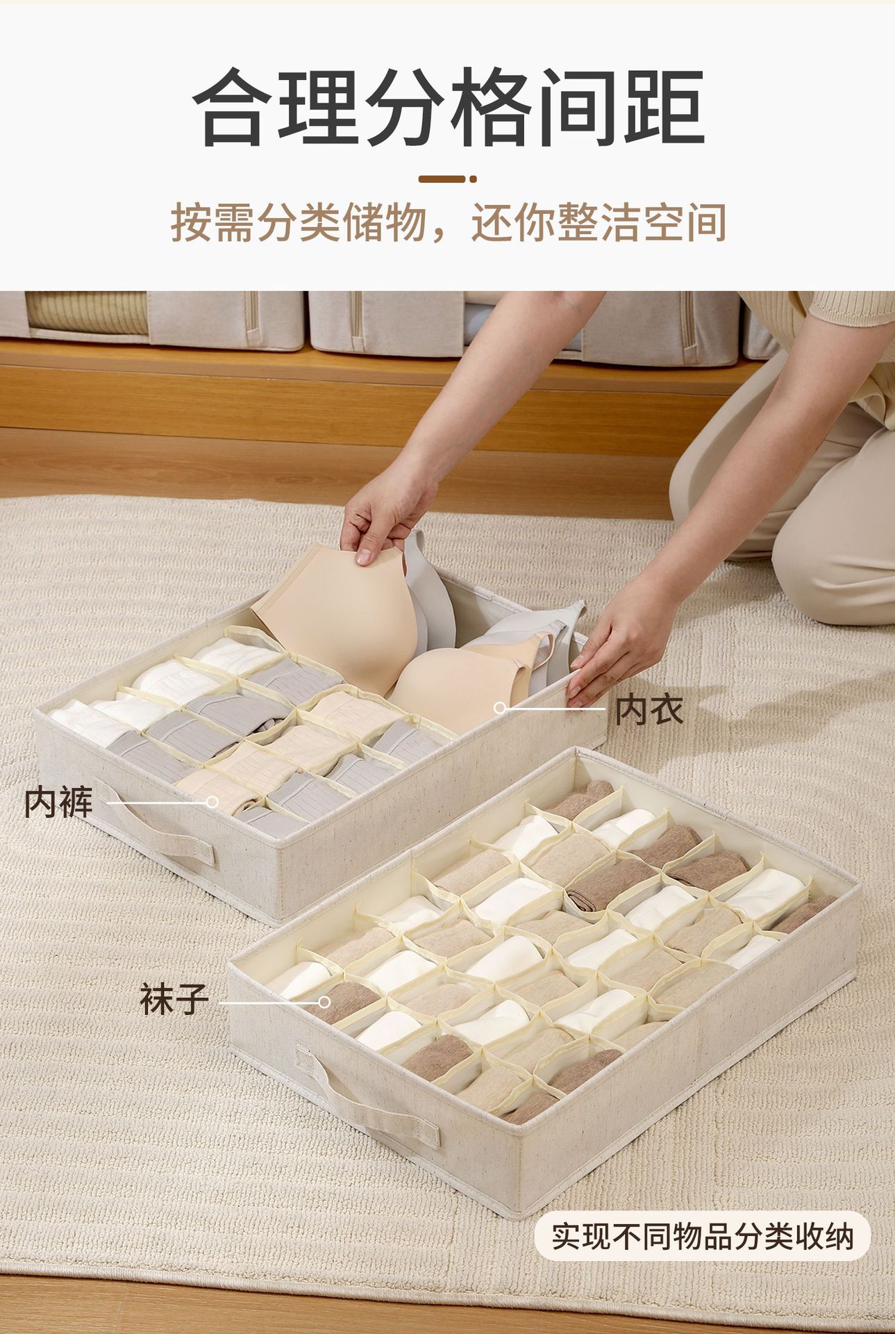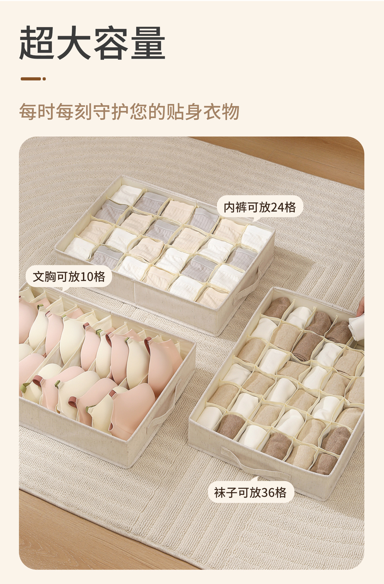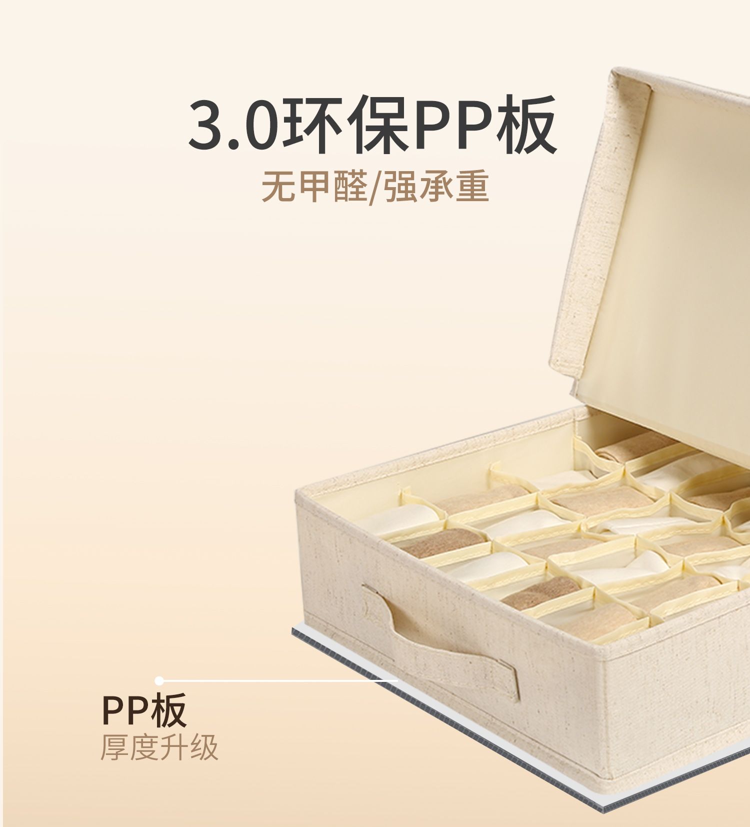 Коробка для хранения носков Anqin Tianshan из хлопка и льна, тканевая, с полипропиленовой вставкой, моющаяся, высококачественная, с разделителями для хранения нижнего белья и личных вещей